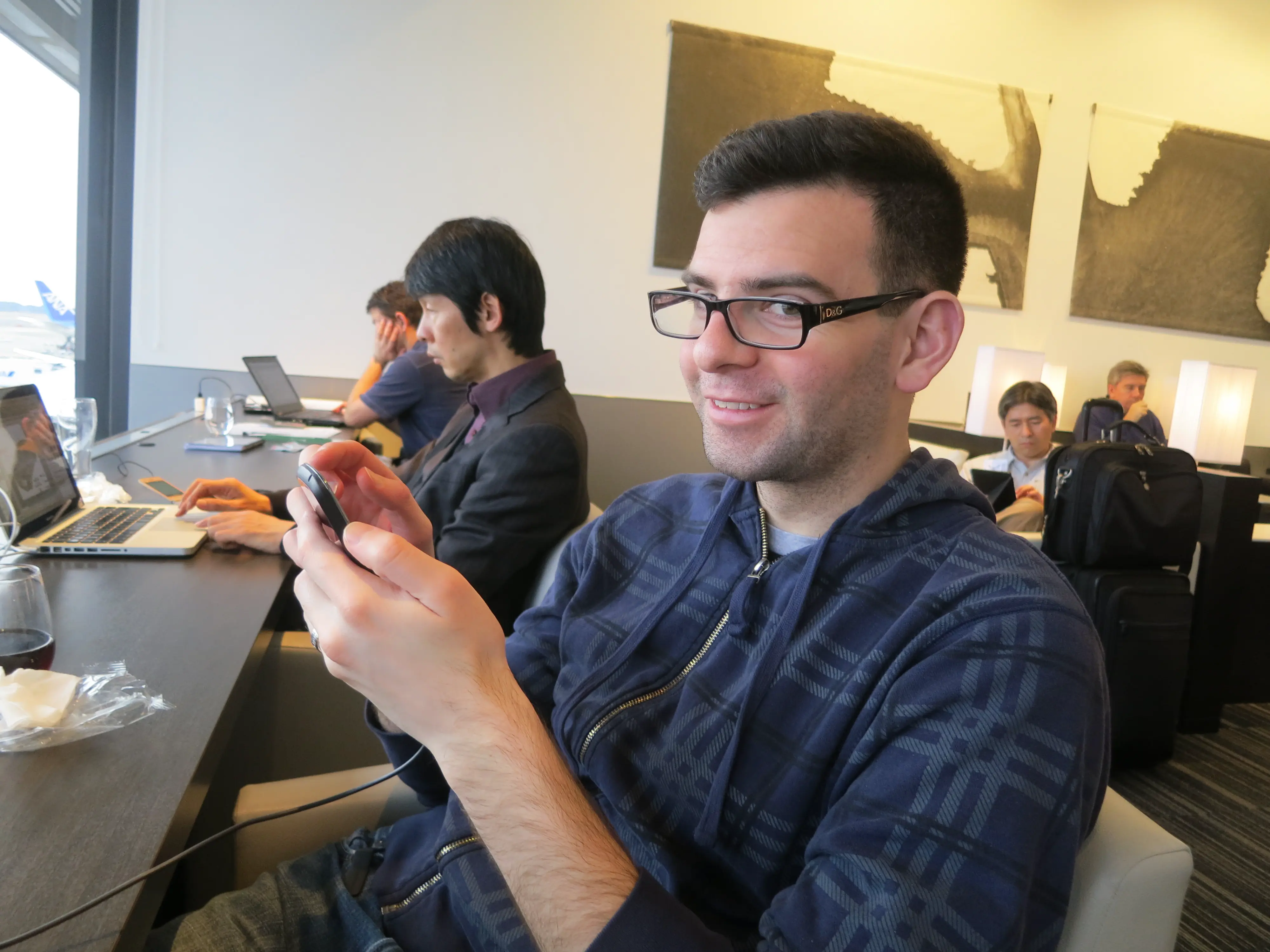 The first flight, from Pearson to Newark, was uneventful. The flight from Newark to Narita was also quite uneventful. We flew on a United 777 named the Norman M Bethune. Todd handled the flight surprisingly well; even though he didn’t get much sleep he seemed to be pretty perky by the time we landed. We had about 3 hours to kill at Narita so we visited the ANA lounge, and it had one of the best airport lounge views I’ve seen! You could see the gates clearly, as well as see the planes taxiing along the runway. I’ve never seen so many 777’s and 787’s before - the ANA fleet is pretty cool. The food was alright, but neither Todd nor I had the stomach to try the sushi.