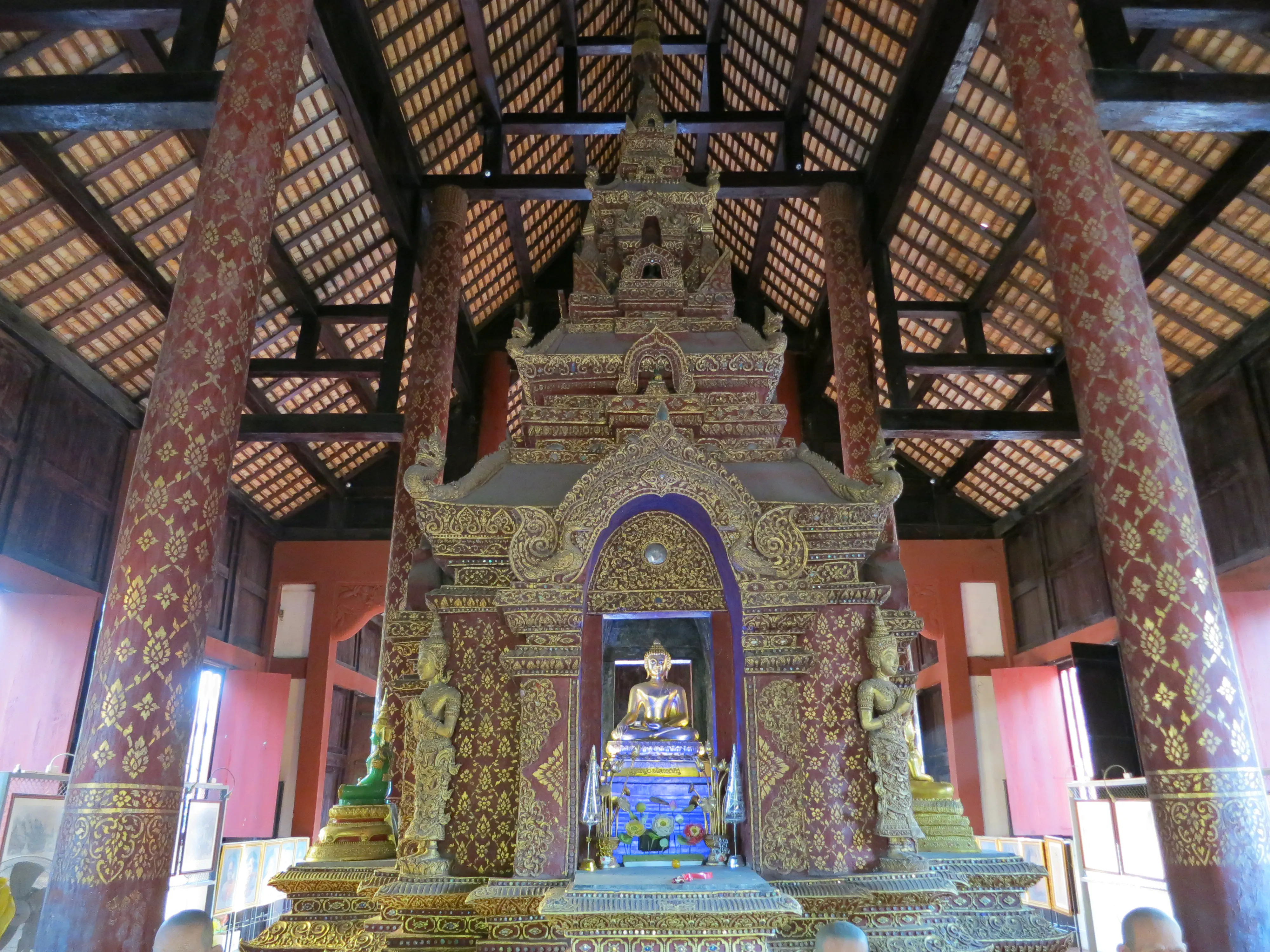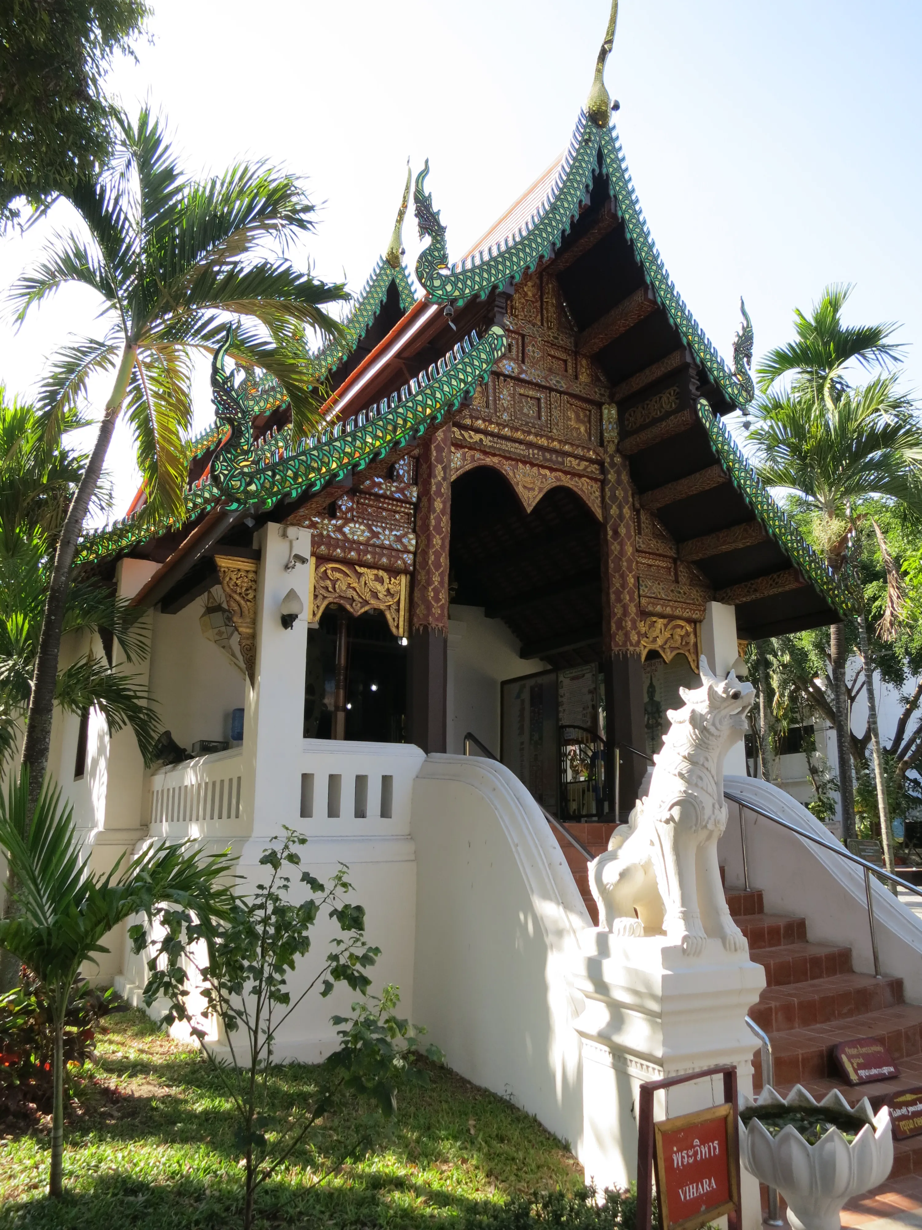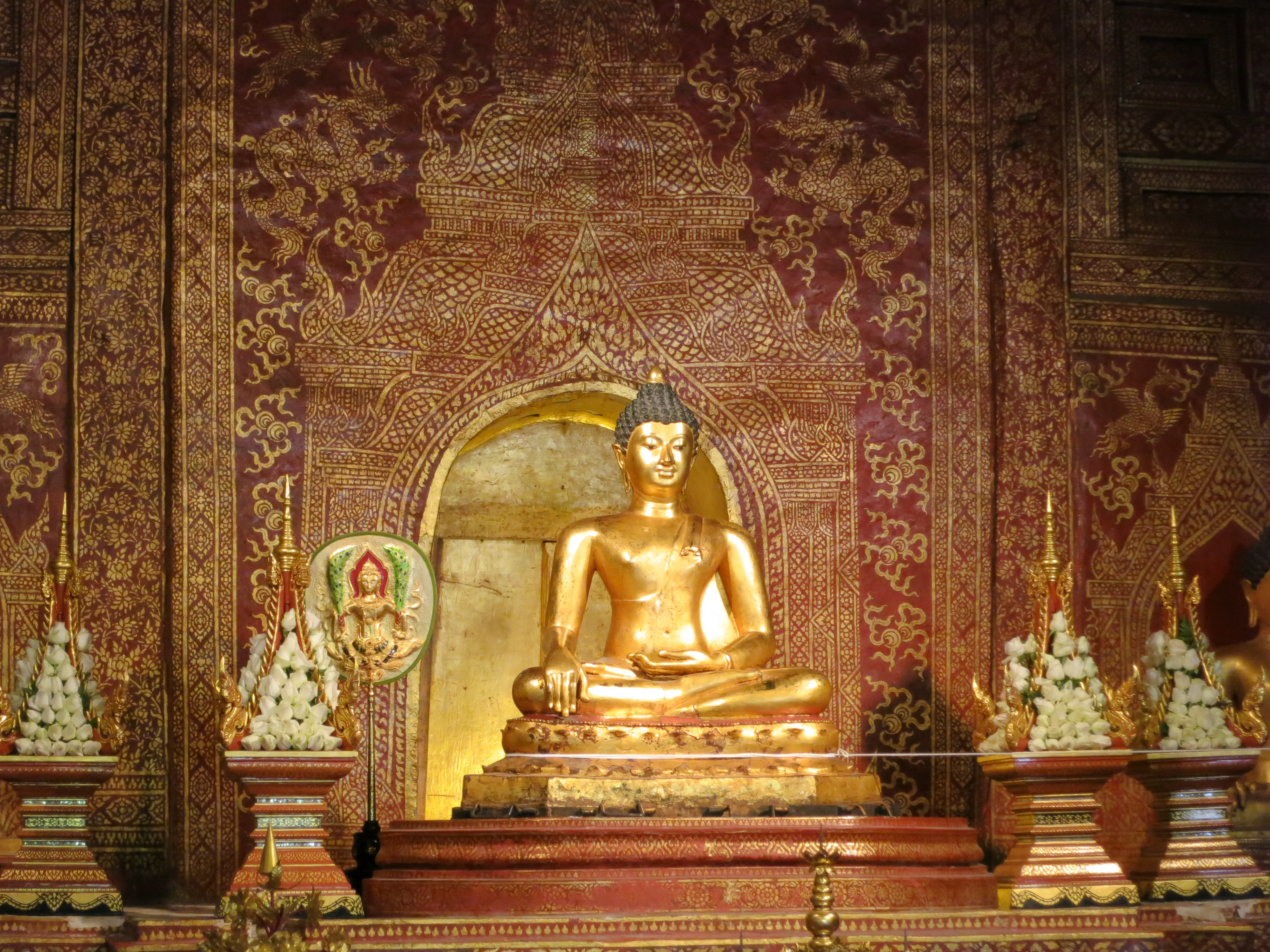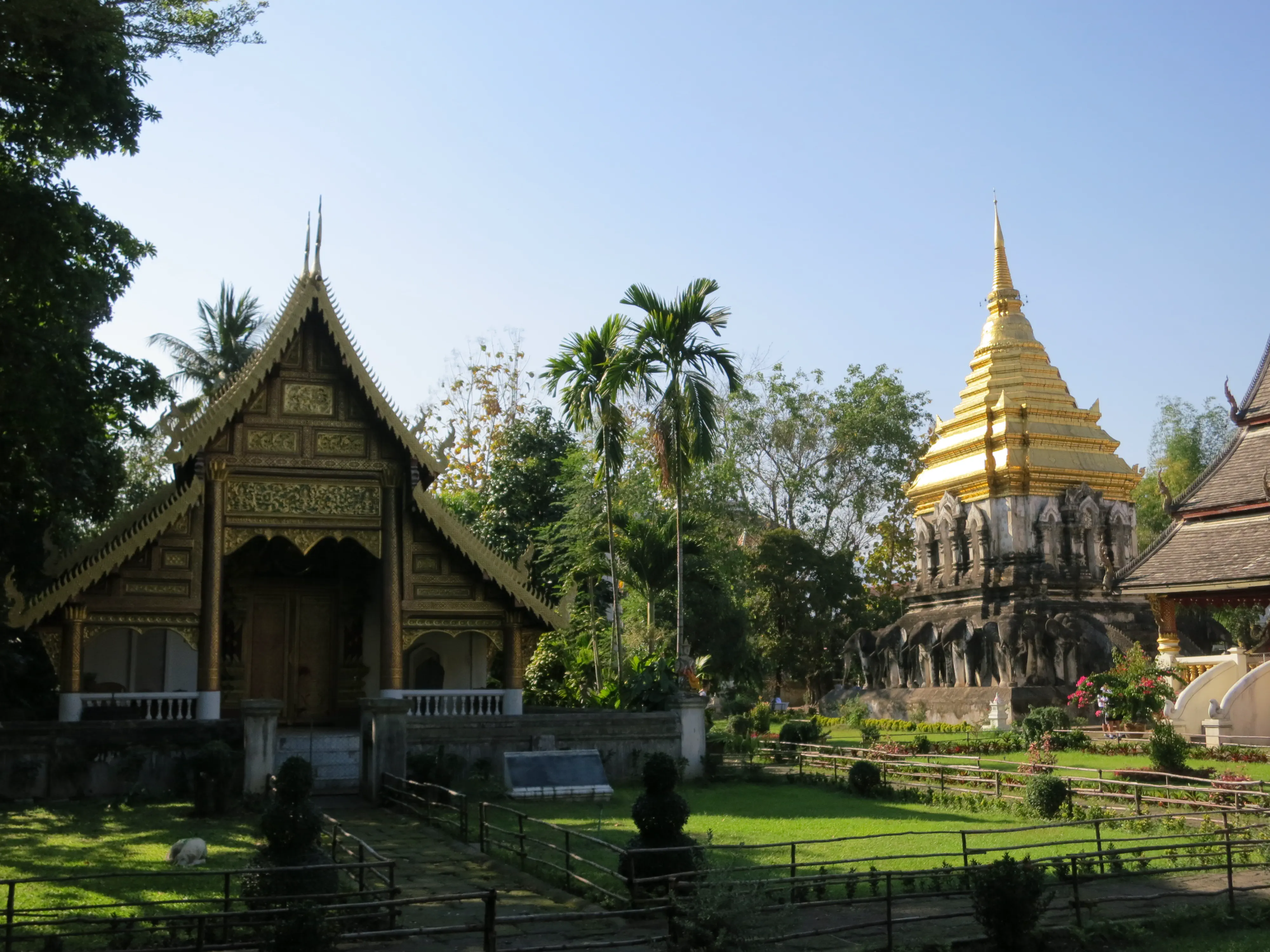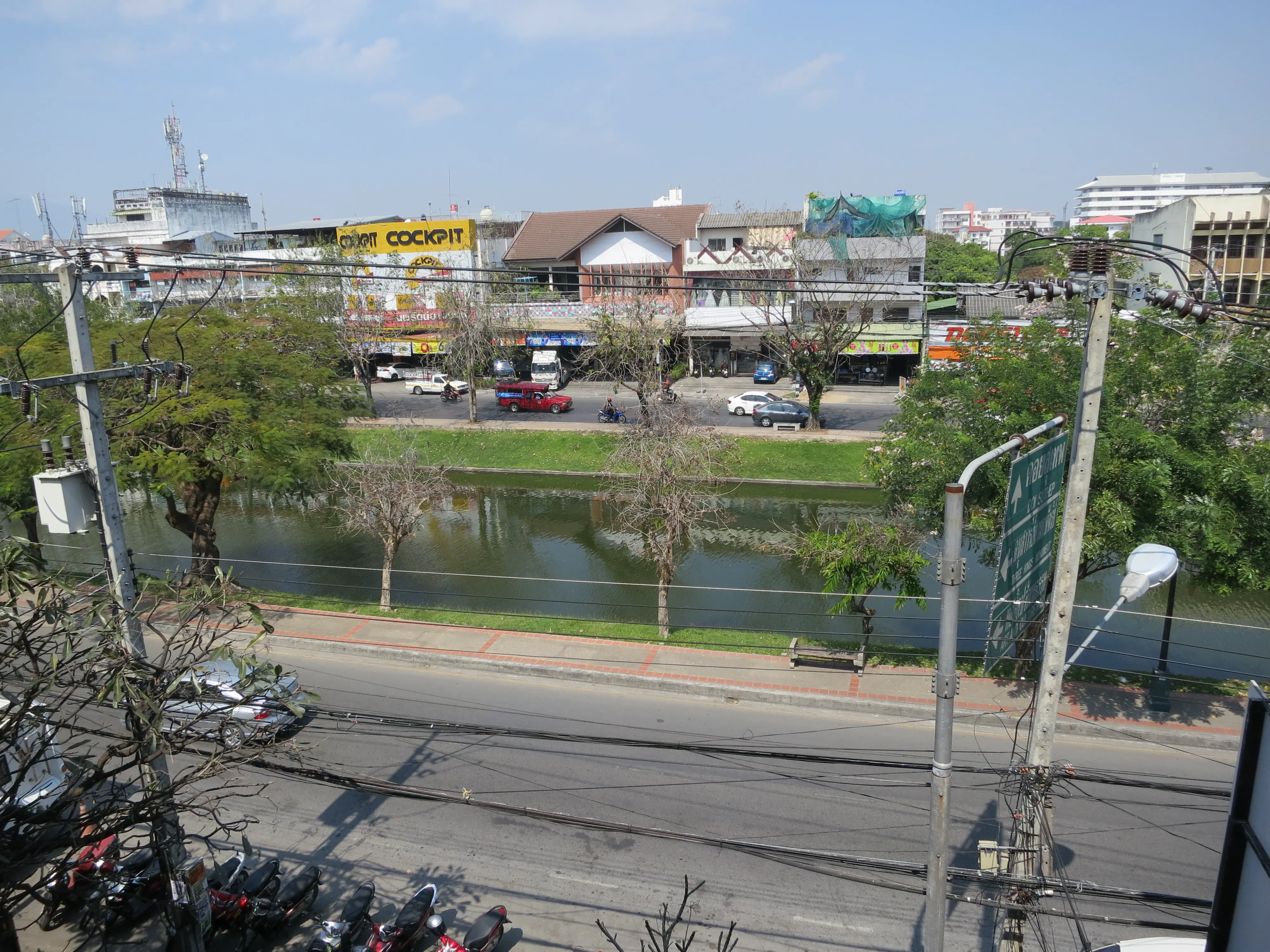 After arriving in Chiang Mai we successfully checked into our hotel, the Sira Boutique hotel, located just inside the moat in the old town, near the north gate. It is surprisingly nice inside, the room is neatly appointed and clean. The bed is pretty hard, which has been typical for the hotels we have stayed at during the trip. I guess that hard beds are a thing in Asia. I took a small break to put a cold towel on my still-sunburned shoulders, after which we left the hotel and started out on a walking tour of old Chiang Mai. The city itself is much more picturesque than either Patong or Bangkok, and much cleaner.