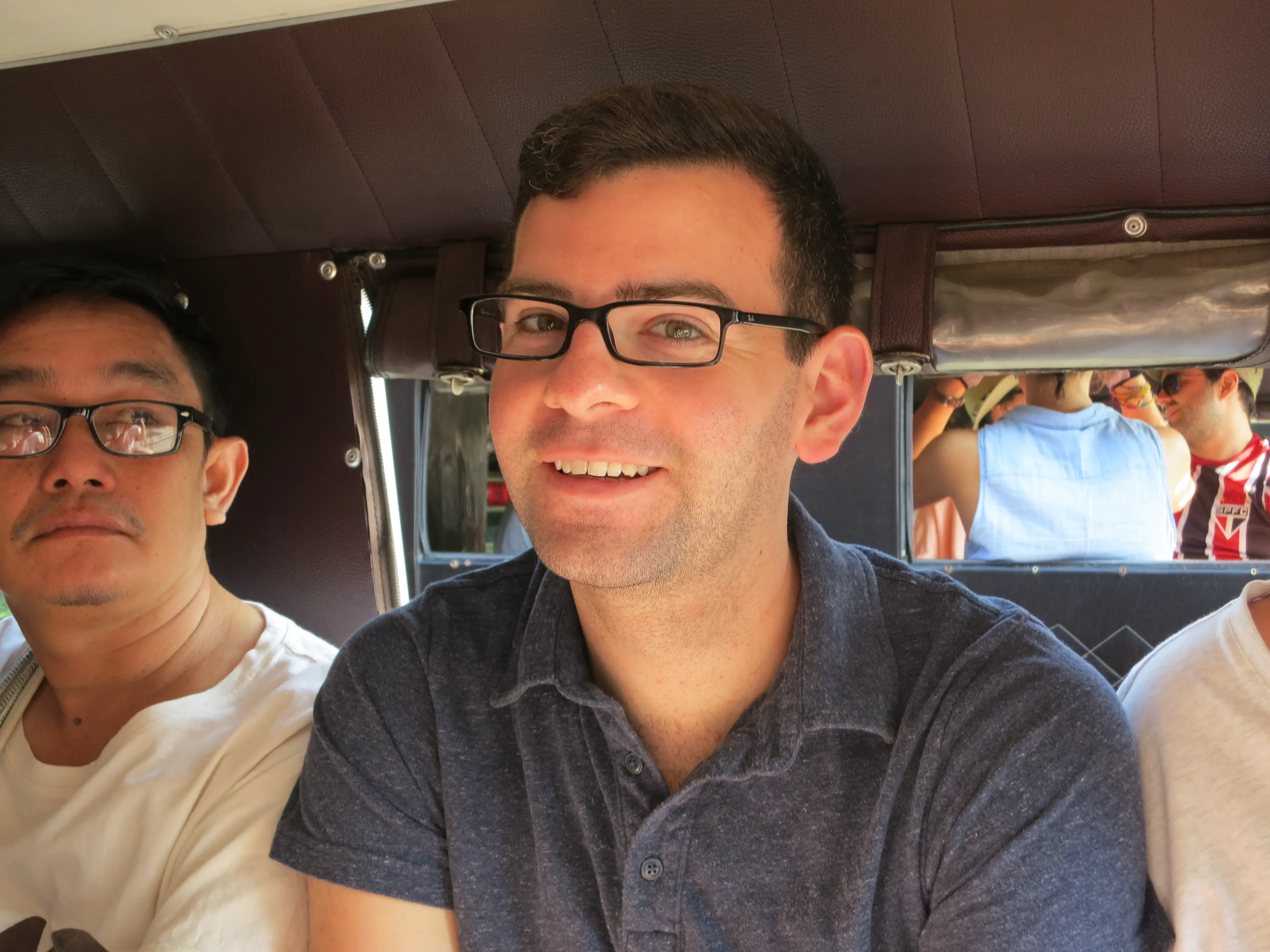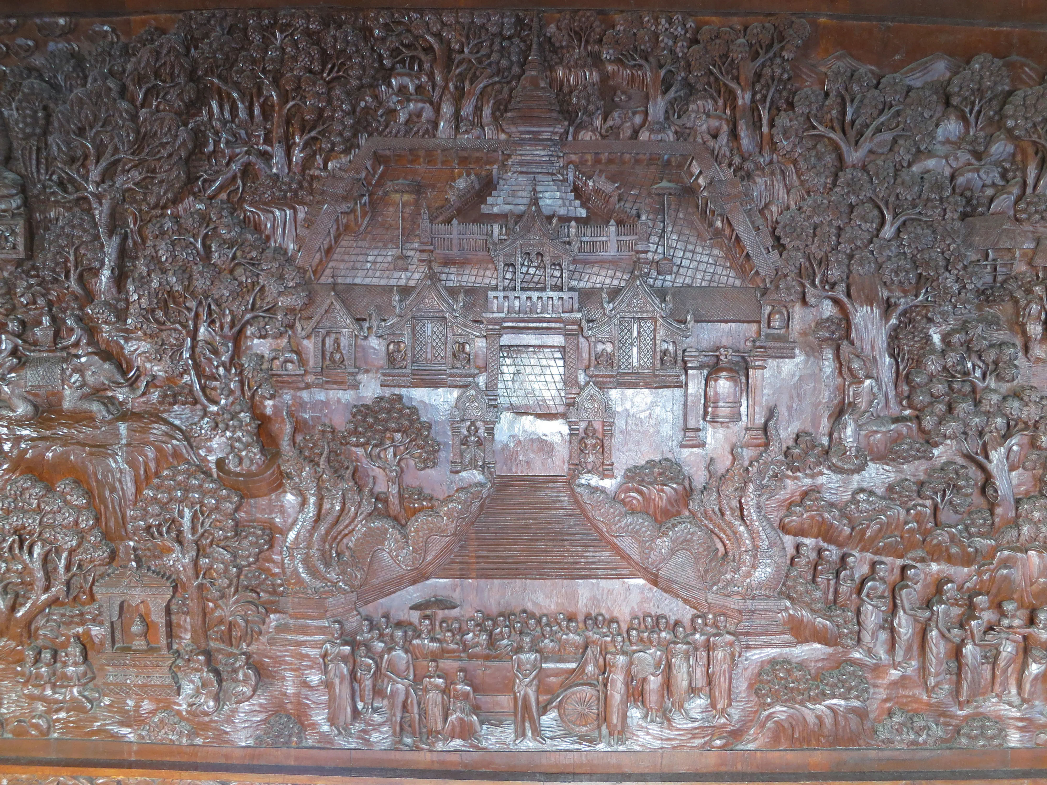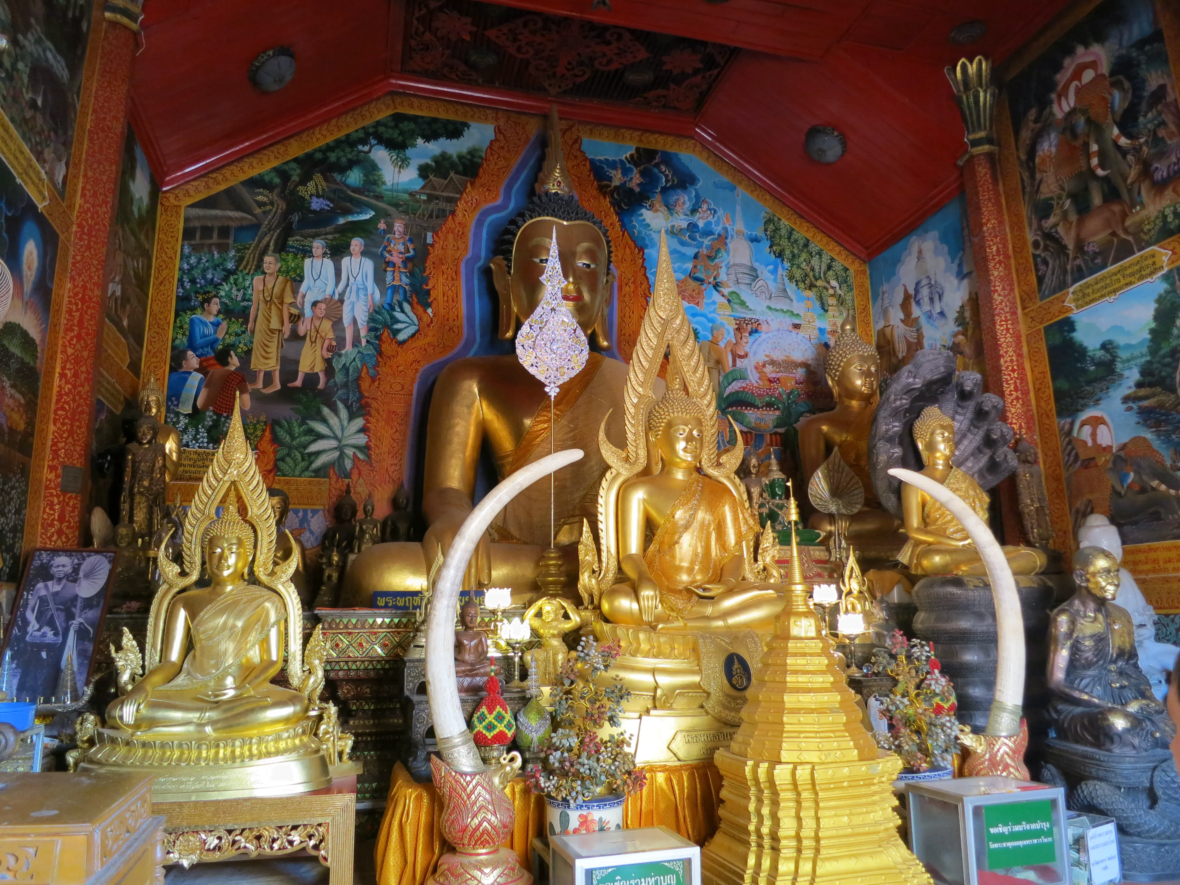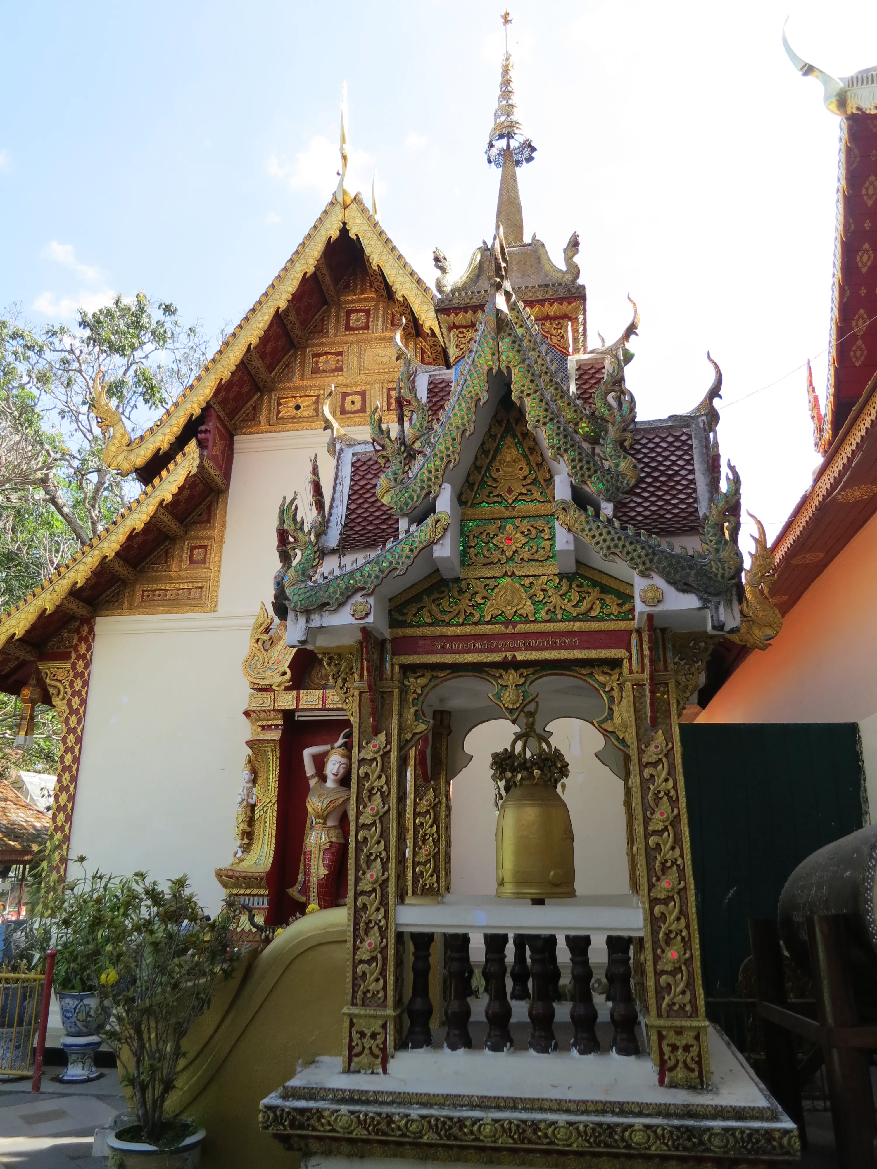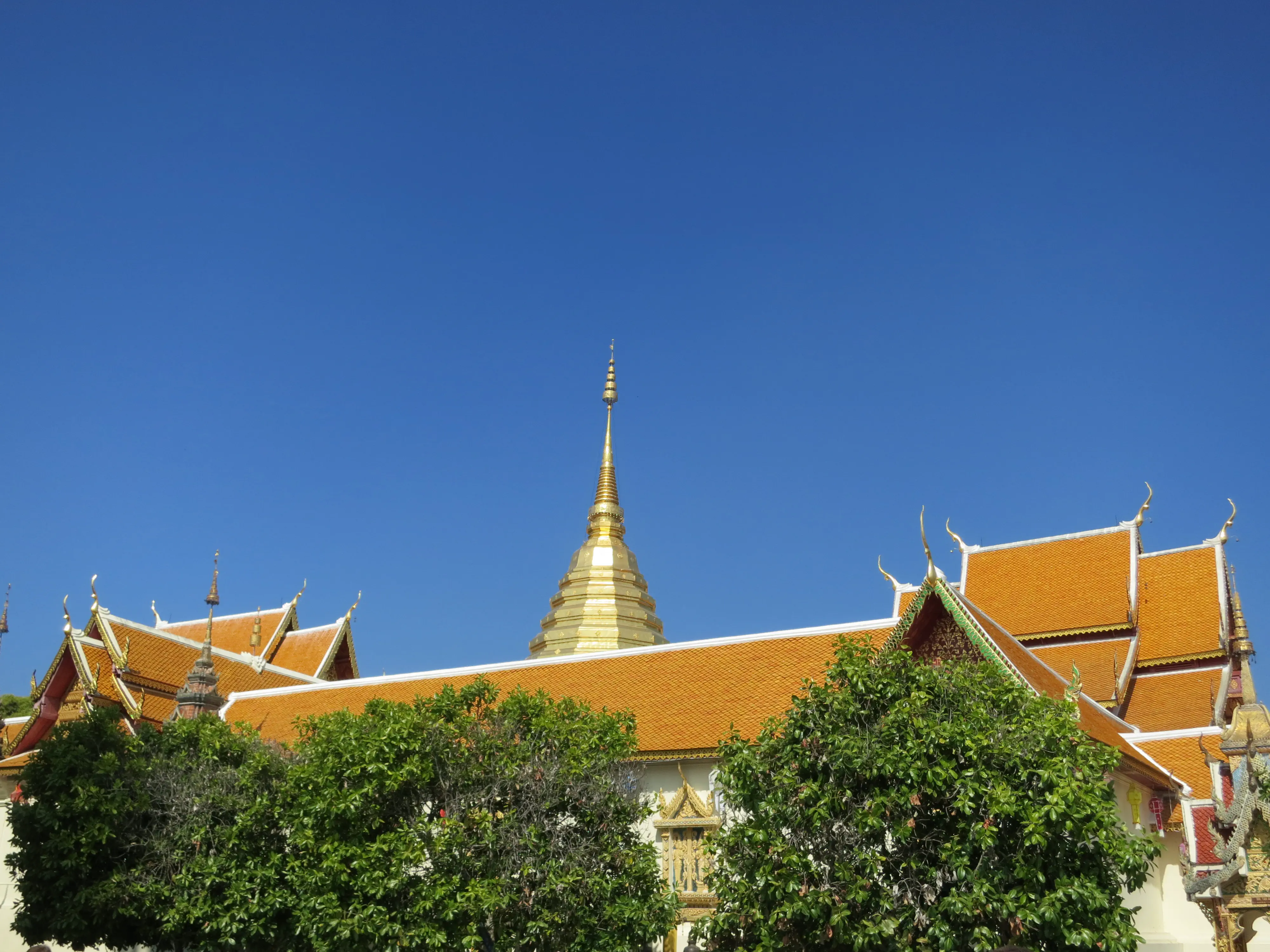 Another day of walking! We got up and left the hotel just after 9:15 in the morning, a respectably early start for a full day of touring. I had read the previous evening that we could pick up a cheap ride to the Doi Suthep temple just outside the Chang Phuak (north) gate, which was conveniently just across the road from our hotel. We crossed the moat and got into a songtheaw, which is basically a red pickup truck with a covered bench in the back for people to sit in. This vehicle, rickety as it was, made the trip up the Doi Suthep mountain without too many complaints. It certainly spewed some gross looking black smog though; emission standards are much less stringent here. After a 45 minute ride, with many twists and turns, we arrived at what appeared to be a small market with many vendors selling us cheap trinkets and food. We walked through the market to arrive at the base of the 308 step staircase which lead up to the temple. The walk up was no issue; it was crowded however so I wasn’t able to get any really nice photos. We toured through the temple and looked out over the city of Chiang Mai; it was hazy though so it was difficult to make out the city.