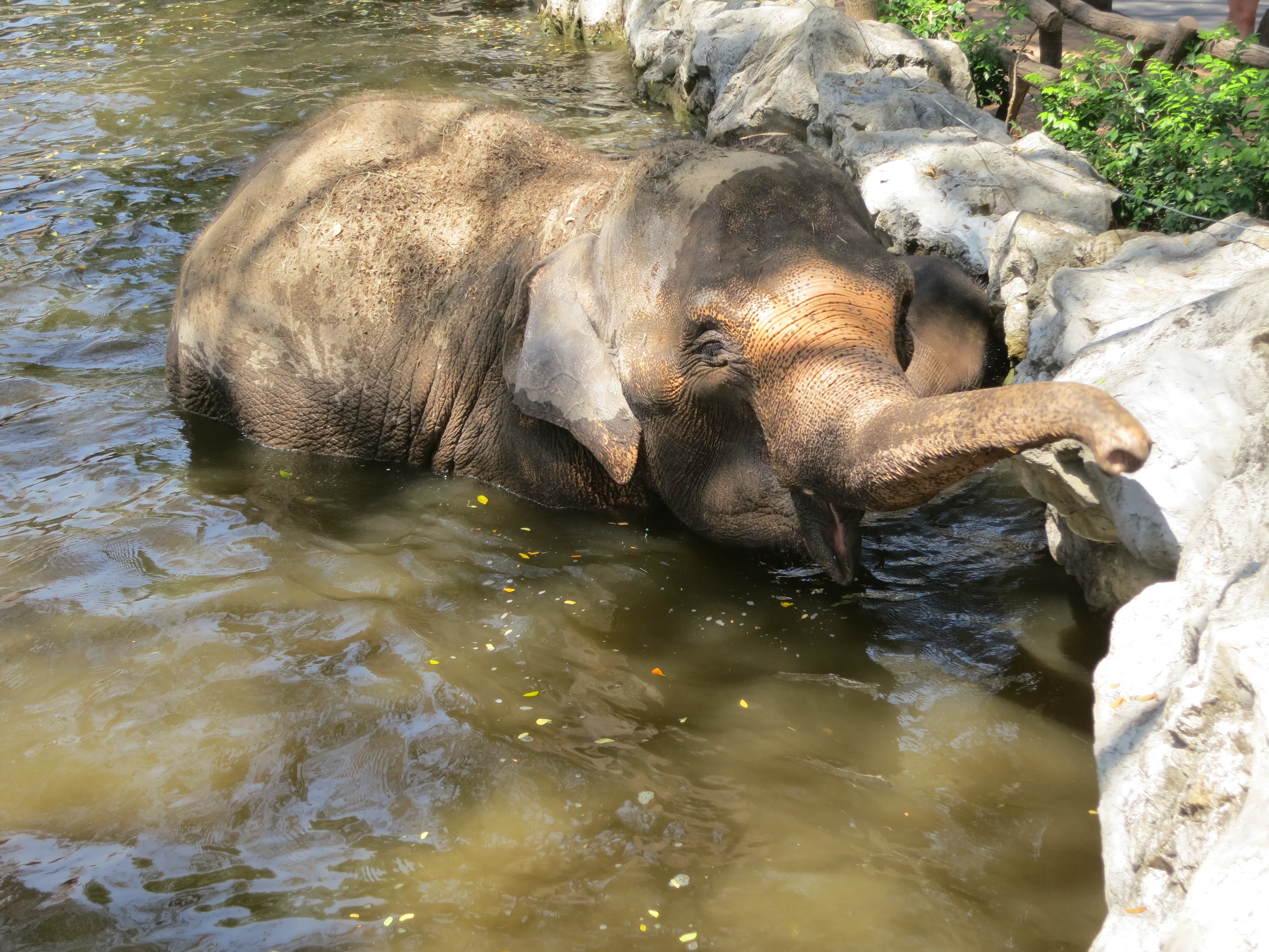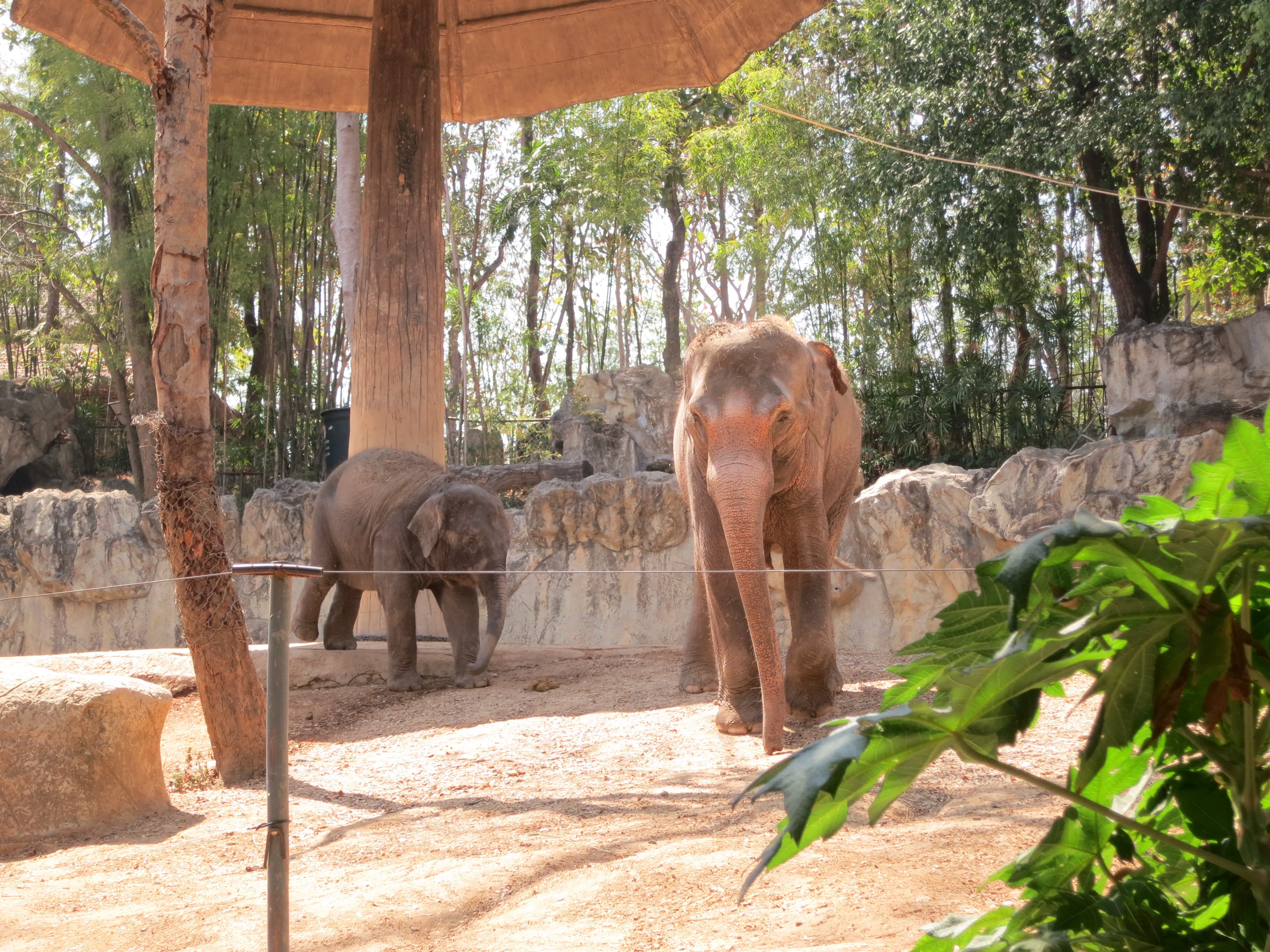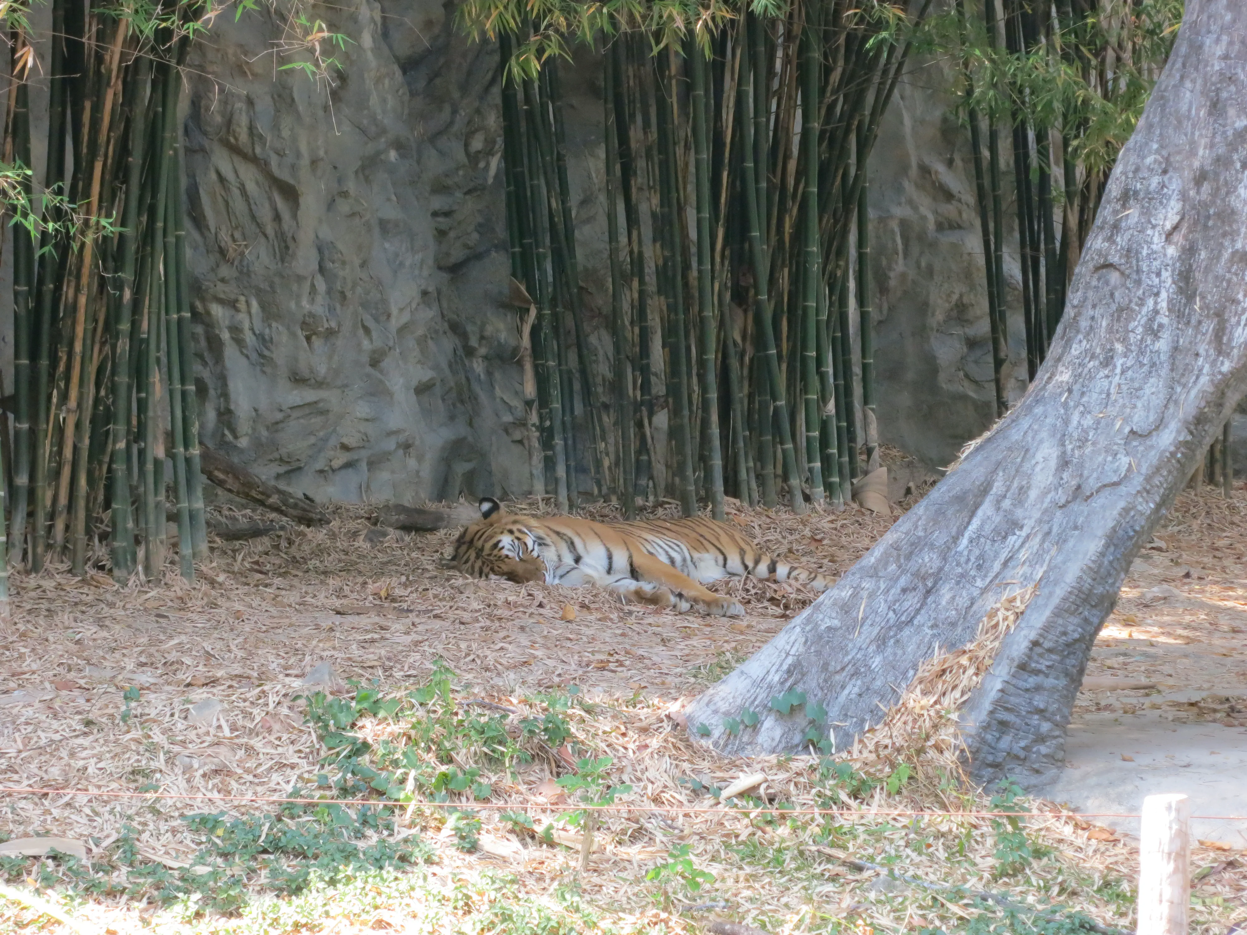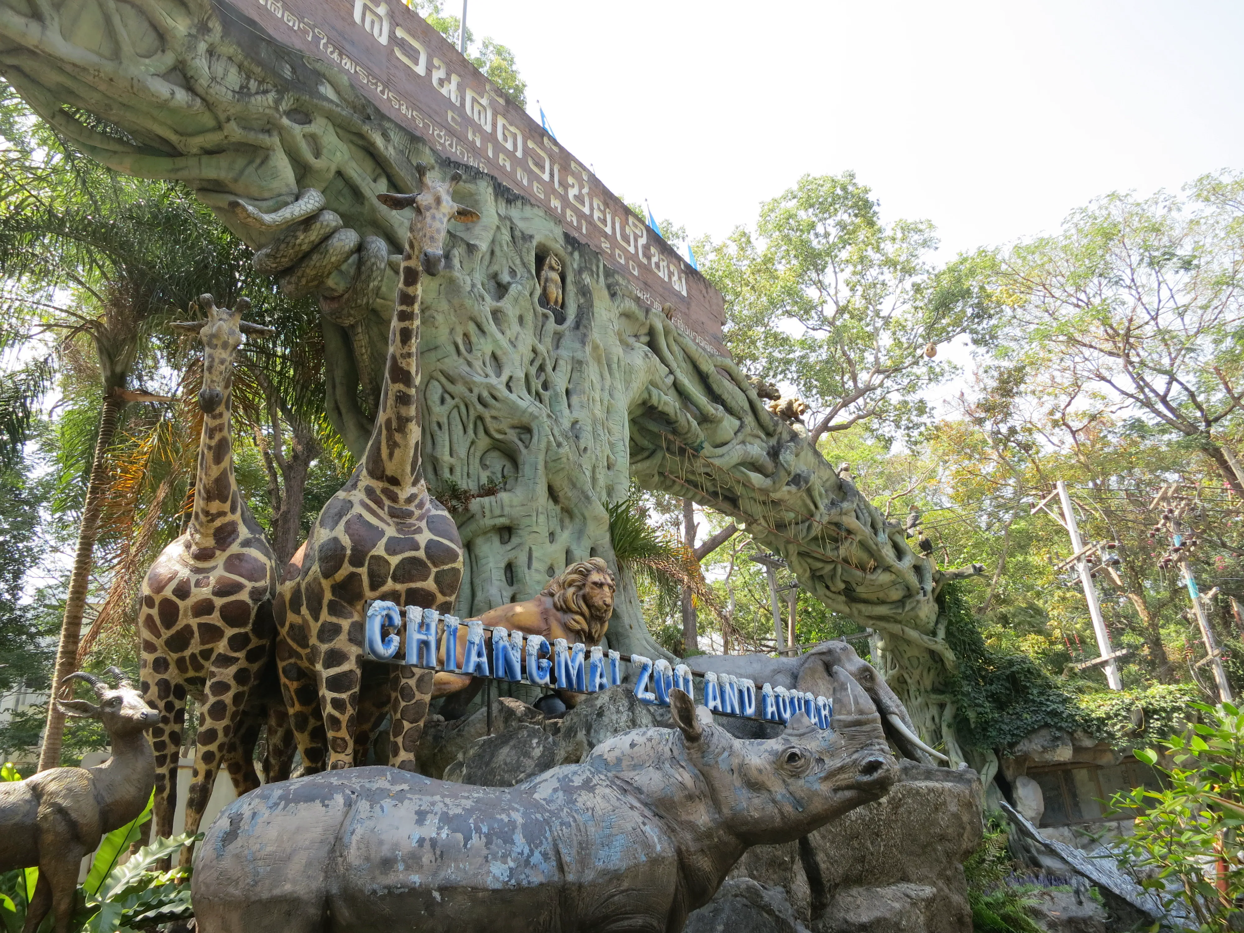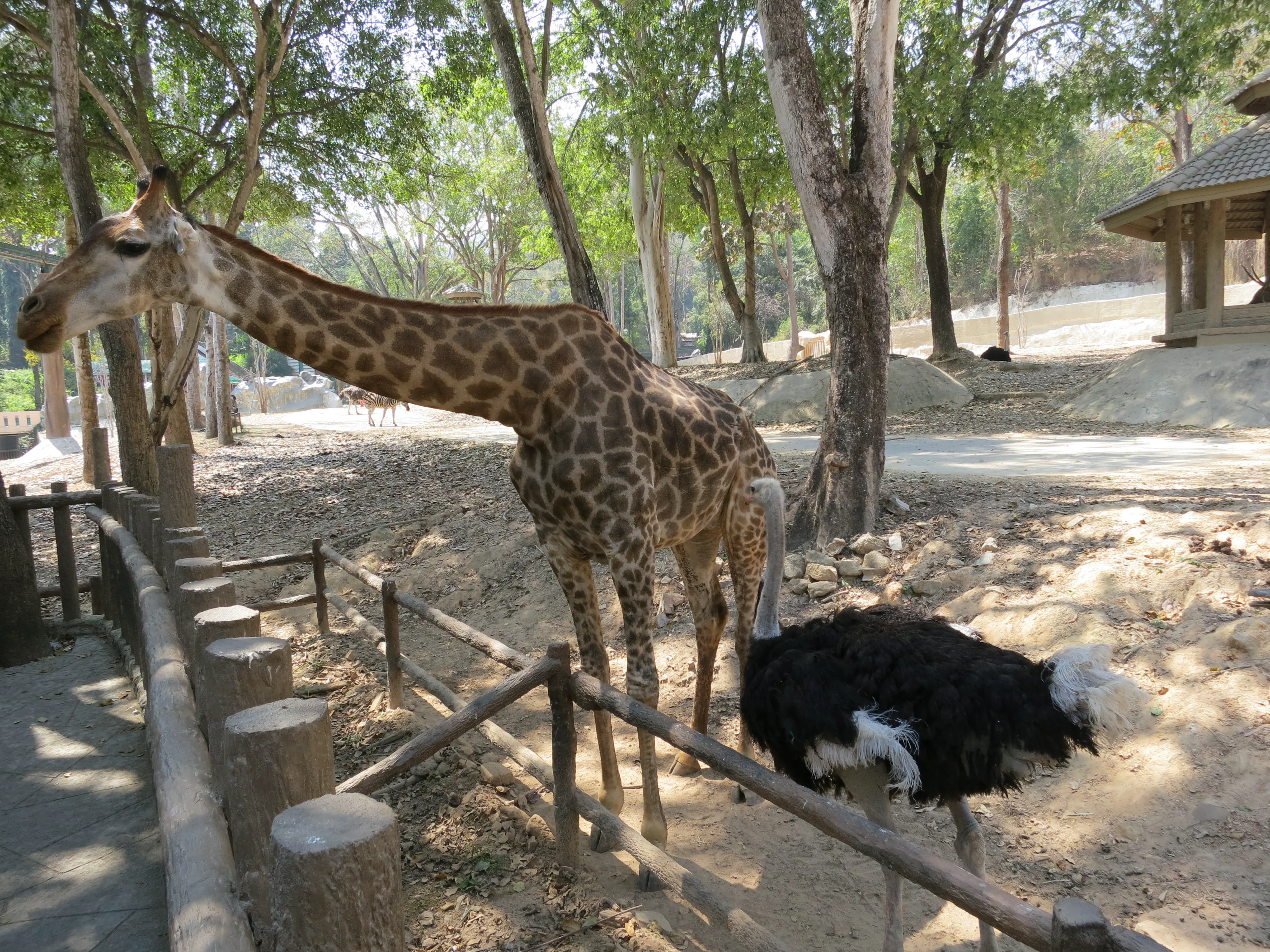 After descending the 308 steps we hailed another songtheaw down the mountain to the Chiang Mai Zoo, which was just at the base of the Doi Suthep mountain. Unfortunately we had to wait about 20 minutes for the driver to gather enough additional passengers for the trip to be worth it, though it gave us a bit of a rest. The Chiang Mai zoo was much different from what I was expecting; all of the enclosures were outside (save for the penguins), and there was a road which linked all of the pens which cars were driving on. While we had come just to see the aquarium we decided we may as well tour the zoo as well, since it was included in the price of admission. Also, the aquarium was located on the opposite side of the zoo from the entrance, so we needed to pass a number of animals anyways. We saw elephants, giraffes, deer, rhinos, monkeys, and a variety of other similar zoo animals on our way to the aquarium. Upon arriving I was surprised to see how run down the aquarium was, given it was supposed to be less than 10 years old. In my opinion the aquarium was less than impressive; their underwater tunnel was half closed, and the half which was open had very few animals and even fewer plant/coral displays. Todd had a mini freak-out when we had to walk past several snakes; I had to walk between him and the cages to keep him moving forward. Overall I have to say I enjoyed the zoo more than the aquarium, which was a bit disappointing because I was more excited for the aquarium.