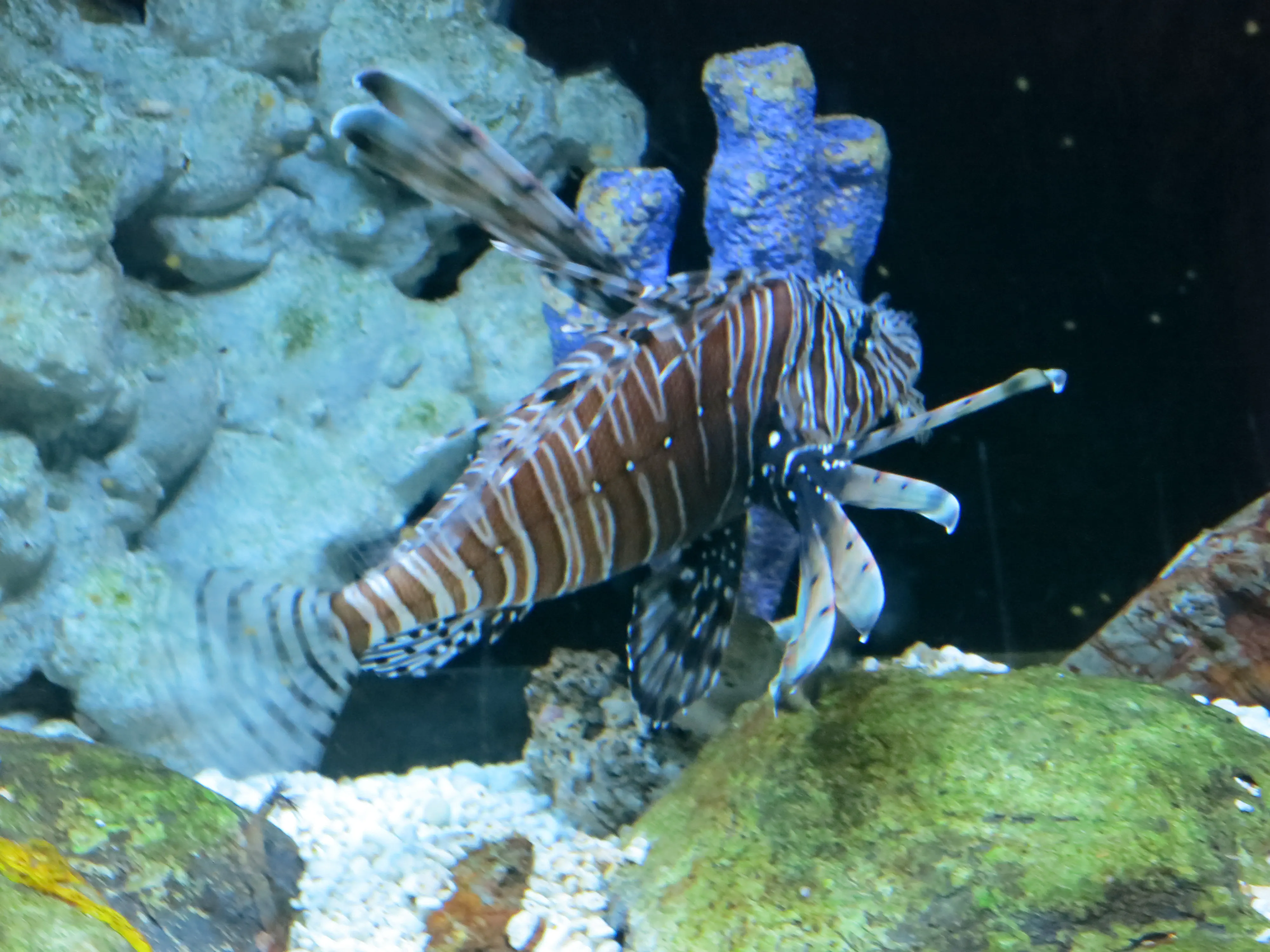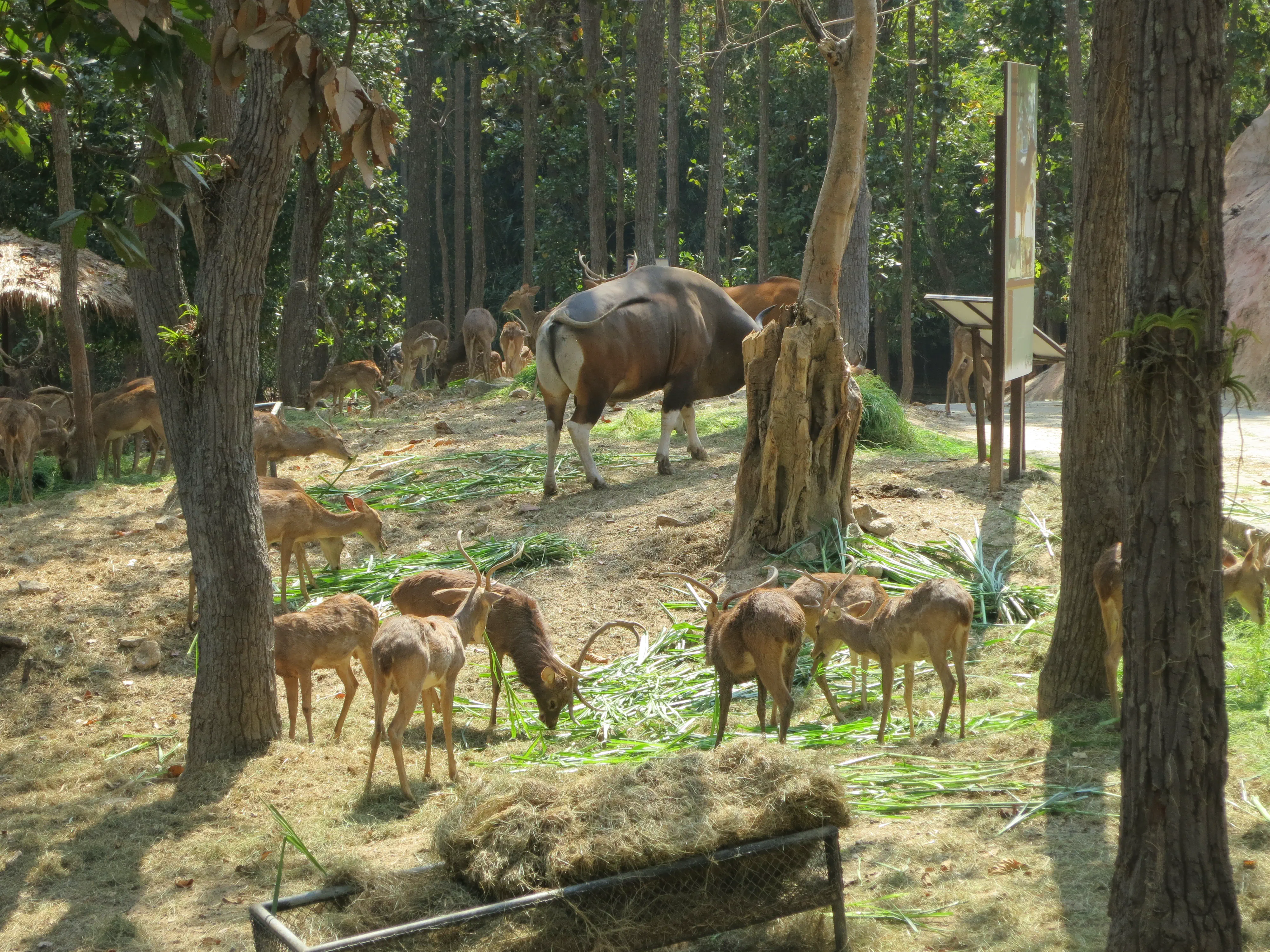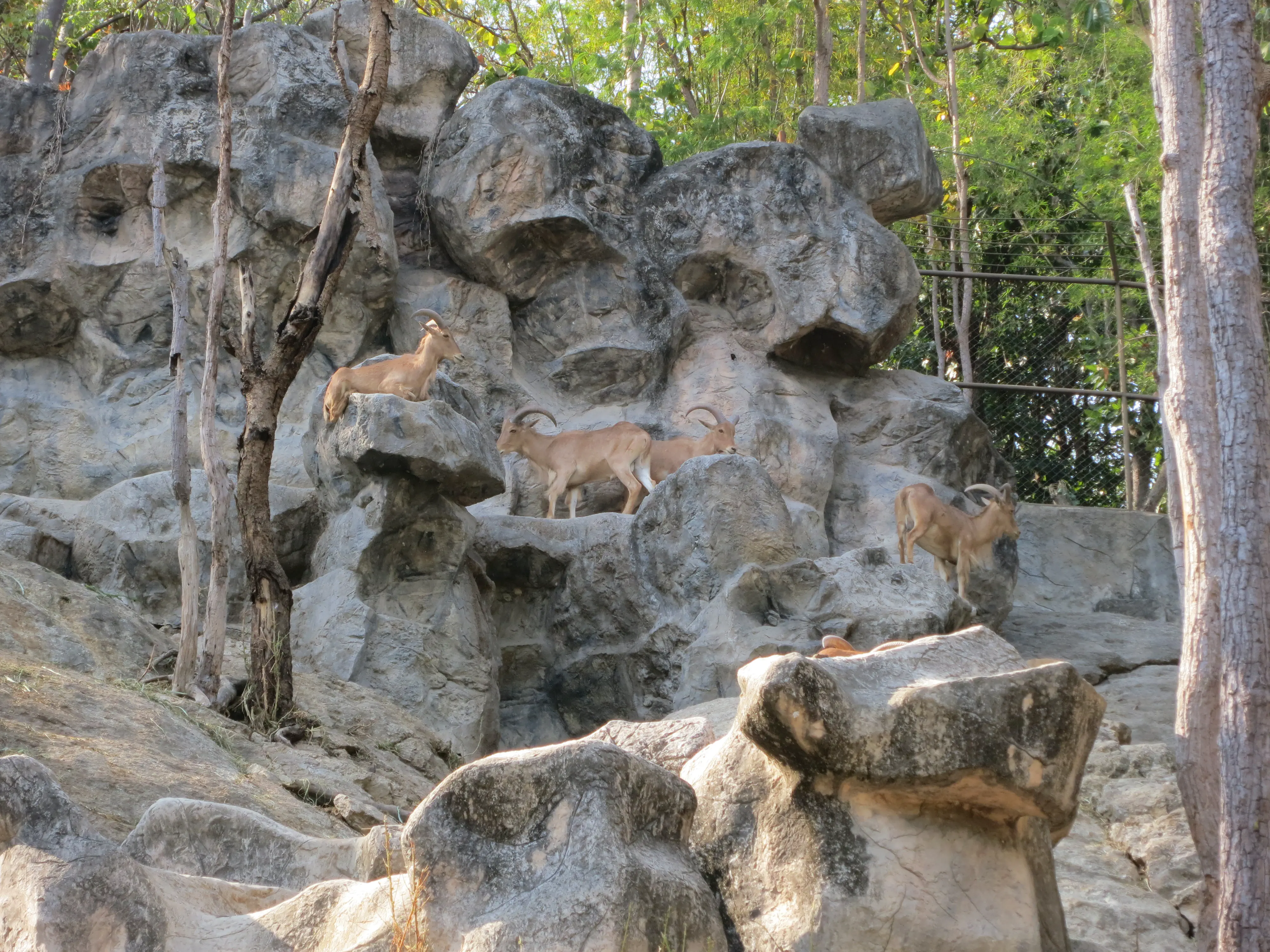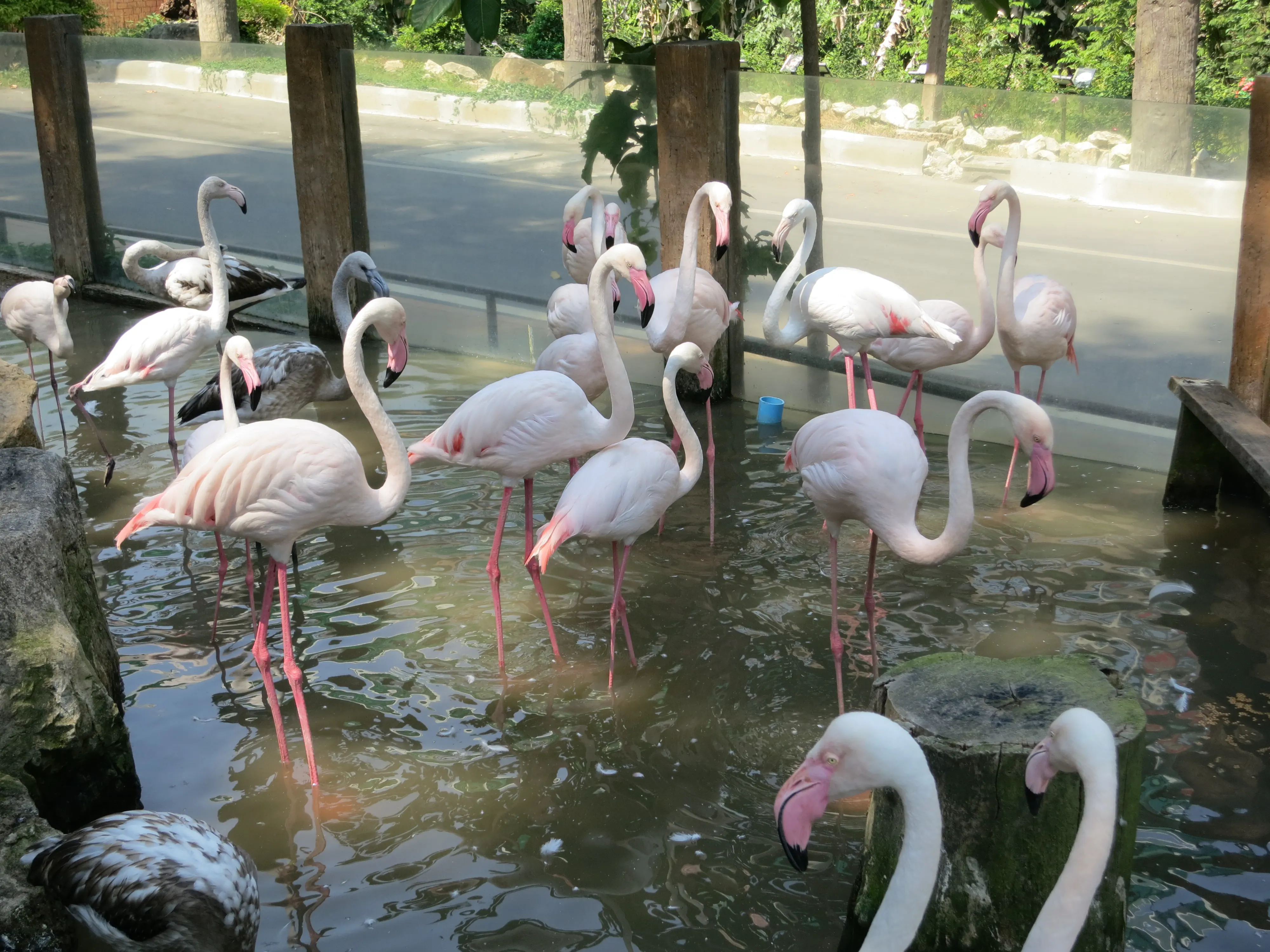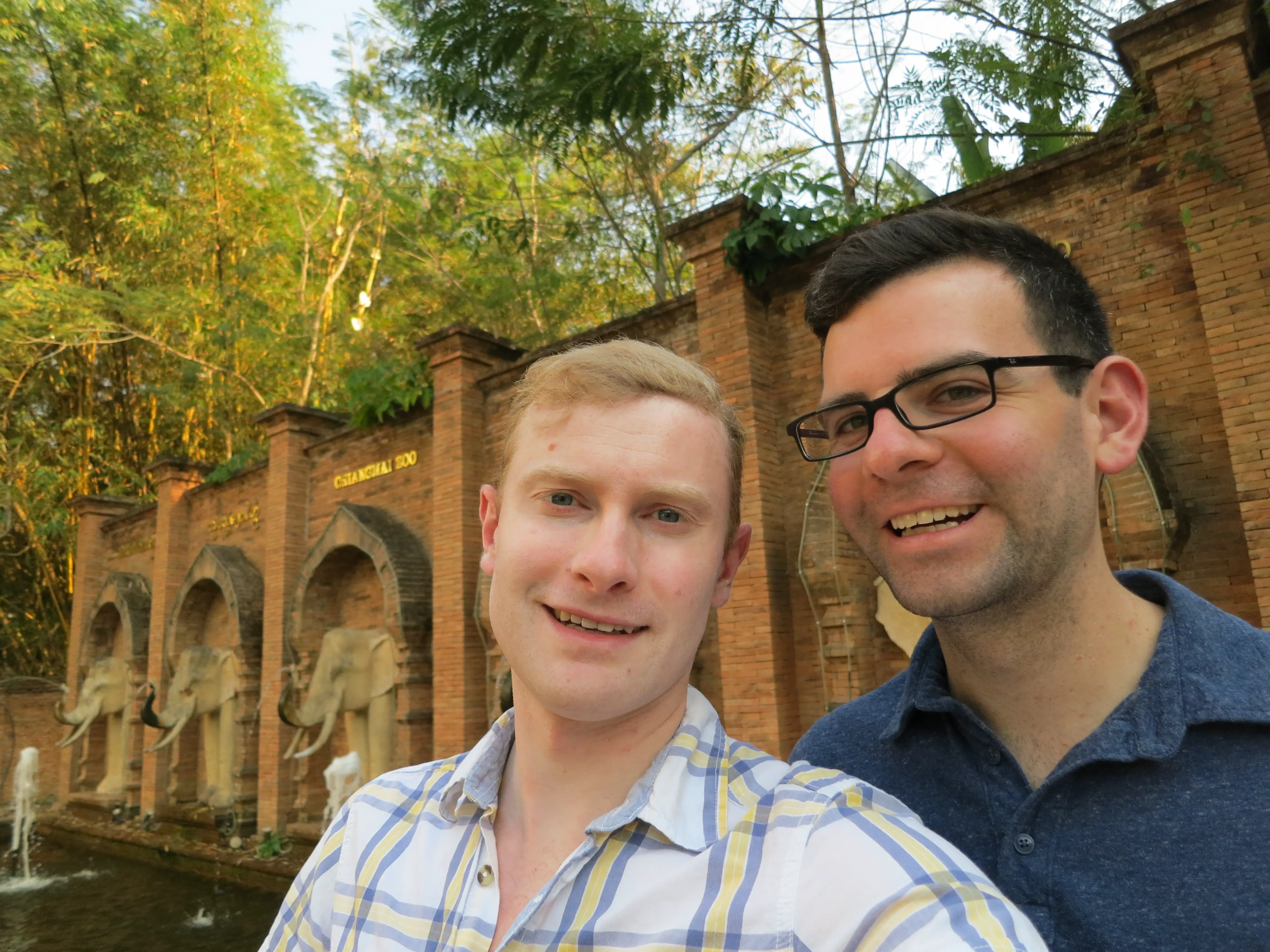 After descending the 308 steps we hailed another songtheaw down the mountain to the Chiang Mai Zoo, which was just at the base of the Doi Suthep mountain. Unfortunately we had to wait about 20 minutes for the driver to gather enough additional passengers for the trip to be worth it, though it gave us a bit of a rest. The Chiang Mai zoo was much different from what I was expecting; all of the enclosures were outside (save for the penguins), and there was a road which linked all of the pens which cars were driving on. While we had come just to see the aquarium we decided we may as well tour the zoo as well, since it was included in the price of admission. Also, the aquarium was located on the opposite side of the zoo from the entrance, so we needed to pass a number of animals anyways. We saw elephants, giraffes, deer, rhinos, monkeys, and a variety of other similar zoo animals on our way to the aquarium. Upon arriving I was surprised to see how run down the aquarium was, given it was supposed to be less than 10 years old. In my opinion the aquarium was less than impressive; their underwater tunnel was half closed, and the half which was open had very few animals and even fewer plant/coral displays. Todd had a mini freak-out when we had to walk past several snakes; I had to walk between him and the cages to keep him moving forward. Overall I have to say I enjoyed the zoo more than the aquarium, which was a bit disappointing because I was more excited for the aquarium.