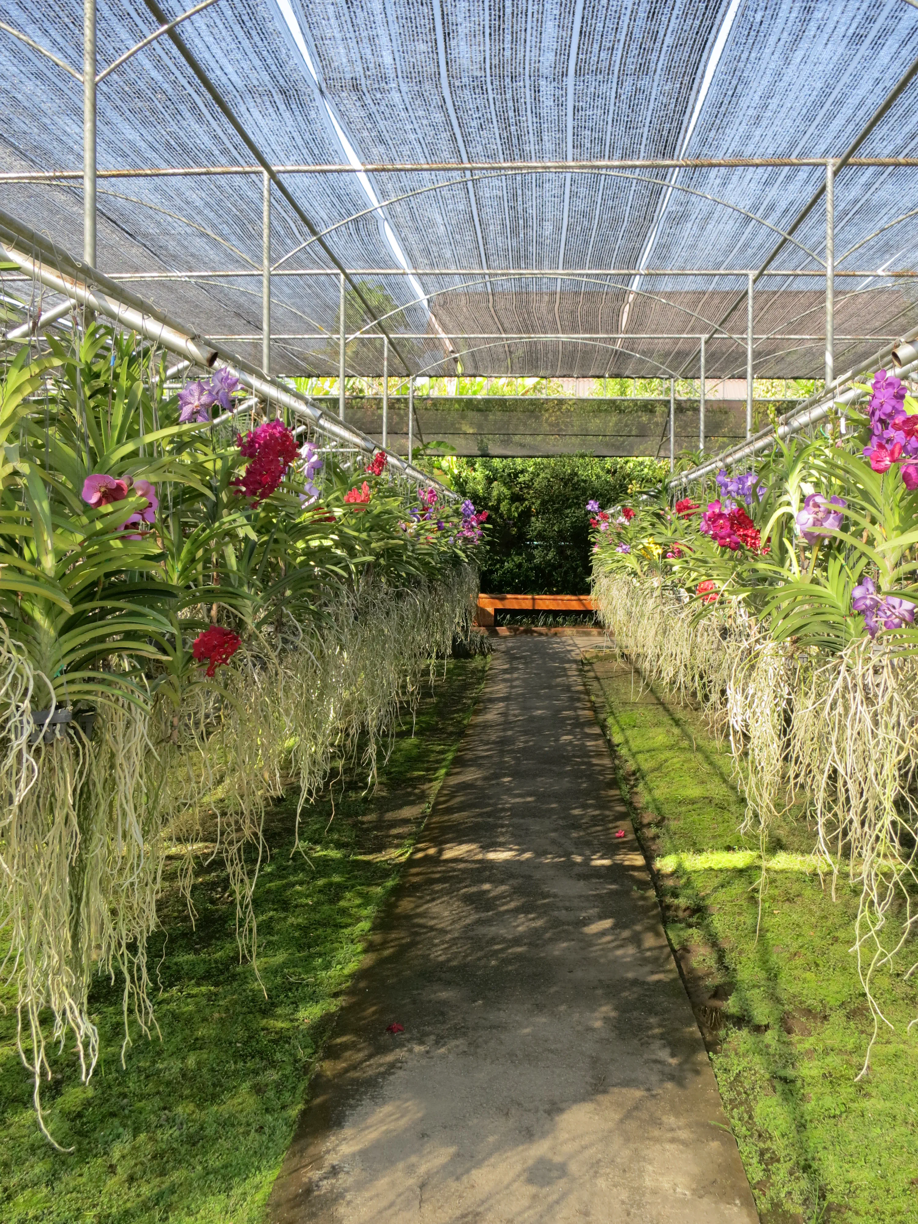 The last full day in Chiang Mai! We decided that we wanted to leave the city, and so we scheduled an outdoor tour in the Chiang Mai countryside today. The tour started at 8:30 AM, when we were picked up in front of our hotel by a songthaew and our tour group. The first stop on the tour was a visit to a farm which raised both orchids and butterflies named the Bai Orchid-Butterfly farm. The drive took about 30 minutes, and while it wasn’t the most comfortable it wasn’t too bad either. We spent about 30 minutes walking through the rows of orchids and the butterfly pen. It was amazing to see all of the different orchids growing. It gave me a few ideas on ways we could grow orchids in our apartment… another project ahead I suppose. The butterflies were nice to see as well, I think I got a few pretty good photos of them which I am excited to see.