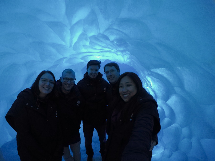 We started by driving past Hallgrímskirkja, a gorgeous church right in downtown Reykjavík. We continued driving and saw a shiny glass dome on the hill, so we decided to pull up to it. The building was Perlan, a museum with an observation deck that overlooks the city. We decided to go inside, and discovered that it was showing an exhibit about glaciers and ice caves. We toured through a series of photos that documented the volcanoes of Iceland in various stages of eruption, and then toured through an ice cave they had set up in the building. We were guided through a series of tunnels that showed us the makeup and structure of ice caves. The ice cave was built from approximately 380 tonnes of ice that was shipped to the building, most of it imported from Denmark. It was a super unique experience (it was also super cold).