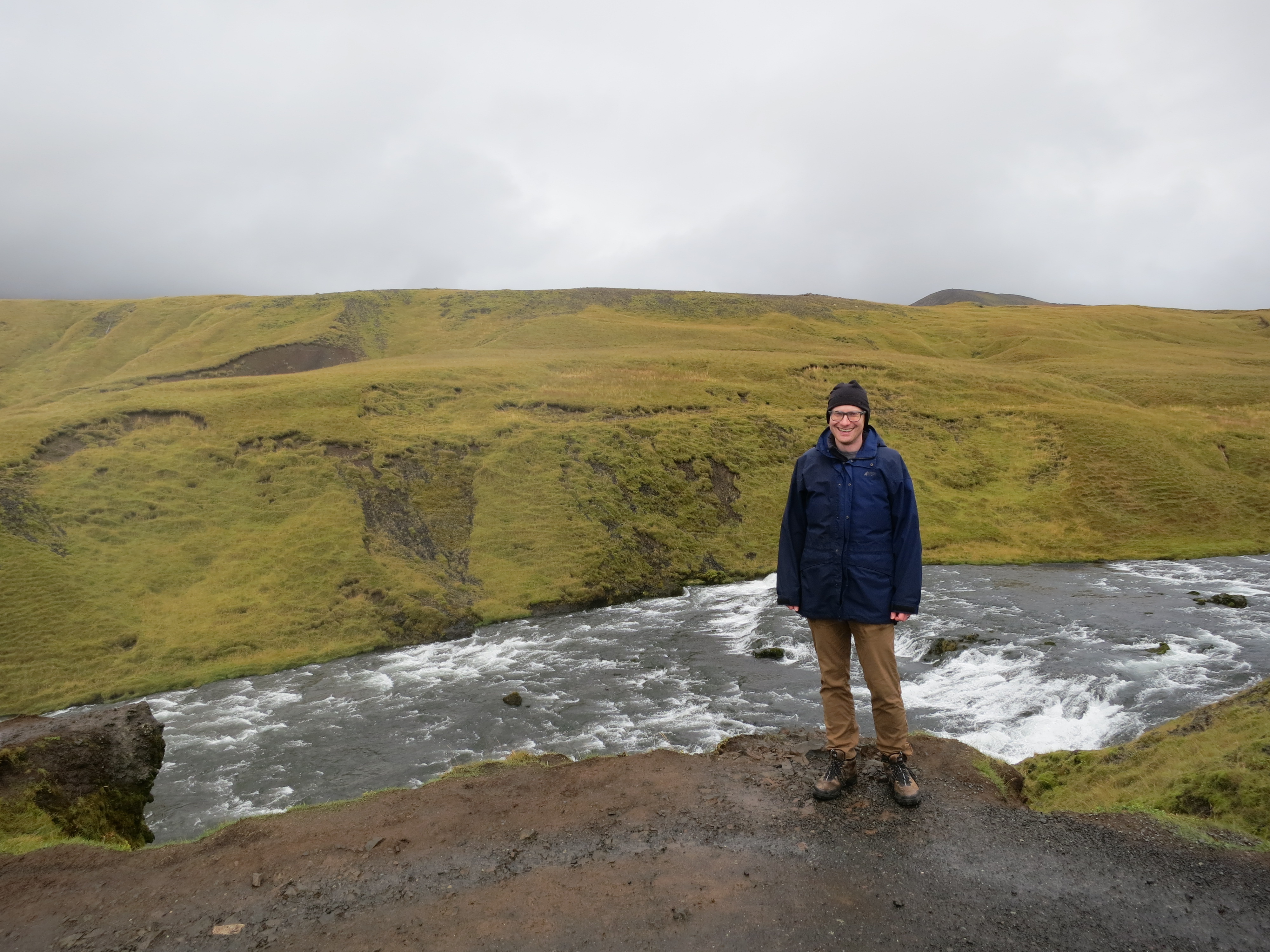 Me, with rapids leading to the waterfall behind