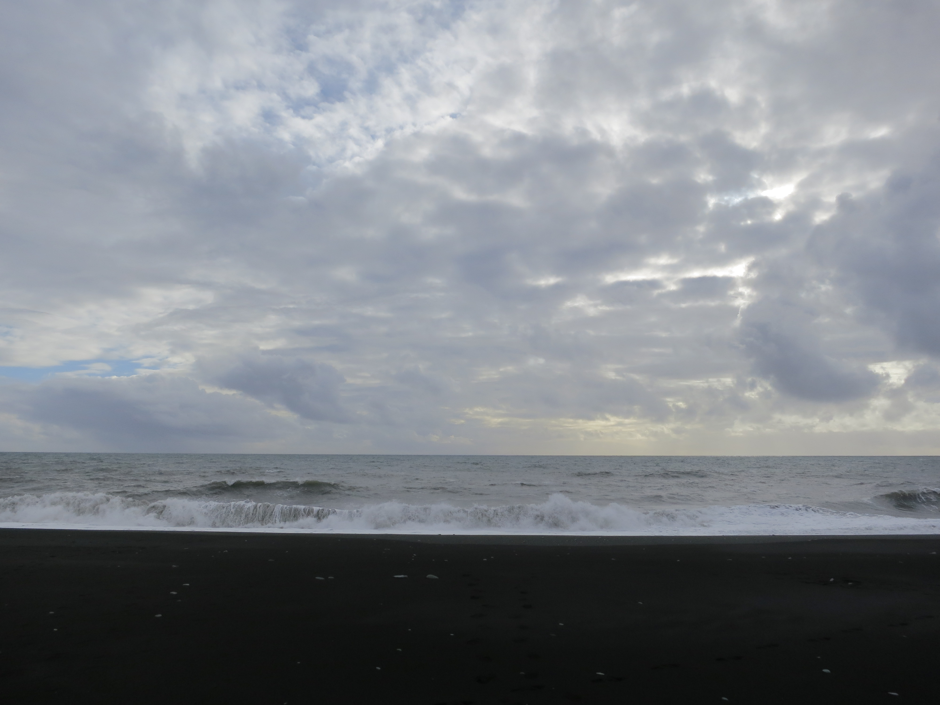 The black sand, the surf, and the sky