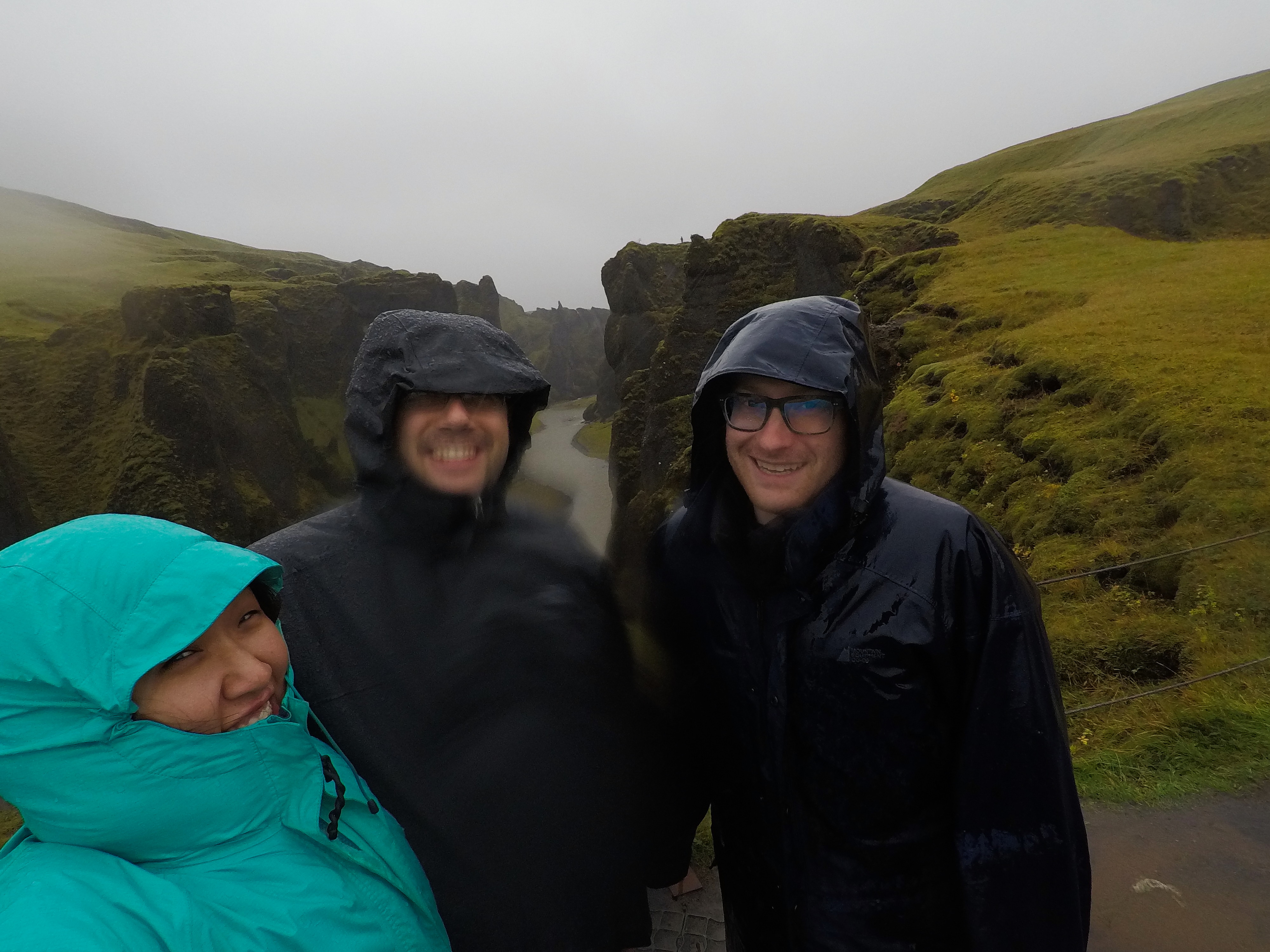 Chris, Susan and I braving the rain at the Fjaðrárgljúfur canyon