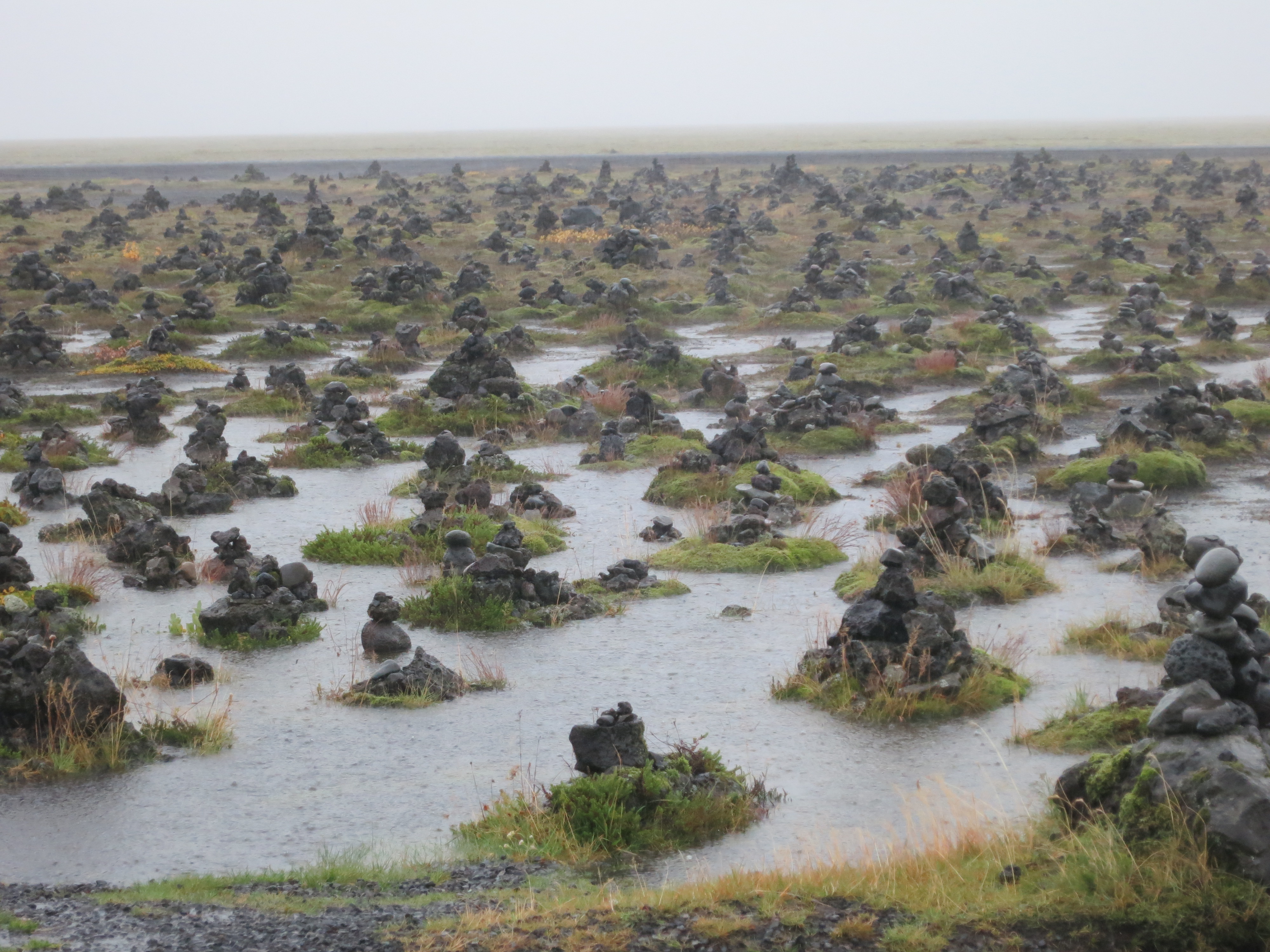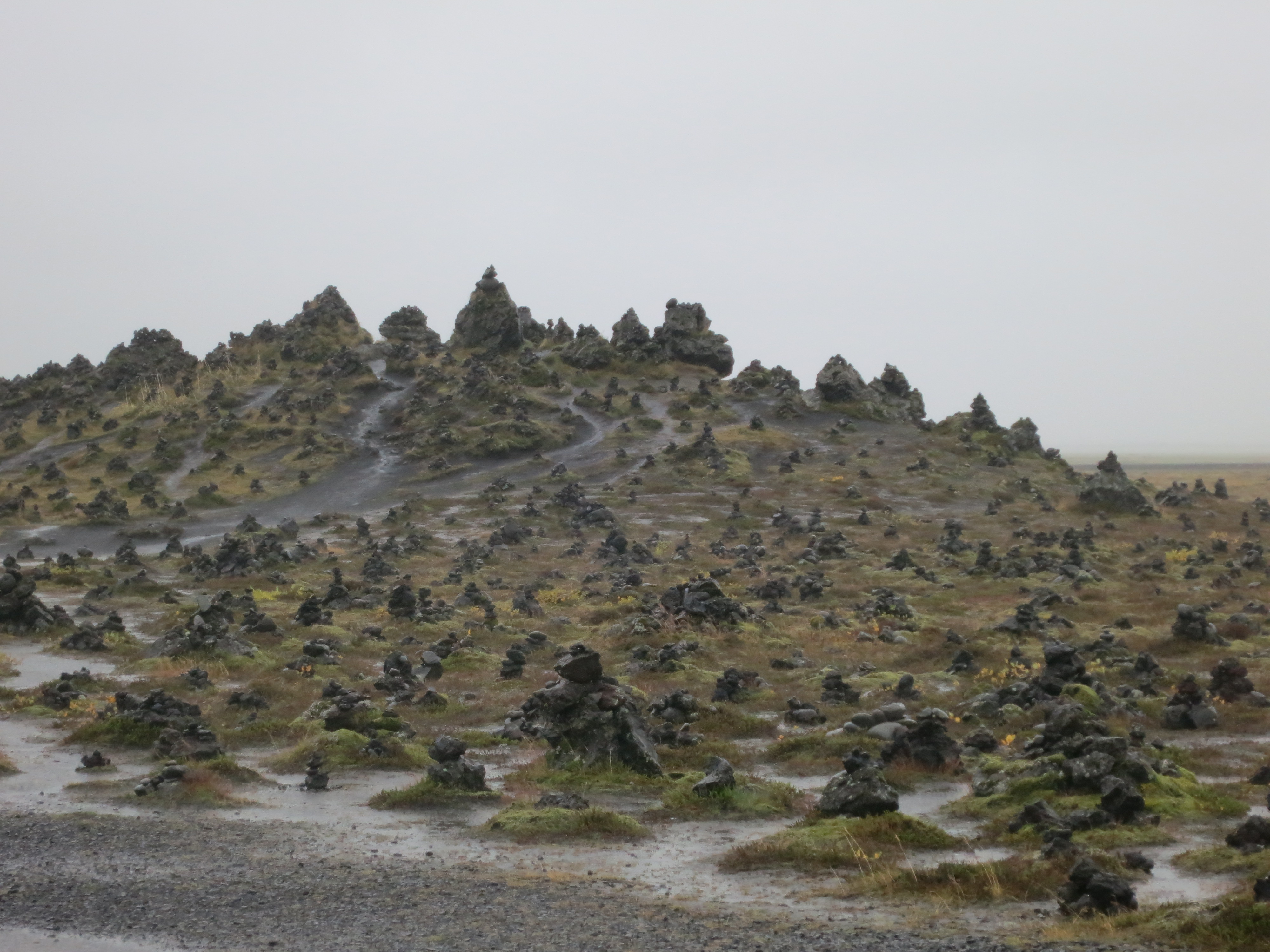 The trip continued east along the ring road. Progress was slow as the car was getting blown all around, however after about an hour we reached the Laufskálavarða lava ridge. The rain was still pouring at this point, so I parked the car allowing the driver’s side to be sheltered, we rolled down a window and snapped a few photos before continuing on our journey.The lava ridge