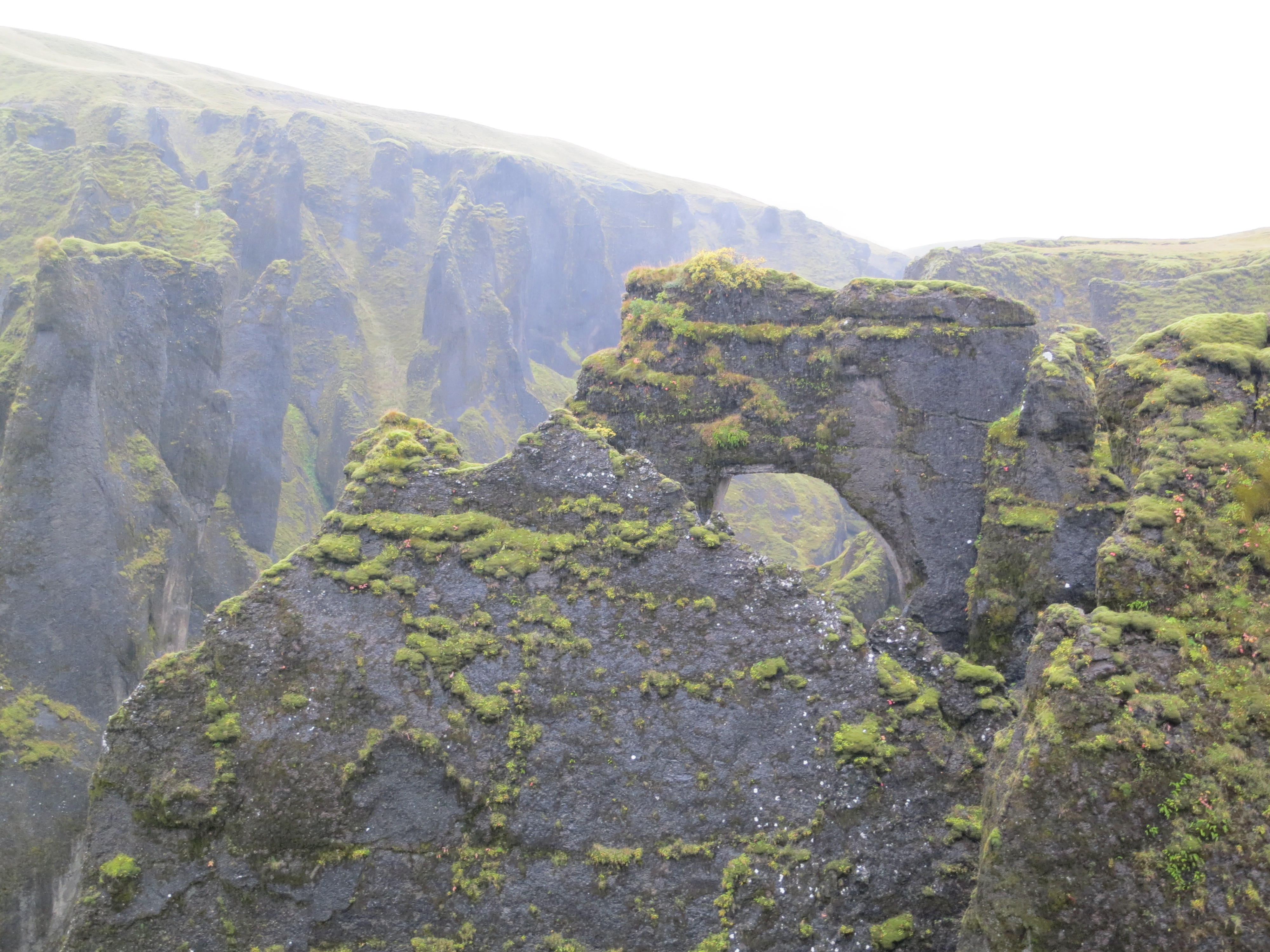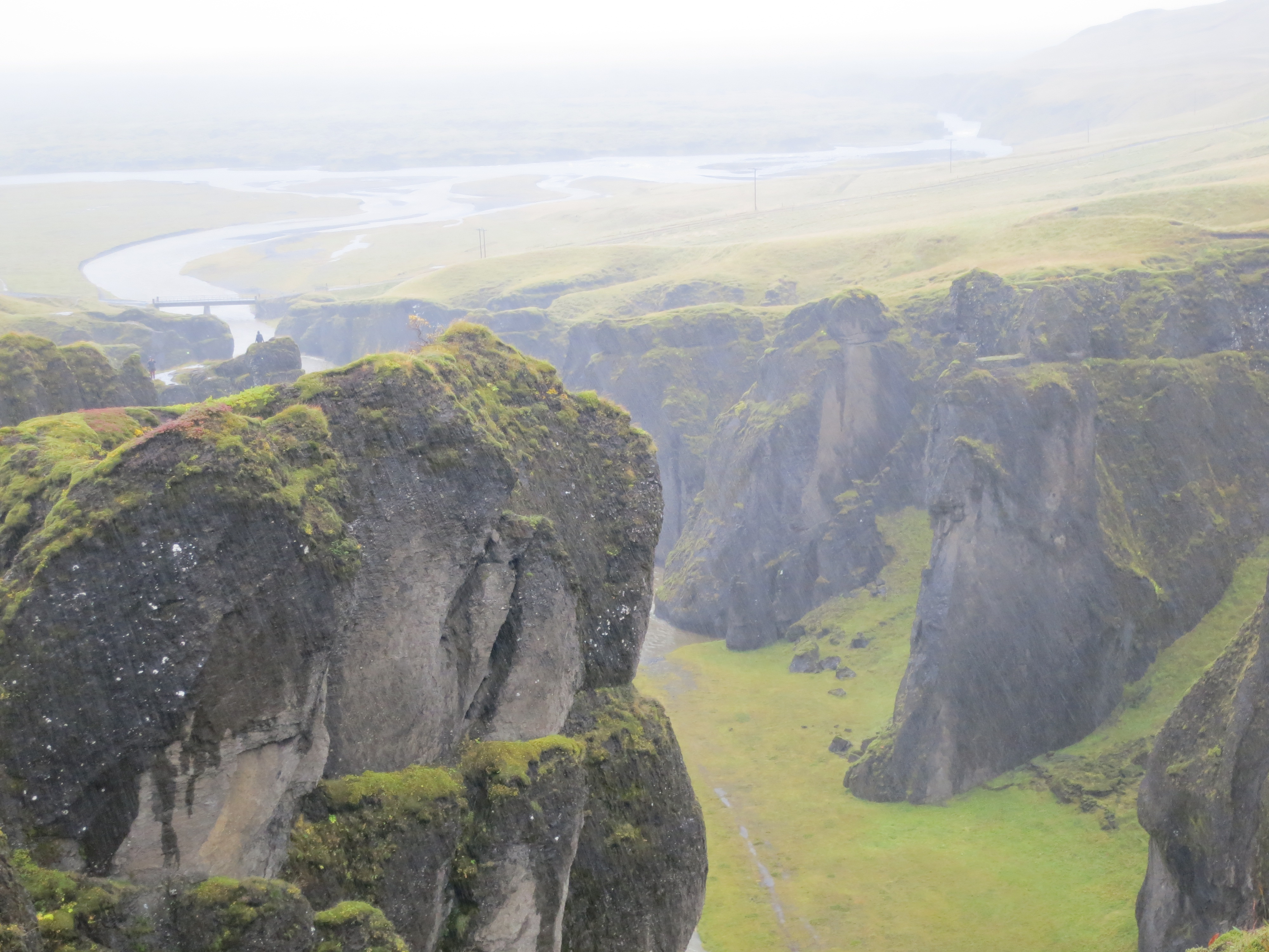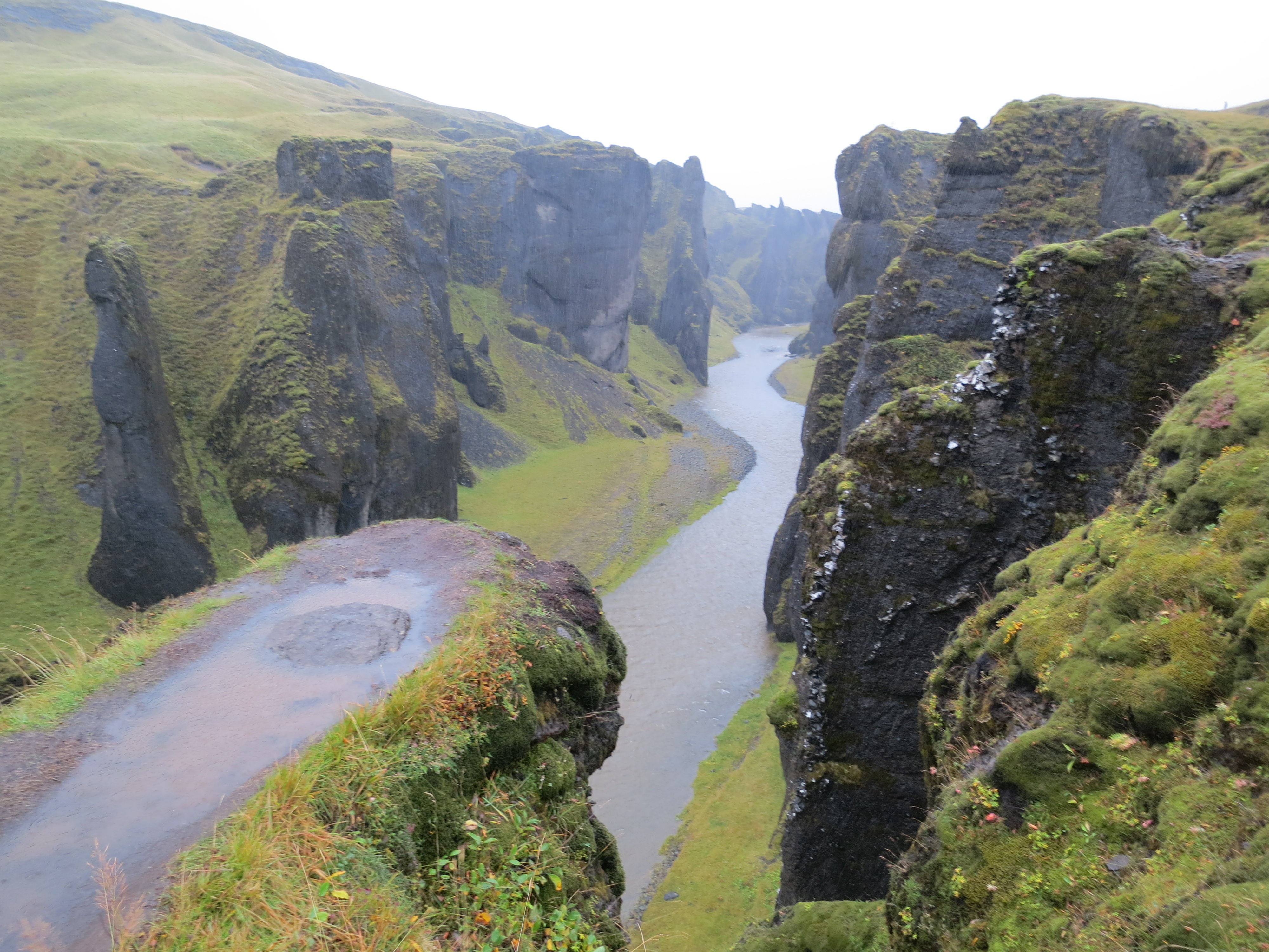 Shortly after leaving the lava ridge we stopped at the Fjaðrárgljúfur canyon. We had mostly dried out by this point, however Kate and Dave did not want to get soaked again so only Susan, Chris and I ventured out to see the canyon. We walked for about 20 minutes along the path, stopping in at a few of the lookout points on the trail, before deciding we were wet enough and turned around. Unfortunately we didn’t make it to the waterfall at the end, but we did manage to get a very good look at the canyon.The canyon