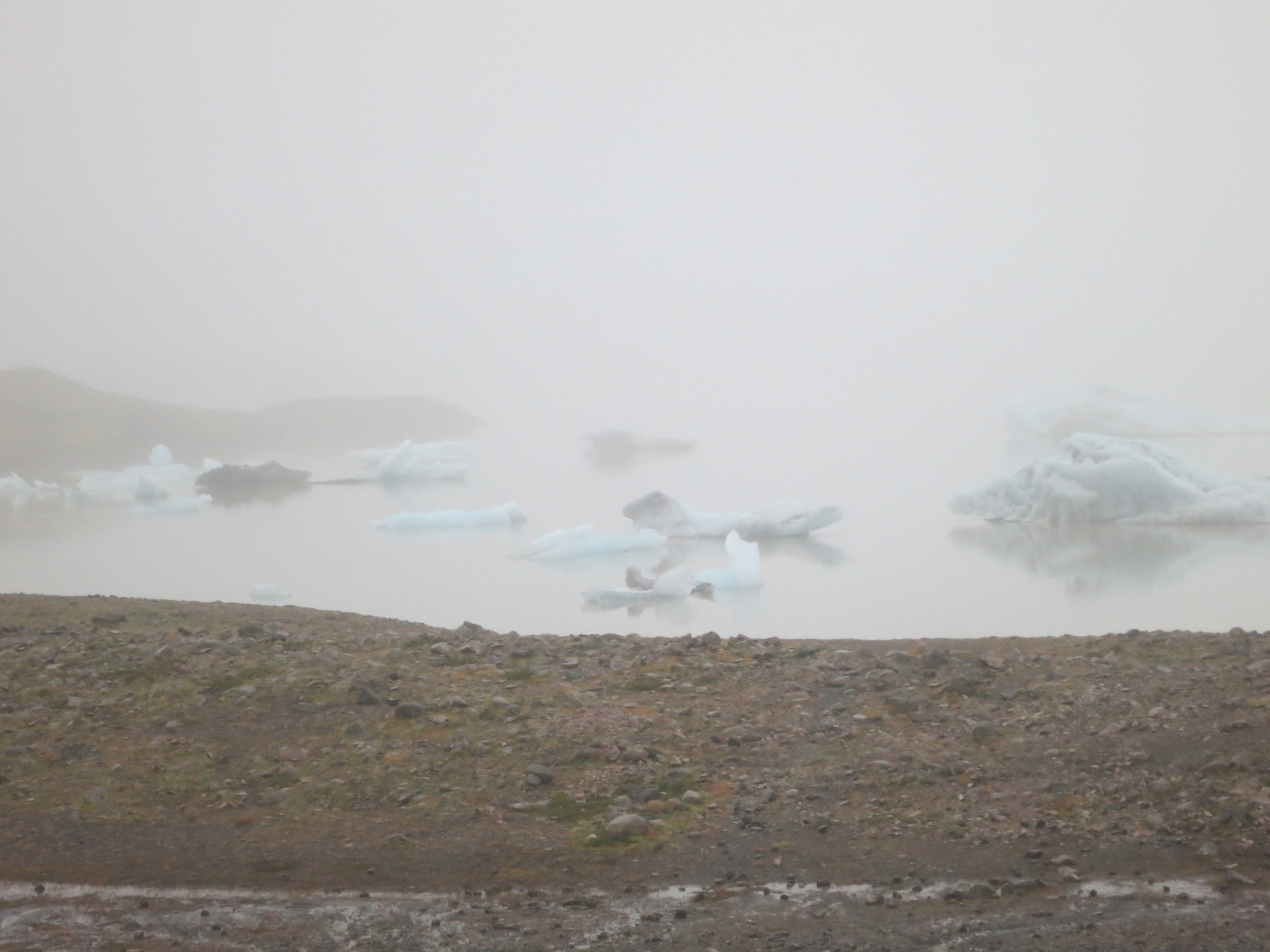 The next major stop of the day was the Fjallsárlón glacial lake, about an hour from the national park. Here we had a short, 5 minute walk from the parking lot to the lake, where we encountered a number of small icebergs floating in the water. The rain had stopped by this point, however it was still very misty and the icebergs were initially obscured by the mist. Luckily the weather started cooperating with us and the fog lifted after a brief period and we were able to get a much better view of them. We took in the view, took a few photos, then walked back to the car.Iceberg, right ahead!
