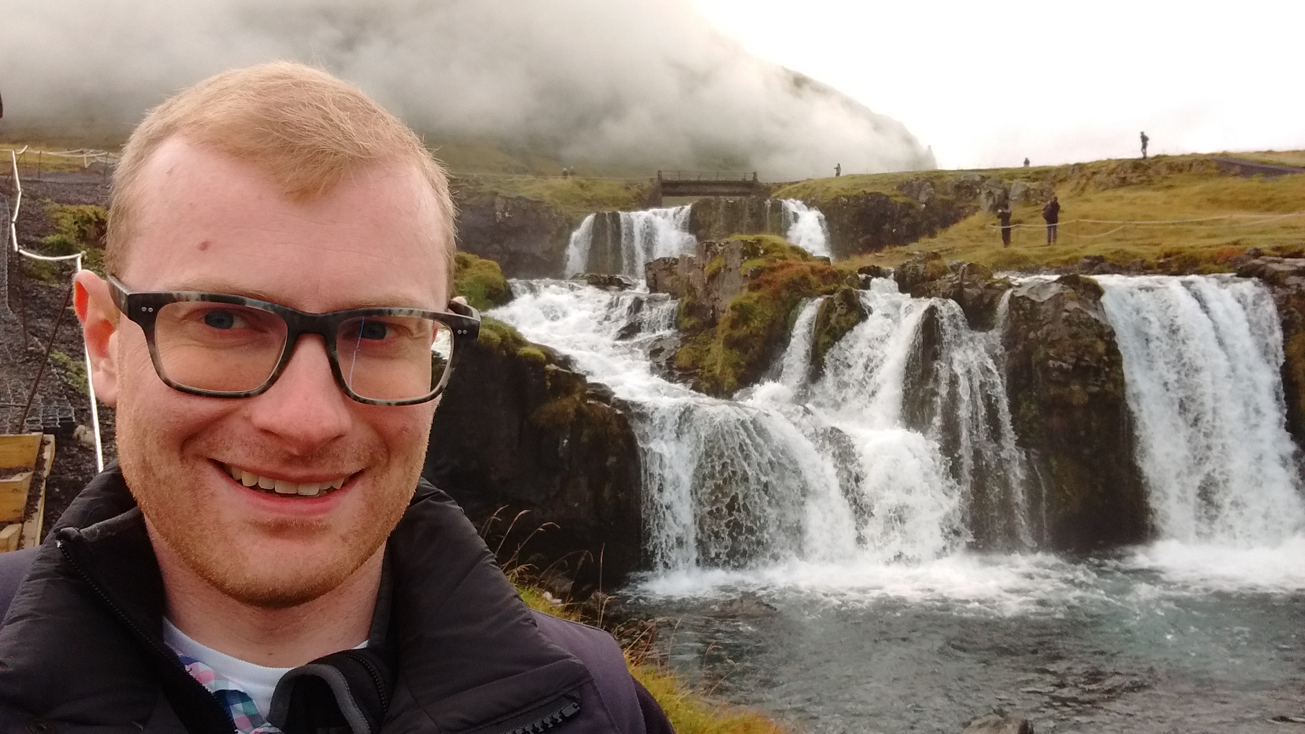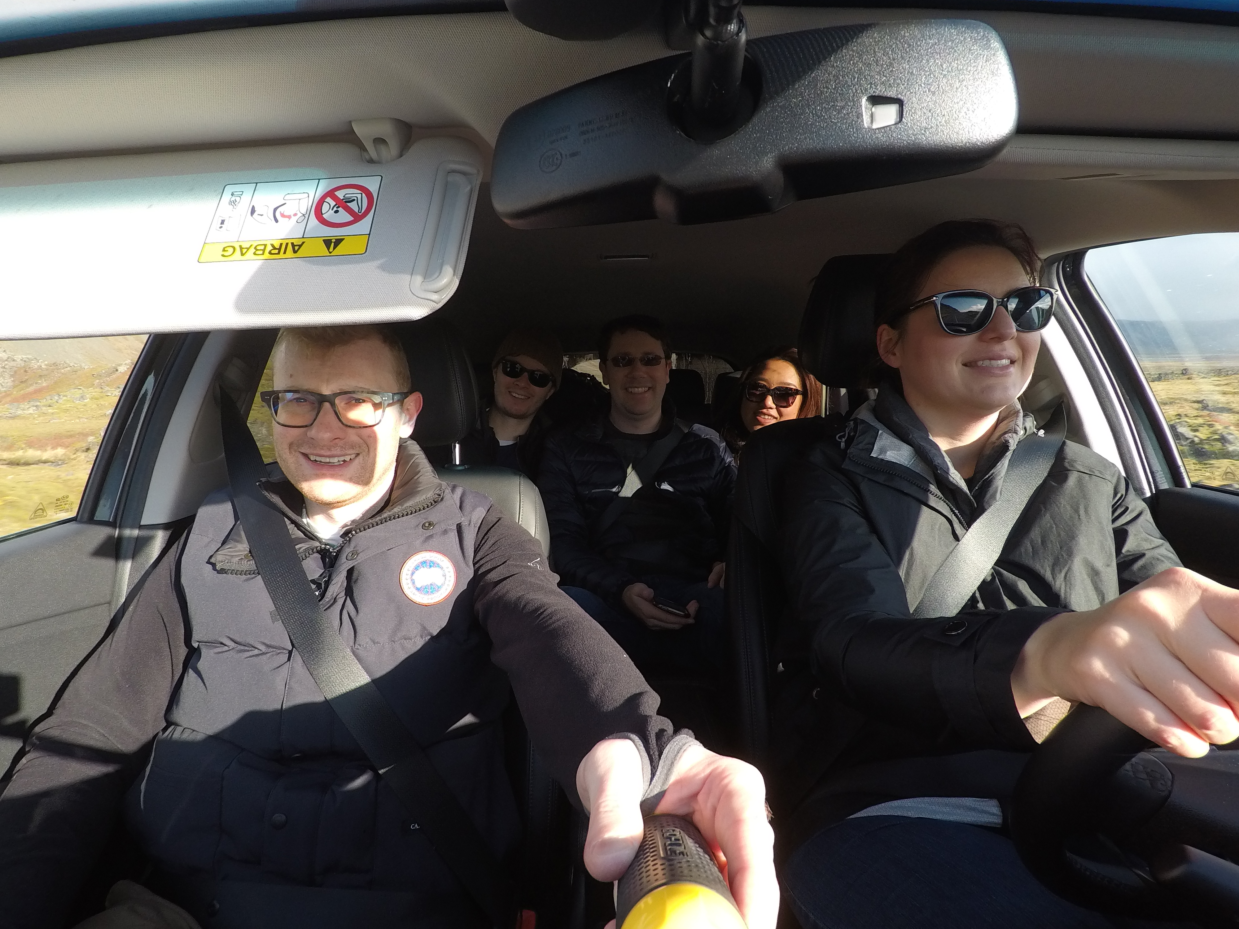 The drive went well, unfortunately there wasn’t much to report. We saw a fair bit of the northern part of the island, and it felt a lot like driving in Alberta. We saw a lot of cows being farmed while driving in the morning; sheep farming appeared to be much less common here than in the south. There was a lot of brown, flowing grass, as compared to the mossy green ground cover predominant in the south.Group selfie in the car