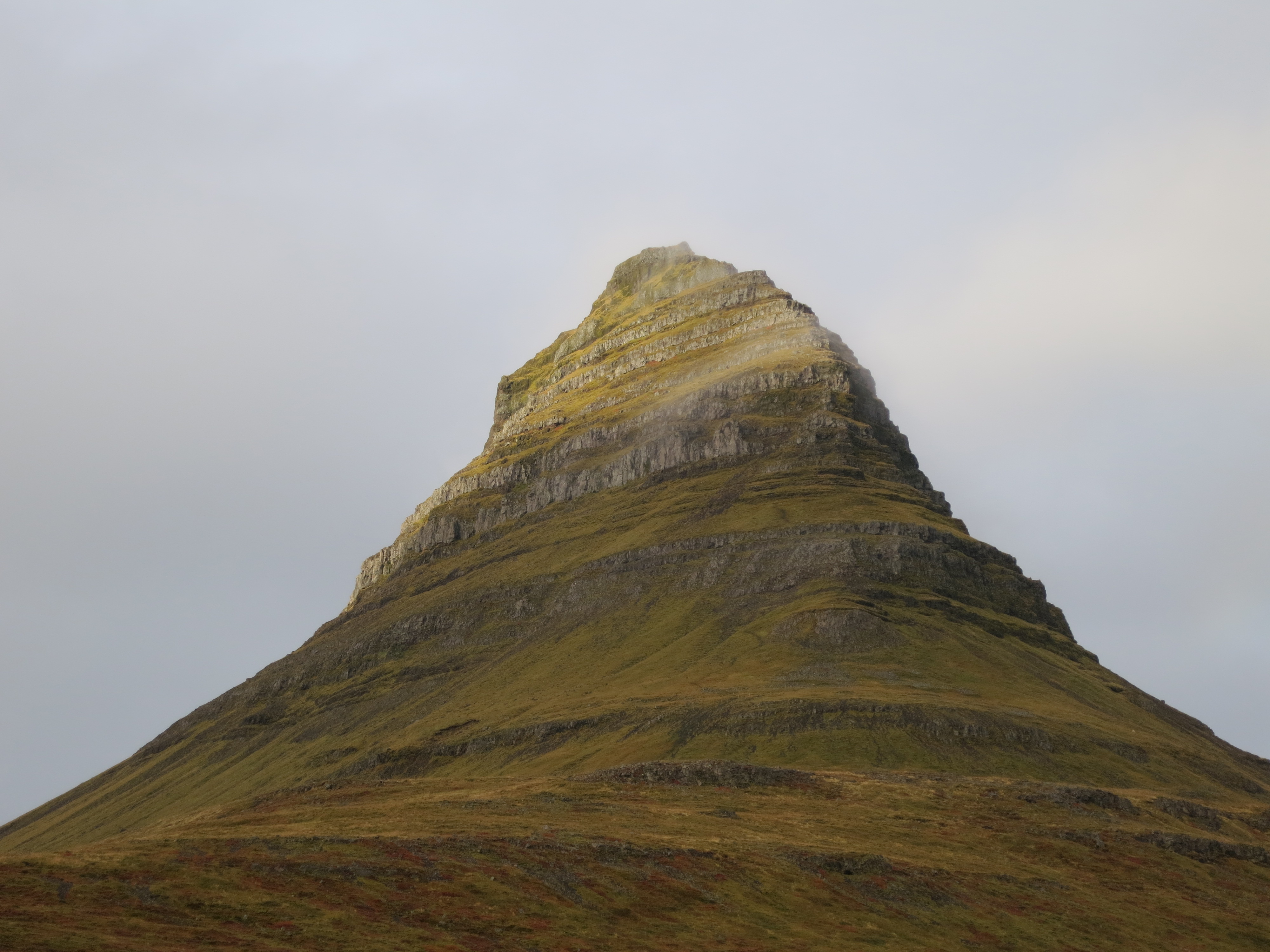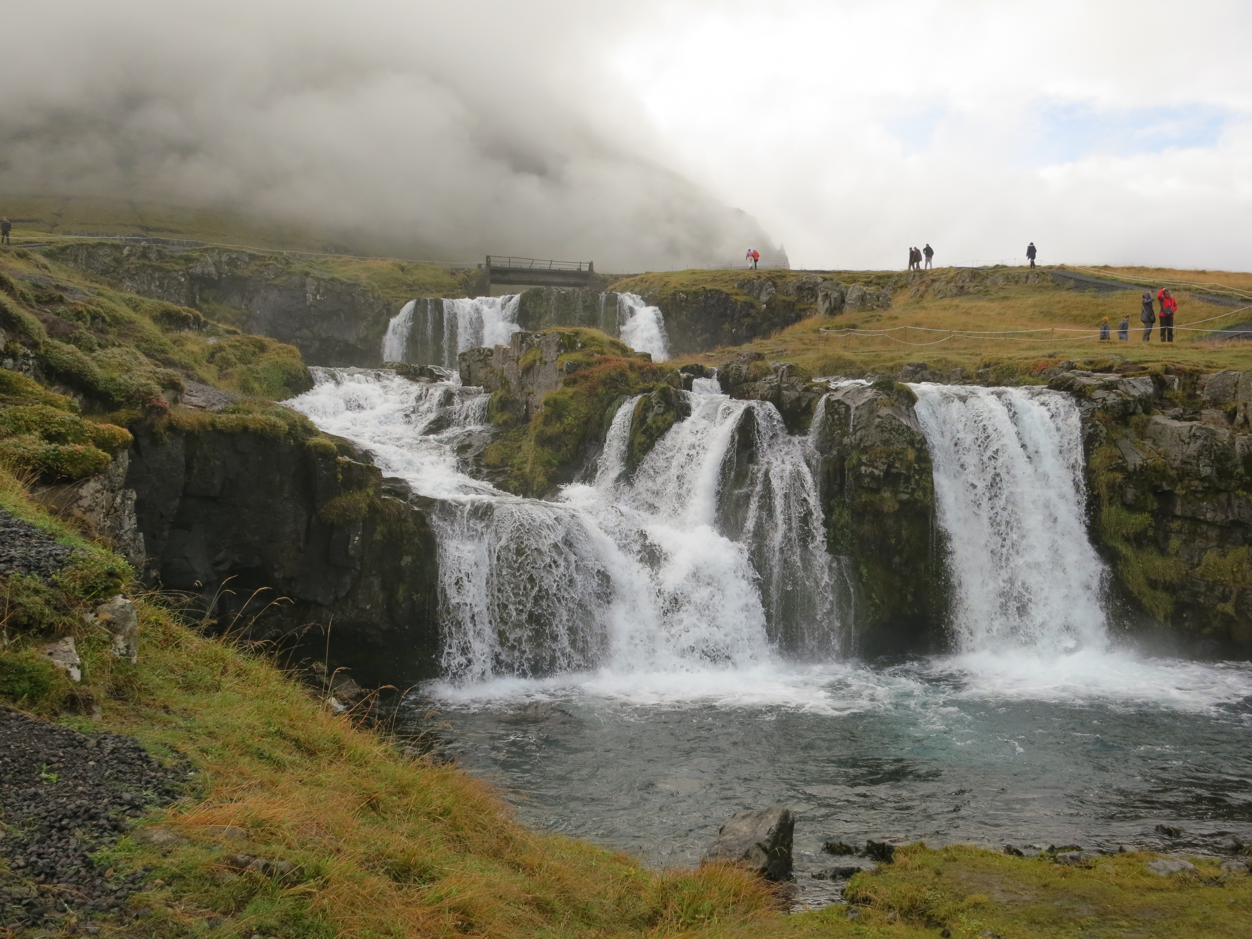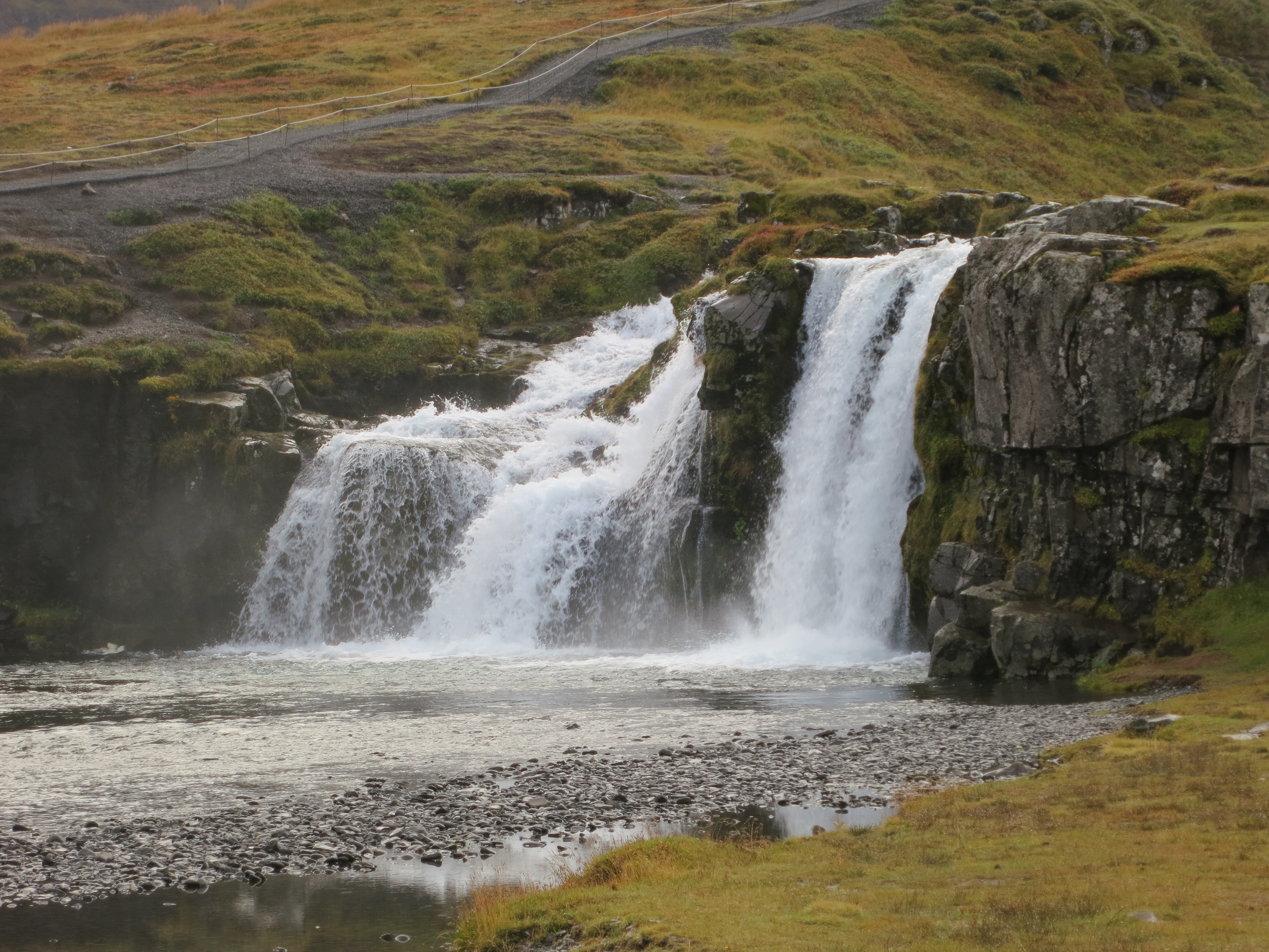 After we picked up something to drink, we got back into the car for the short drive over to Kirkjufellsfoss. Here we were greeted with the view of the imposing Kirkjufell, a mountain rising up between the road and the ocean. This particular mountain is somewhat famous in that it appears in the later seasons of Game of Thrones as the ‘arrowhead mountain’ located north of the wall. We took a few photos of the mountain, then turned around to see Kirkjufellsfoss. It is a two-tier waterfall, with a small island located on the small part of the river between the two sets of falls. We walked up and around the waterfall; there is a bridge that crosses the river just before the beginning of the waterfall which gives you a great view downstream of the falls. We took several photos, then got back into the car and continued on.Kirkjufell