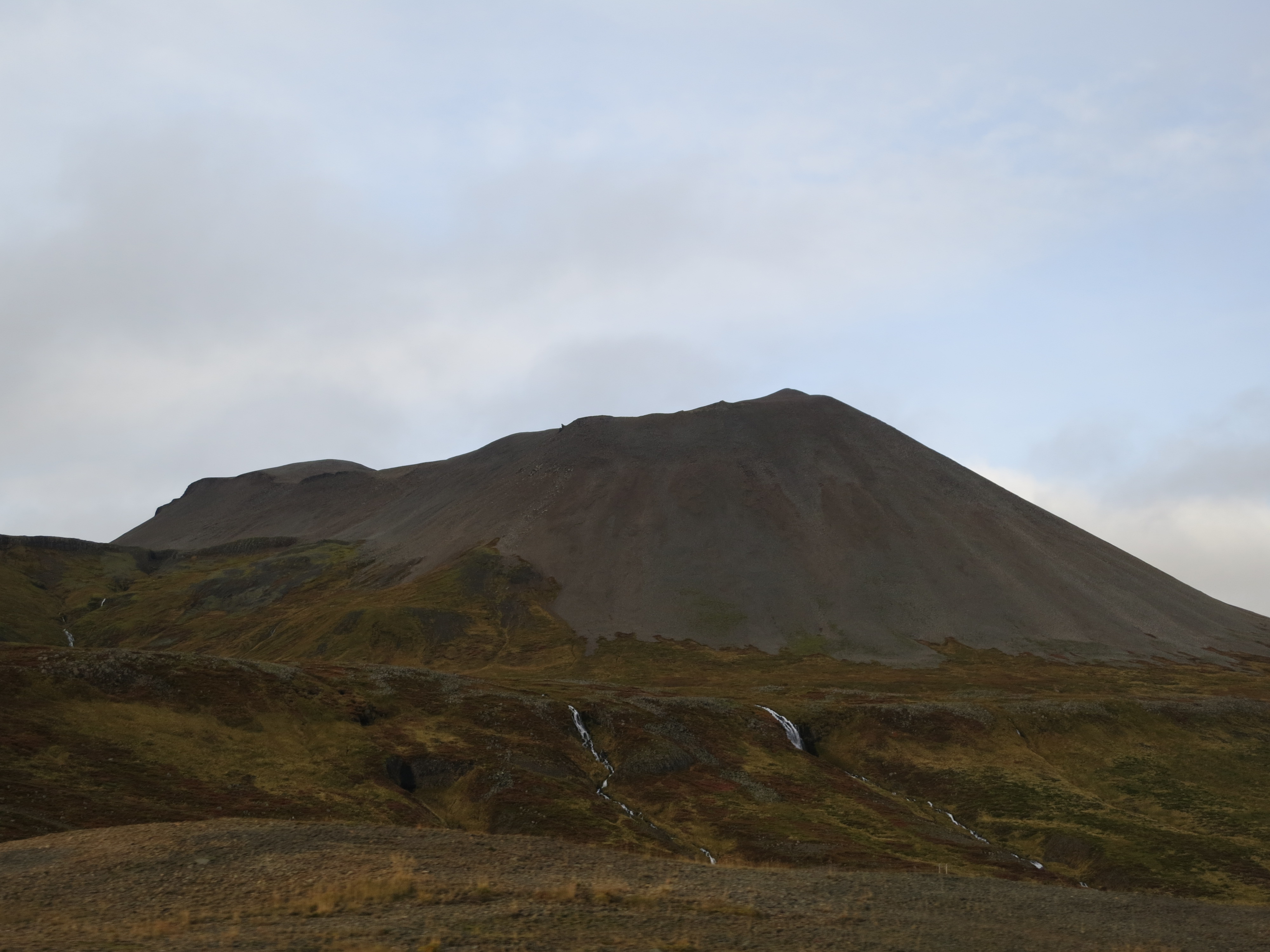 We stopped for lunch at a gas station in Búðardalur after about 3.5 hours of driving. Our lunch was simple - sandwiches that we had picked up in the grocery store in Akureyri. Susan bought some fish jerky in the gas station after lunch - she had been eyeing it up all trip and was curious about the taste. I gave it a try; it wasn’t bad, a fishy flavour that was very dry. The taste was reminiscent of the smell of fish food. After lunch we got back into the car and switched drivers; I gave Dave the keys and I went into the back seat. I spent the next hour or so updating this journal, then enjoying the views.
