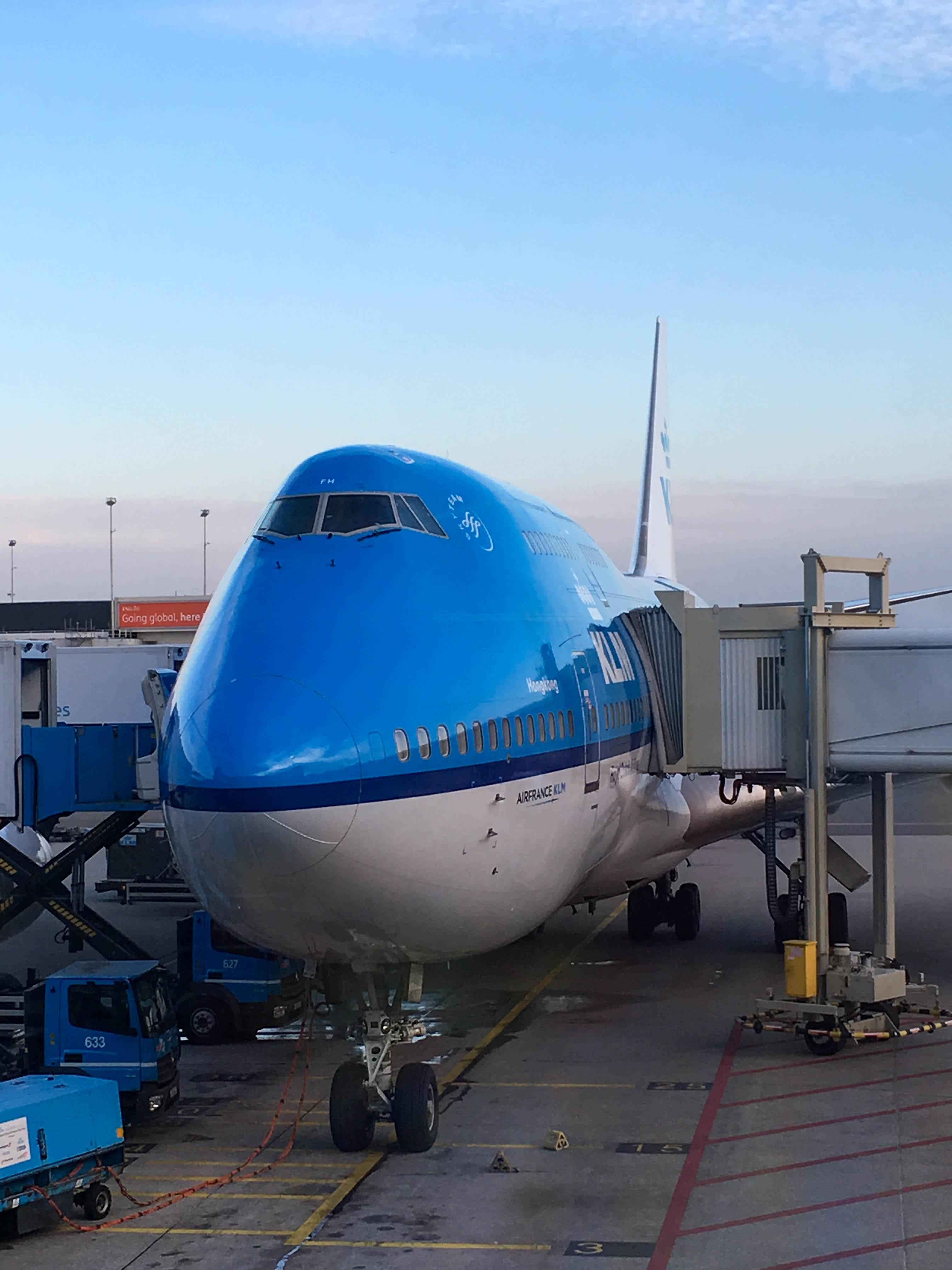 The trip to South Africa began in the early afternoon on Wednesday, June 13, 2018. Our first flight, KLM 692, was scheduled to depart from Pearson at 5:15 PM, so we had the car packed and departed from Kitchener shortly before 1 PM. Traffic was a breeze, and we arrived at the Park N’ Fly Self-Park lot shortly before 2 PM. We had checked in online the afternoon before, however we still had to get into line to check our bags at the KLM drop-off point in Terminal 3. The line moved quickly, and after clearing security we had about 2 hours before our flight was scheduled to begin boarding. We walked around the secured area in Terminal 3 for about an hour, then had a quick lunch at Smash Burger before walking back to our gate. We chatted while waiting for boarding to begin, and once people began lining up shortly after 4 PM we got into line. We were in Zone 5 and thus were amongst the last to board, however there was tons of space in the overhead bins when we got to our seats so we did not need to squish our backpacks underneath the seats in front of us. Our plane, named City of Hongkong, was a 747-400. Our seats were right over the wing on the left side of the plane, and while they were not large there was still enough leg room that we didn’t feel squished. We ended up taking off shortly before 6 PM - the plane had to queue prior to take off and so our departure was slightly delayed. Once in the air I watched the second Kingsman film then spent the remainder of the flight getting some sleep. Todd watched Game Night, Ladybird, and then 3 Billboards outside Ebbing Missouri. We made up the delay in the air and landed shortly ahead of schedule at Schiphol International Airport in Amsterdam shortly after 6:00 local time.