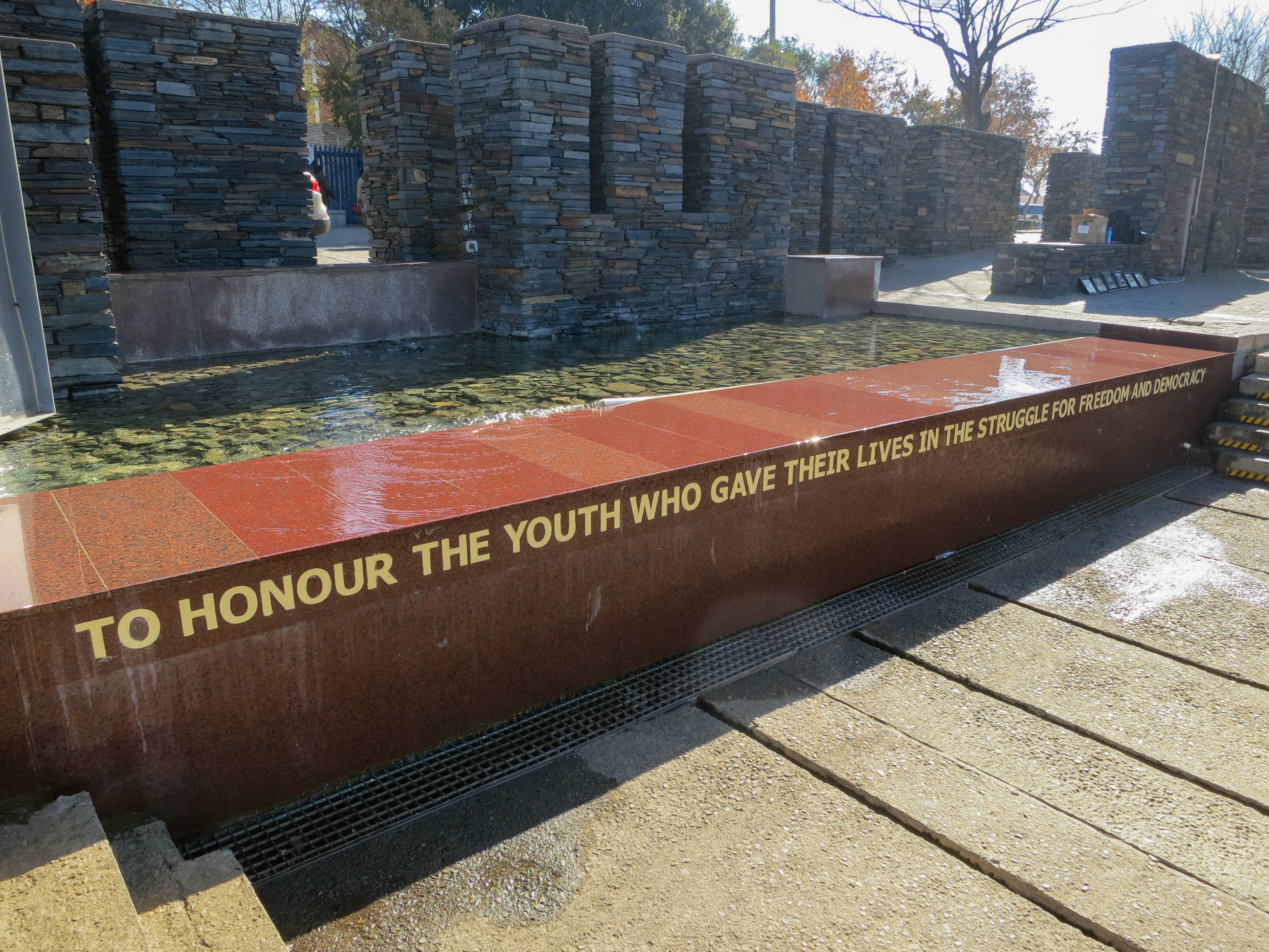 A memorial fountain in front of the Hector Pieterson Museum