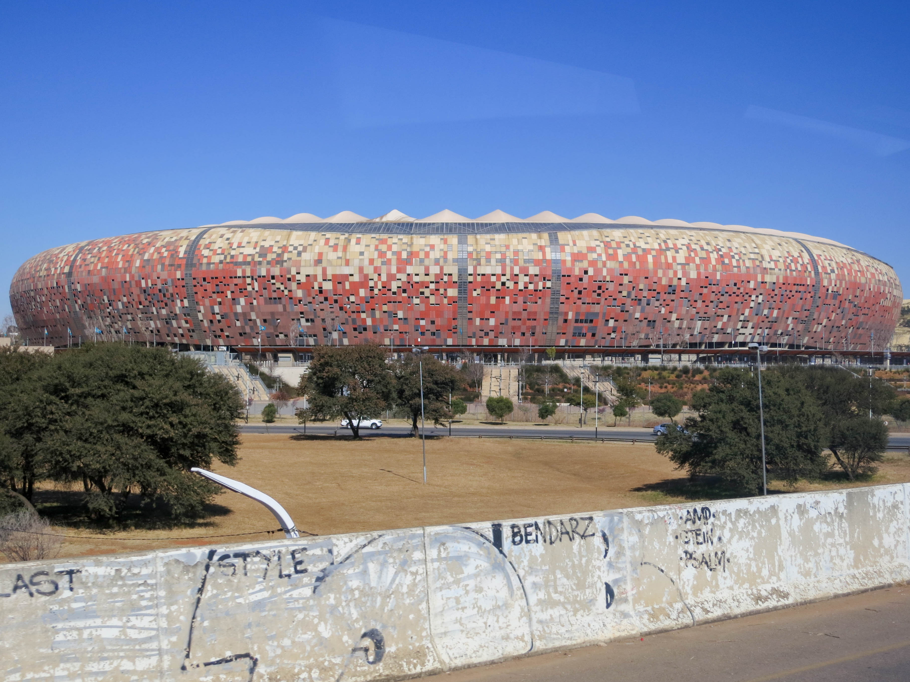 Our next stop was the Apartheid museum. The drive to the museum took us past the stadium that hosted the finals of the 2010 South Africa World Cup, as well as past some of the gold mining tailing piles.
