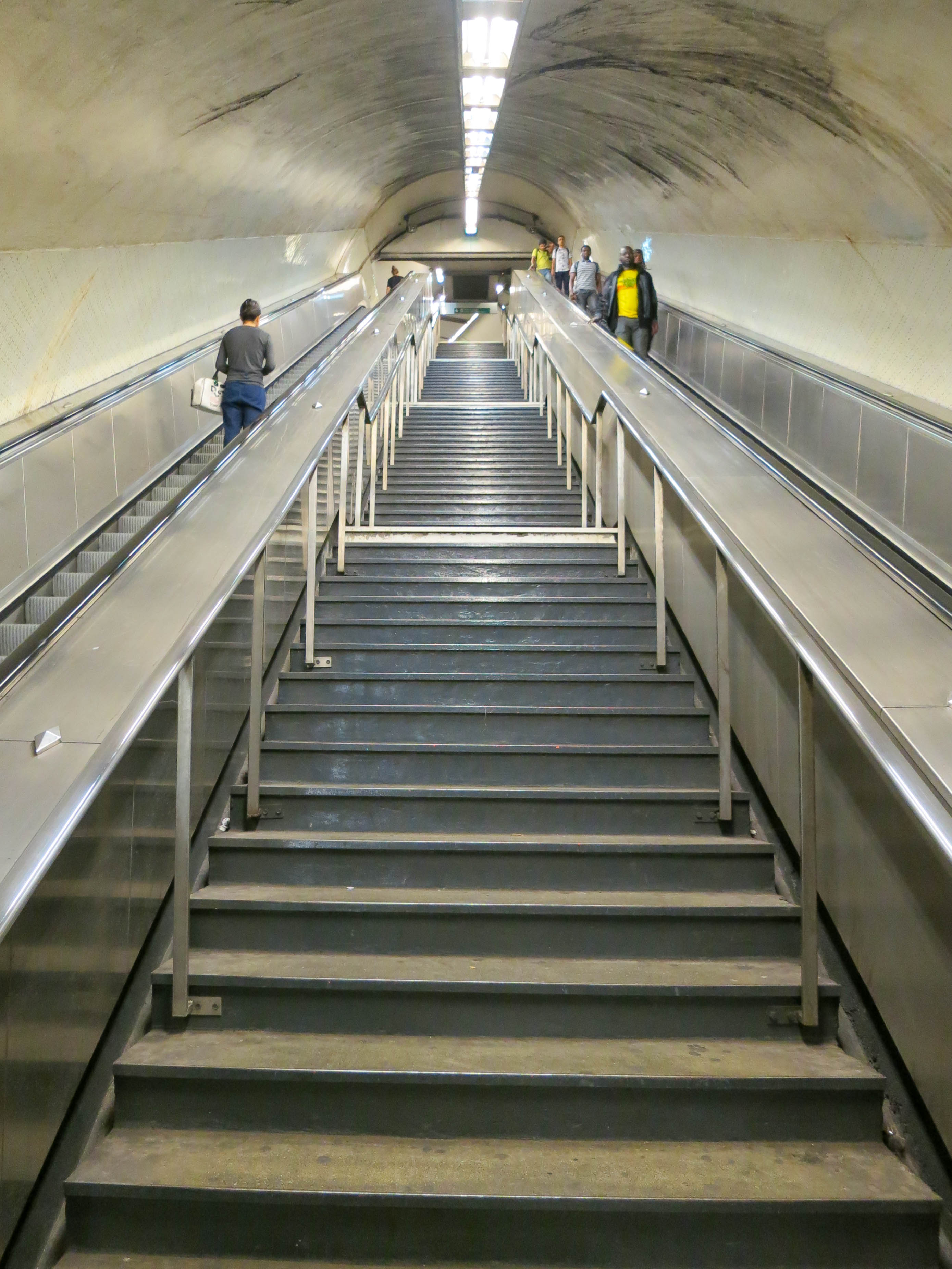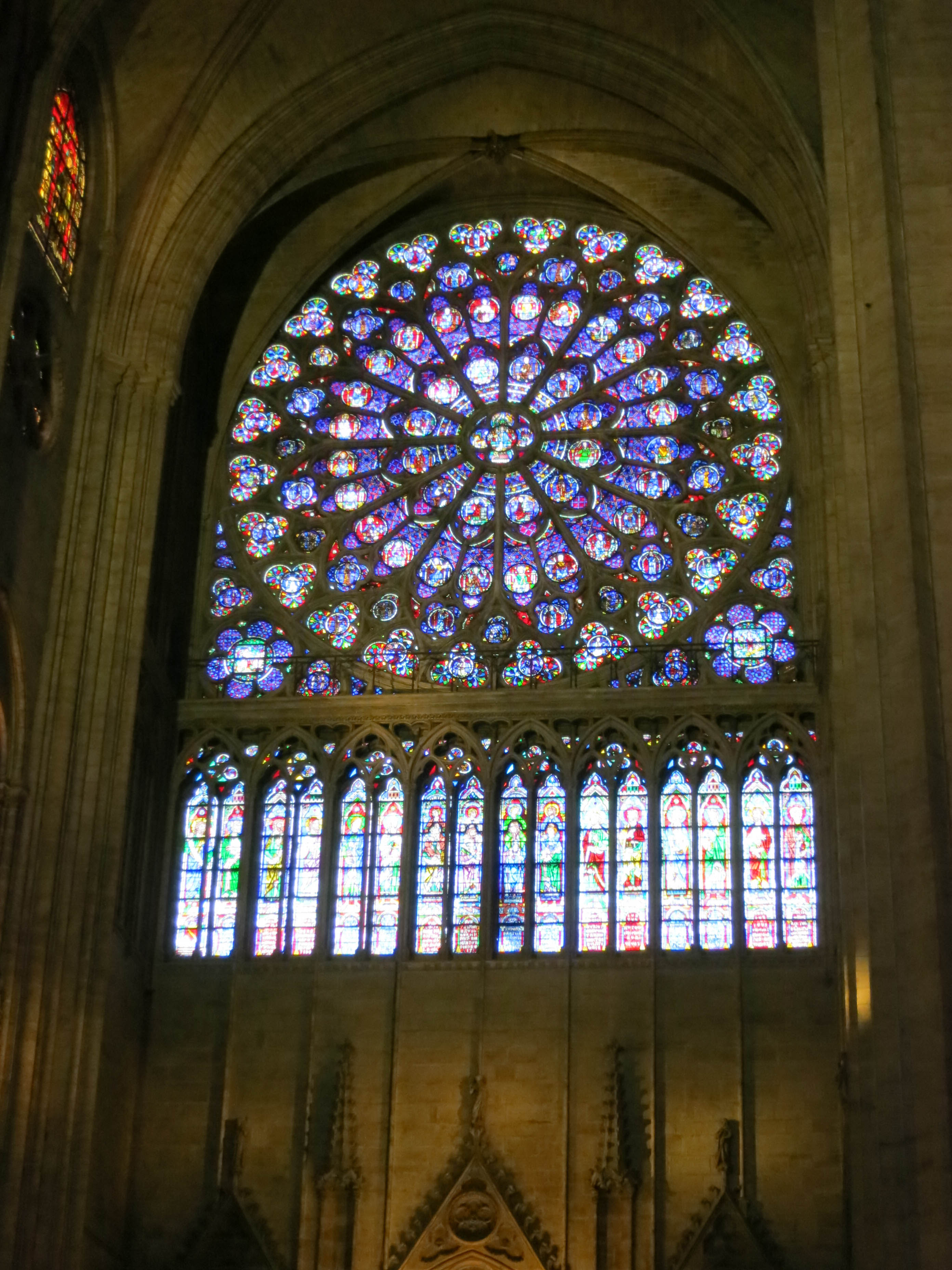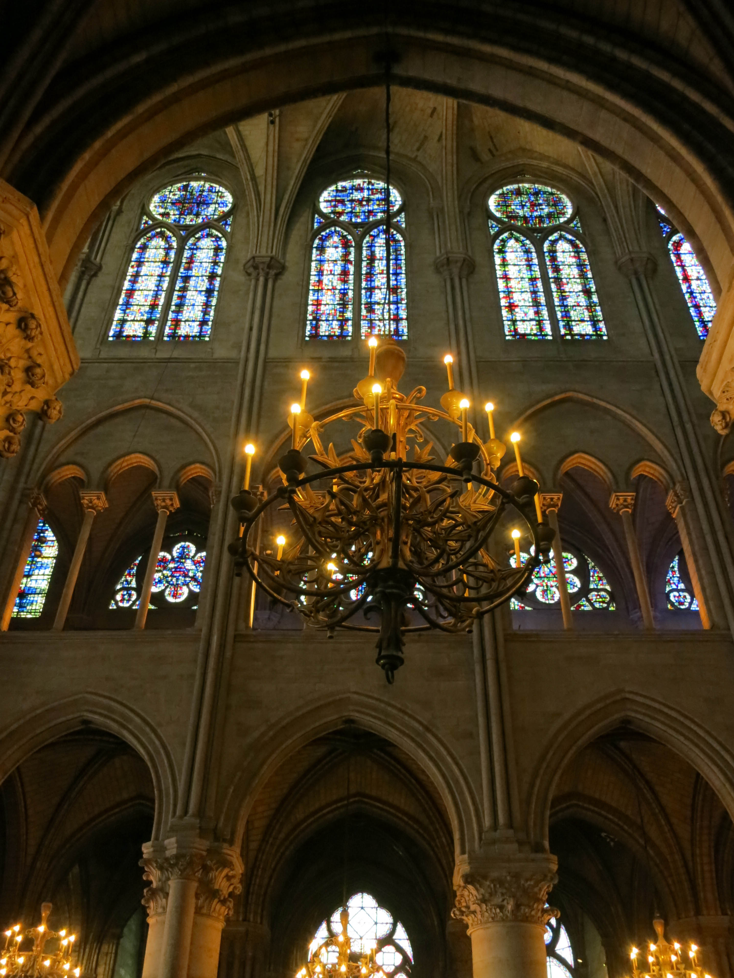 The tower didn’t open until 9:00, and we didn’t have time to go up, so instead we walked back to the Eiffel Tower station shortly before 9:00 and took the RER C back to the Notre Dame station. Here we got out and walked over to the Notre Dame basilica. We spent a few moments admiring the structure from the plaza out front, then walked into the building and did a loop through the inside of the basilica. The typical crowds of people had not yet showed up, which was nice as we didn’t feel crowded or rushed. We spent probably 20-30 minutes in the building, and shortly before 10:00 we walked back to the Notre Dame station and got back onto the RER B headed towards CDG. We were lucky and got onto an express train; we were back in the airport at 10:45. We reclaimed the glass vase we had left with the baggage storage service, the walked back to Terminal 2E. It was a bit confusing to find the security line, as the baggage check area for Air France was super full, but we got through immigration and security without an issue and got to our gate about 2 hours before departure.