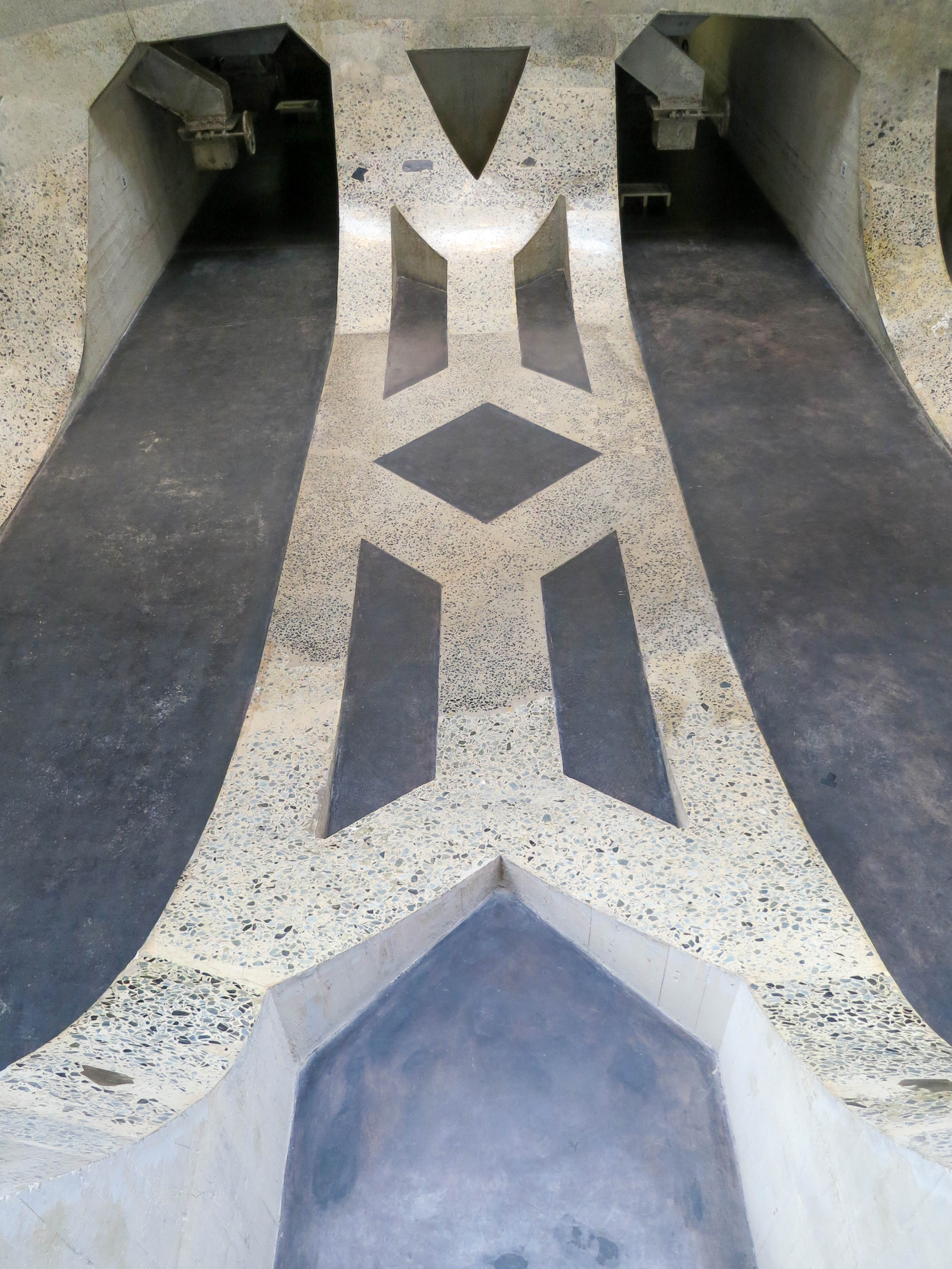 Looking down on the internals of the silos. The entrance is at the top of the photo.