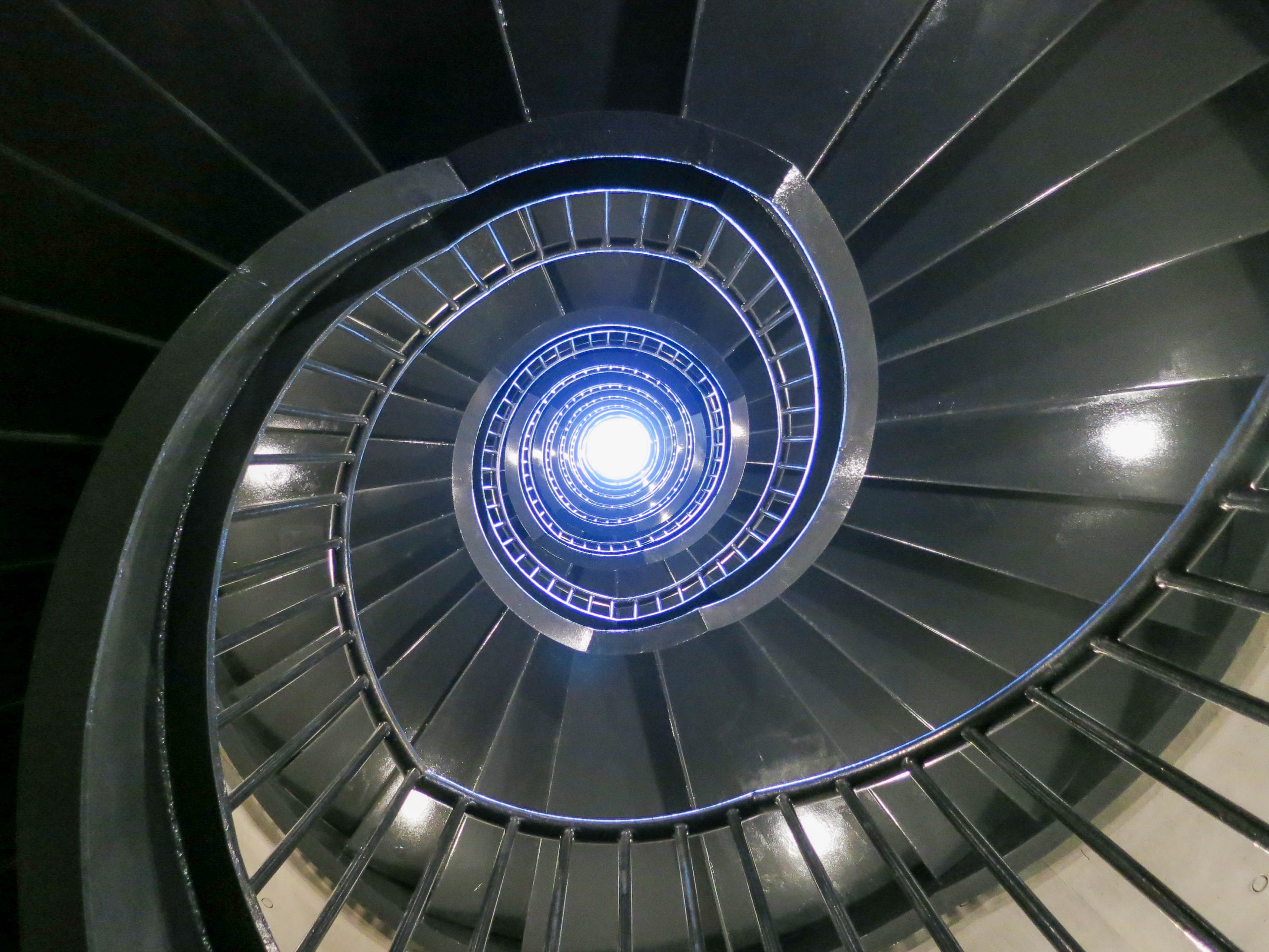 Spiral staircases fit precisely into the old silos