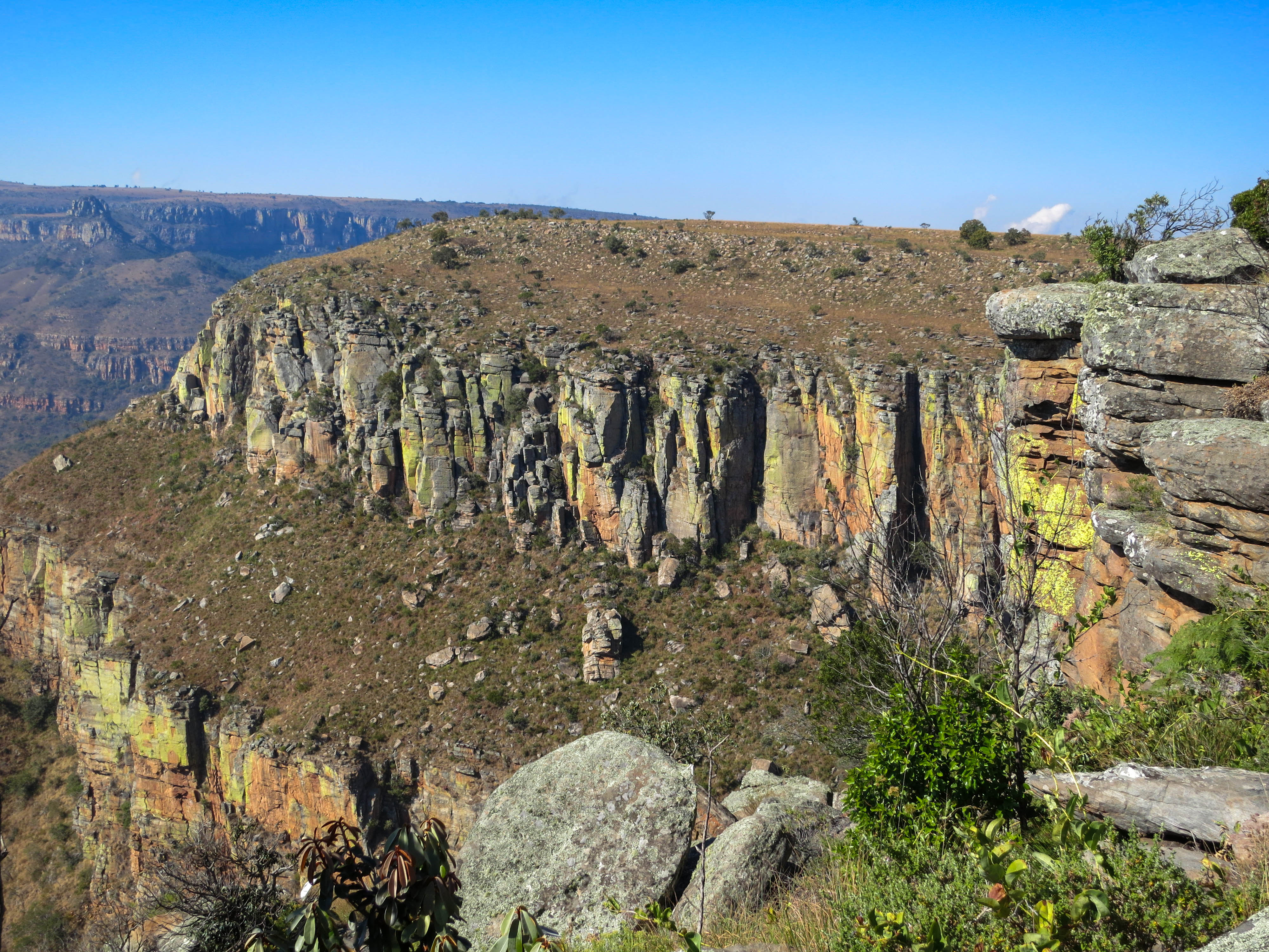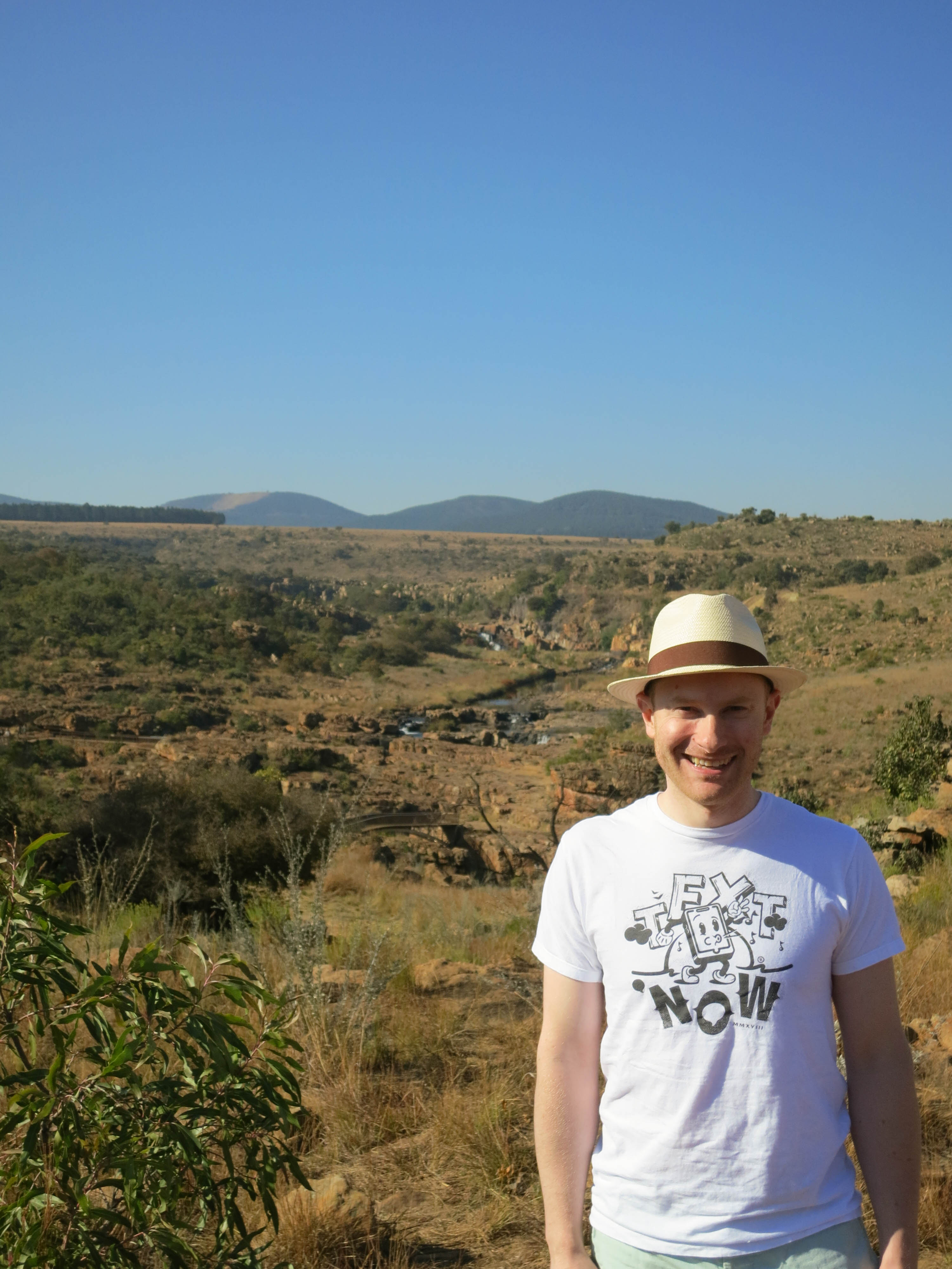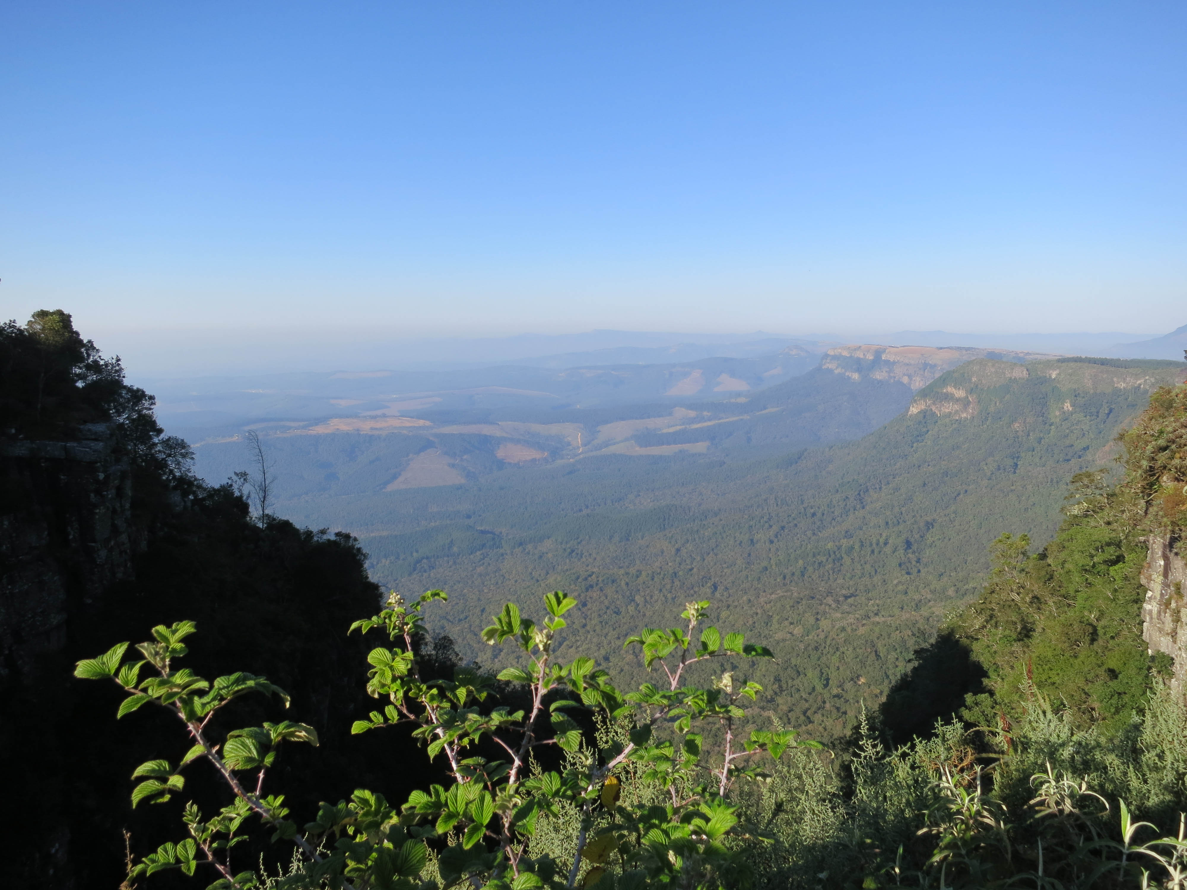 We left Hazyview and settled into the bus. I continued reading “Death’s End” while Todd started reading a James Patterson novel. It was about an hour drive to our first destination - a lookout point named God’s Canyon. This viewpoint looks out over the Drakensberg escarpment. It was slightly hazy when we arrived but we were still able to see the gorgeous panorama of the valley below. This stop was a quick one, and about fifteen minutes later we were back on the road.