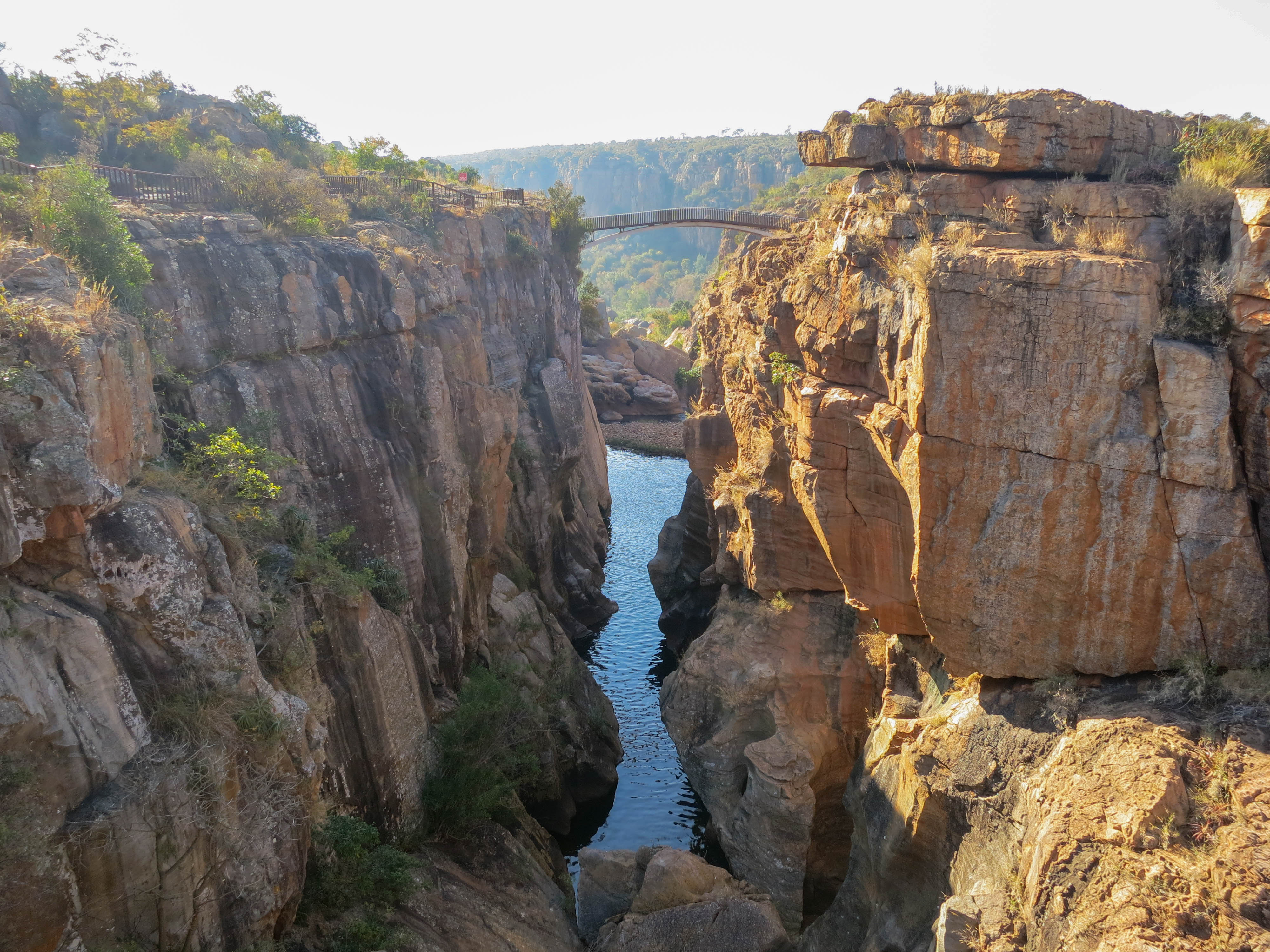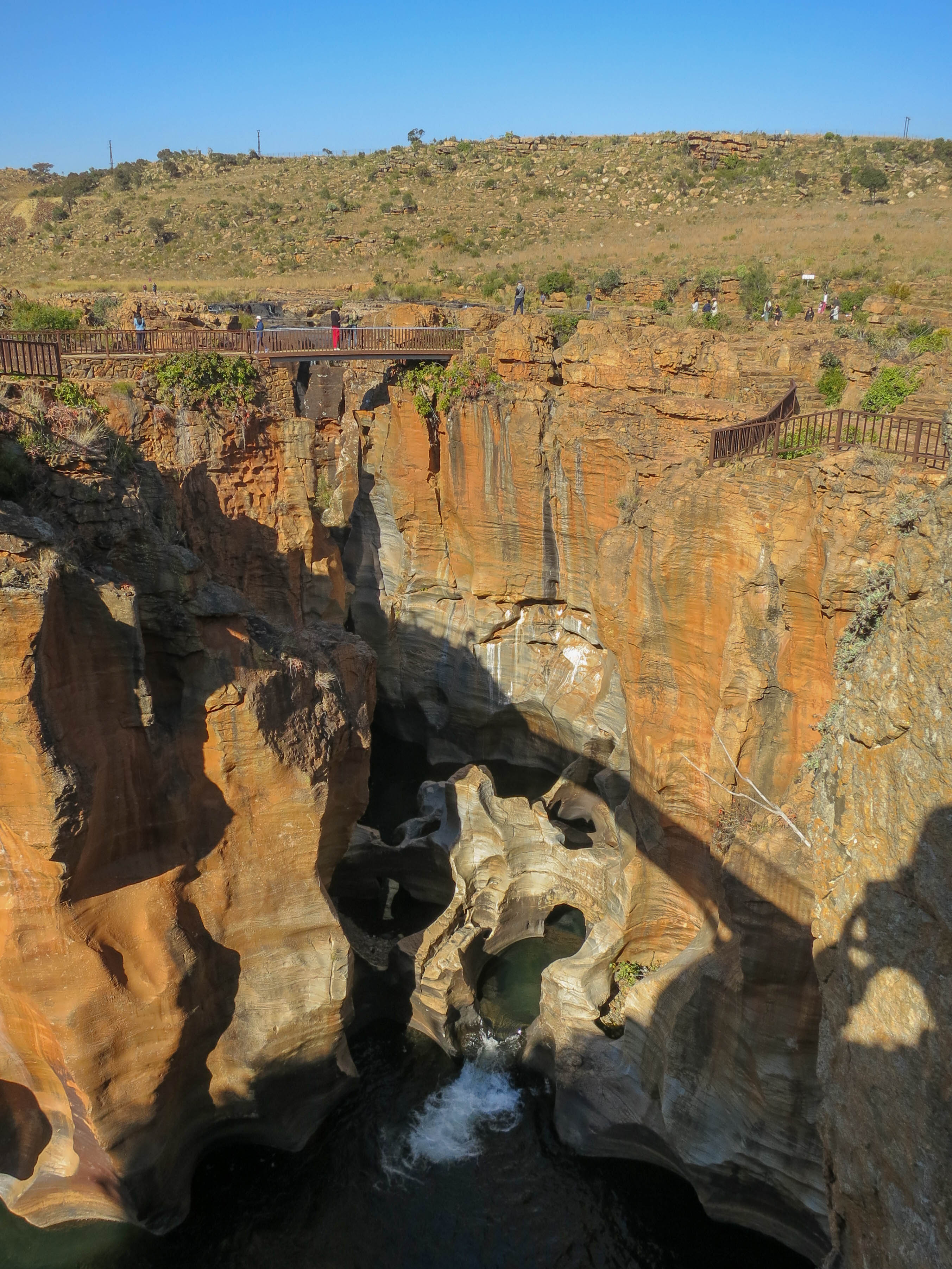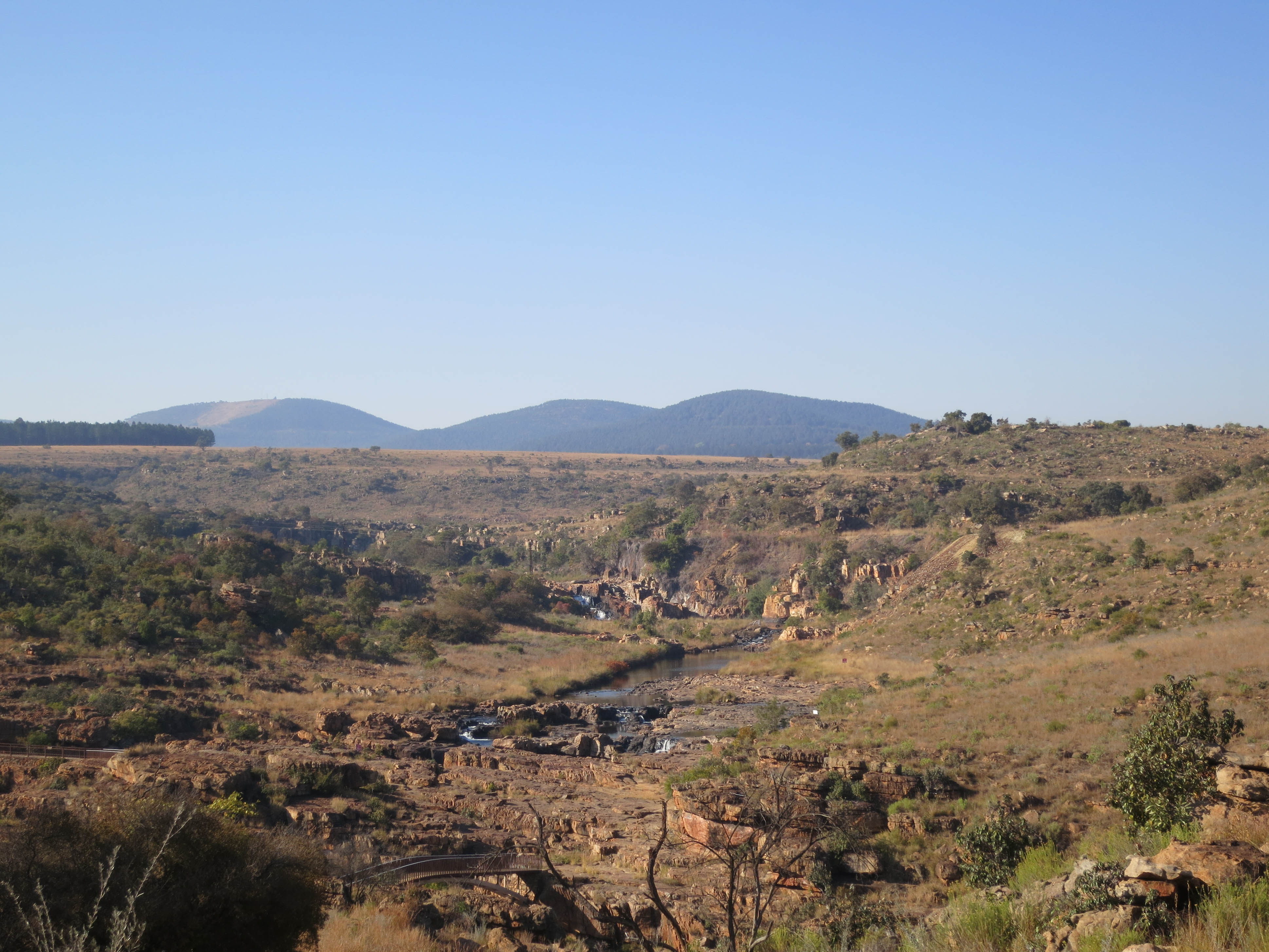 Our next stop was at the Bourke’s Luck Potholes in the Blyde river canyon. It was about a half hour past God’s Canyon, and the scenery on the drive was fantastic so we spent the drive watching the countryside roll by. Once we arrived at the Potholes we learned that we had an hour to explore the area. We started by walking down to the river and then explored around. The potholes are named after to the shapes left in the rock as the Blyde river cut its way through this canyon millions of years ago - it reminded me of the inkpots in Johnson’s Canyon in Banff. We were able to explore the riverbed upstream of the first waterfall; we were also able to use a series of interconnected walkways and bridges in order to get a great view of the canyon itself. The sun had come out and it was starting to heat up as we walked around, and it was an all around great stop.