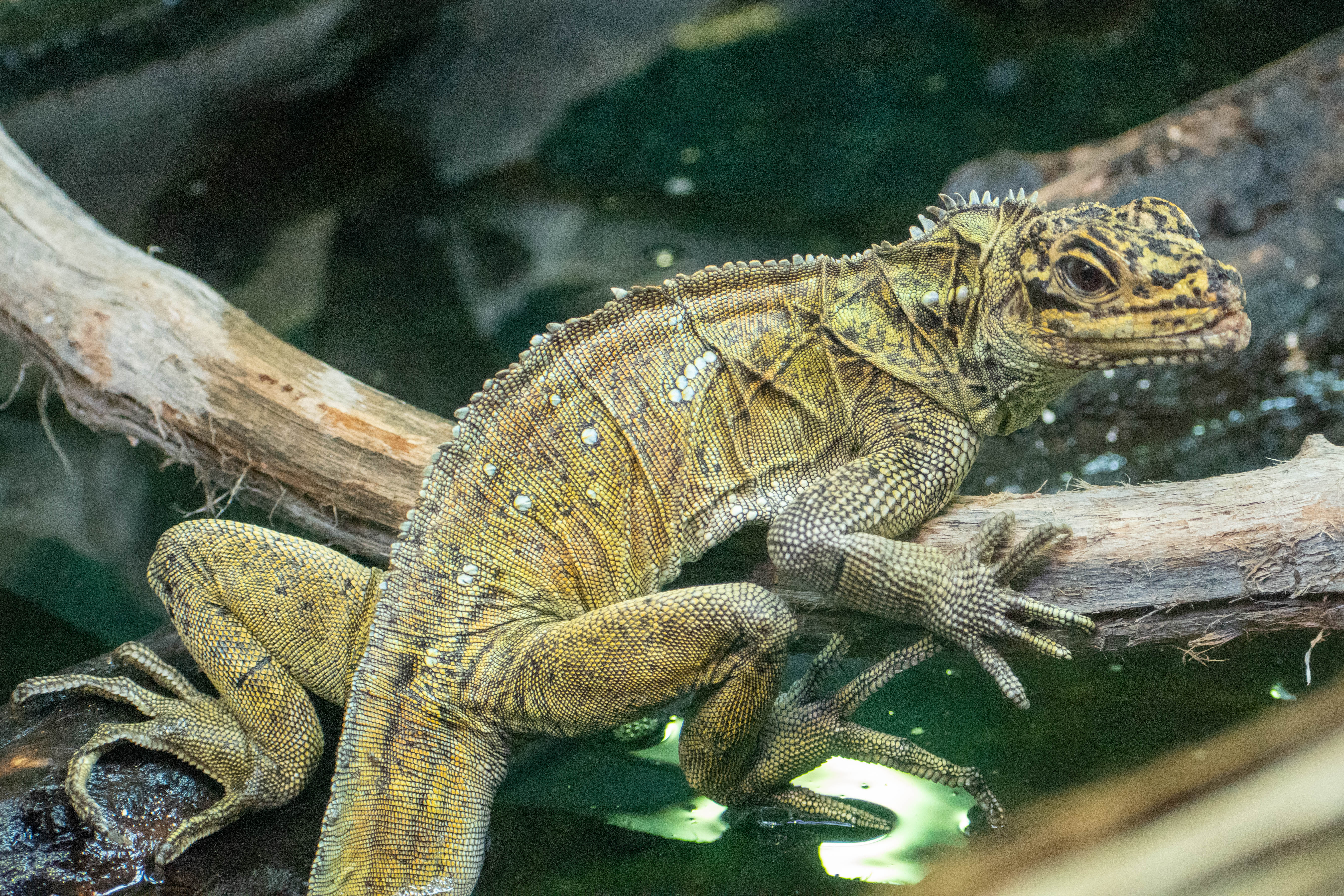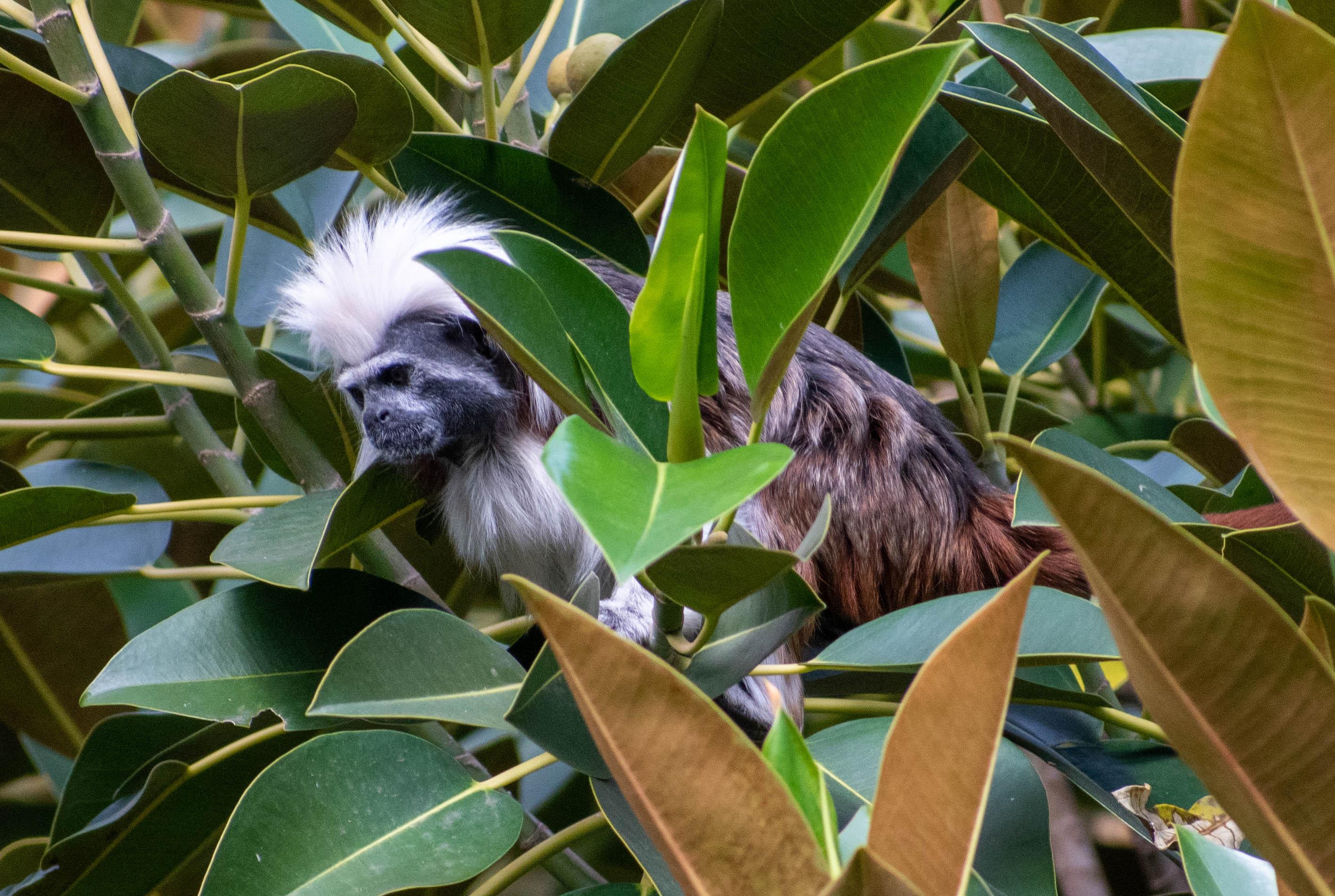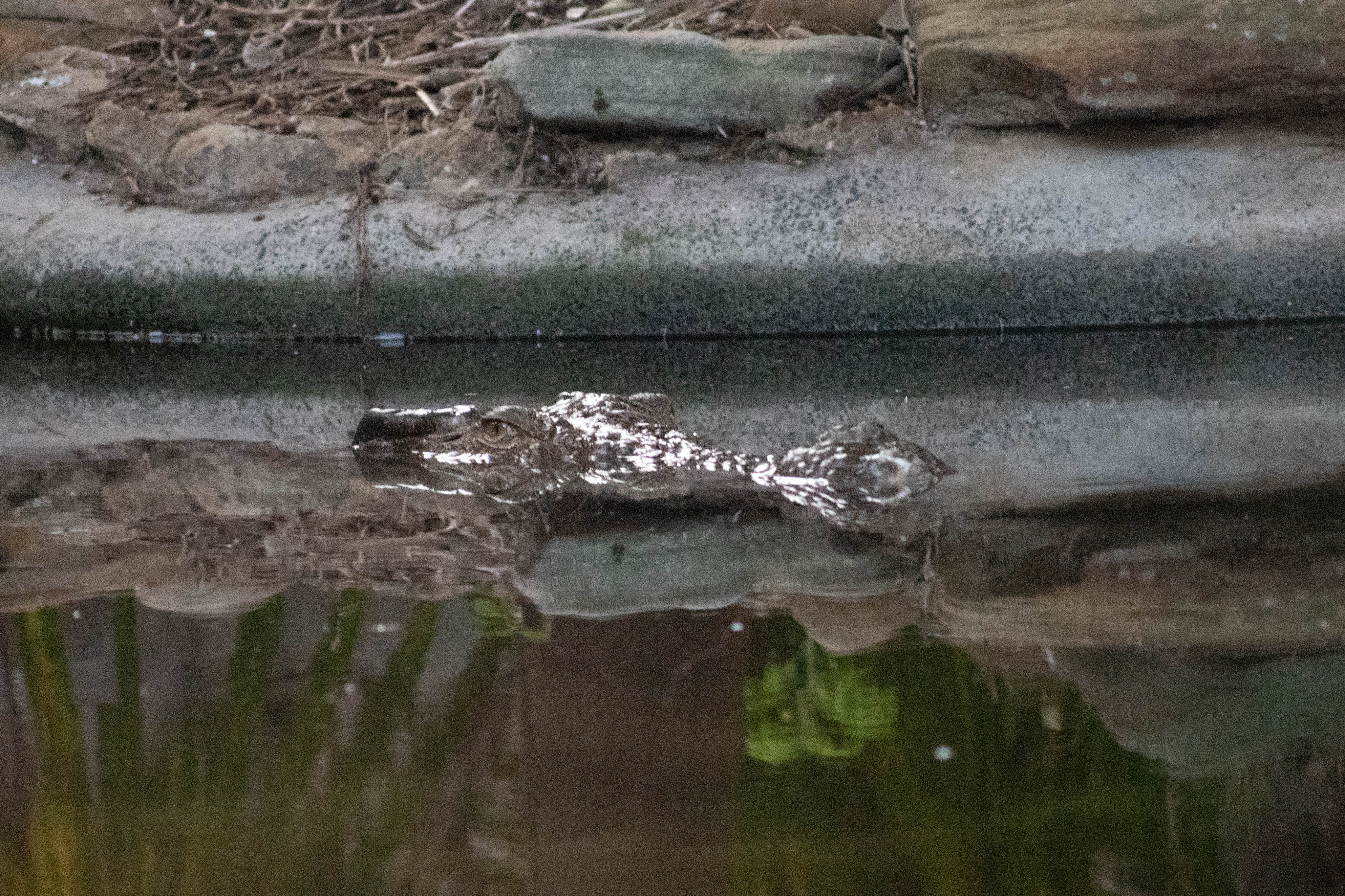 We continued on from the giraffes and visited the meerkat enclosure. There were a number of meerkats living together, and due to the cooler weather a number of them were huddled together underneath a heat lamp. There were a few adventurous meerkats who were out exploring and digging, which was nice to see. We continued on, passing back by the cassowaries in the hope that they were more visible. While they were no longer preening they had moved farther back into the enclosure, which made seeing them even more difficult than before. We continued on to an enclosure containing tamarins, and then passed by the saltwater crocodile enclosure. We were able to see one saltwater crocodile calmly resting in the water, just the eyes and the top of its snout visible. We passed by another aviary (this one did not allow entrance) that held some large parrots. We then passed on by the gorilla enclosure, unfortunately we weren’t able to see any gorillas.