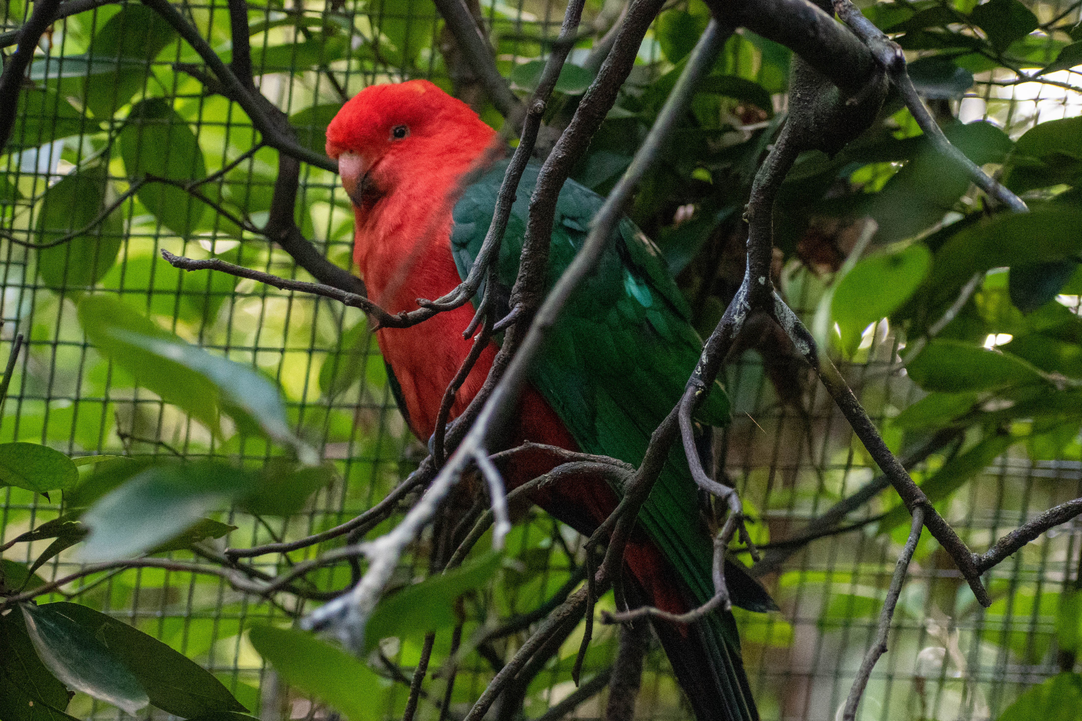 After leaving the reptile buildings we passed back by the freshwater crocodile enclosure, where we saw one of them chilling on the bottom of the pond. It wasn’t terribly active, so after a quick glance we moved on to the bush birds section. Here there were four enclosures full of birds native to Australia that are typically found in the Outback. There were a number of very colourful birds that we saw, and we spent a fair bit of time watching them fly around. I was able to get a number of good photos with my zoom lens - it was able to focus on the birds instead of on the enclosure fencing, which led to some great photos.