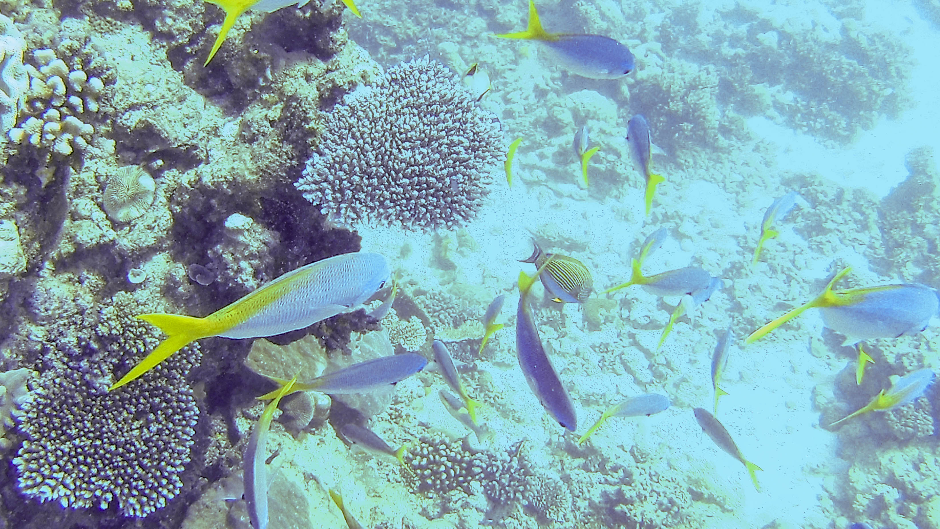 We returned from our second dive shortly before 10:00, and because the next briefing was scheduled for 10:30 we didn’t do anything but go up to the second story of the boat and wait for everyone to arrive. The briefing for the final dive was pretty straightforward; we were going to be turning left instead of right after reaching the anchor blocks and then playing in the bommies until we ran out of air. We geared up, did our checks, and then jumped in the water at about 10:45 for our final dive of the trip. This was a fun dive - we swam along the ocean floor until we reached a sandy slope nicknamed the ‘Ski Slope’, then turned back and weaved in between the bommies around the reef. This actually ended up being our longest dive time; since the bommies were in reasonably shallow water we didn’t go through air as quickly and were able to stay down for almost 40 minutes. We saw some barracudas while we were swimming out to the ski slope, as well as some unicorn fish in the reef, several variants of the butterfly fish, and some other gigantic fish whose name we couldn’t determine. We were out of the water just before 11:30, and then took apart our gear, rinsed everything off, and took our equipment up to the top deck to dry.