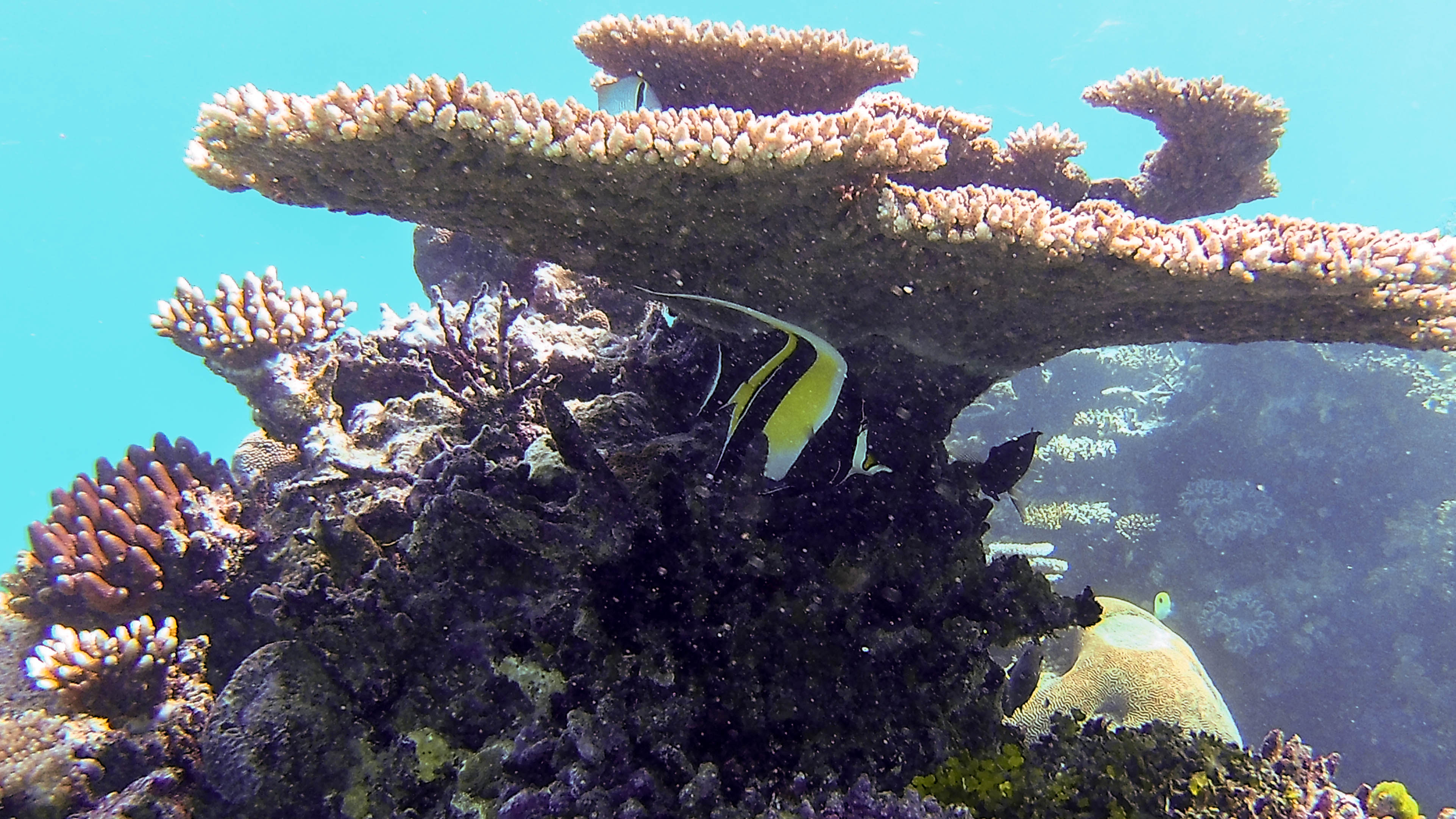 Our final day on the Great Barrier Reef, like many of our days on this trip, began early. Our first dive, on Flynn reef at a dive site named Little Tracy, was a dawn dive. We woke up at 5:45, had our dive briefing at 6:00, and after getting suited up and completing our buddy checks jumped into the water right at 6:30. The sun was starting to rise as we began descending. The dive site was adjacent to the Gordon’s mooring dive from yesterday; we swam from the anchor to a bommie named Little Tracy that we circled. The dive plan was pretty straightforward, but it gave us some pretty neat views. As we were swimming from the anchor to Little Tracy we encountered a small coral outcropping that had close to thirty large bumphead parrotfish that were just sitting there, chilling in a tight group. It was a fantastic thing to see as we started the day. Once we reached Little Tracy we swam clockwise around the coral, encountering several razorfish, a few moorish idols, and some surf parrotfish. There were obviously many other fish we saw; those were just the ones I could identify. We completed the loop of Little Tracy with about 90 bar remaining; we swam back to the gates from the previous day’s dive and did our safety stop on top of the gates. We didn’t see any turtles, though once we were back on the boat we heard several people say they saw a turtle around the gates.