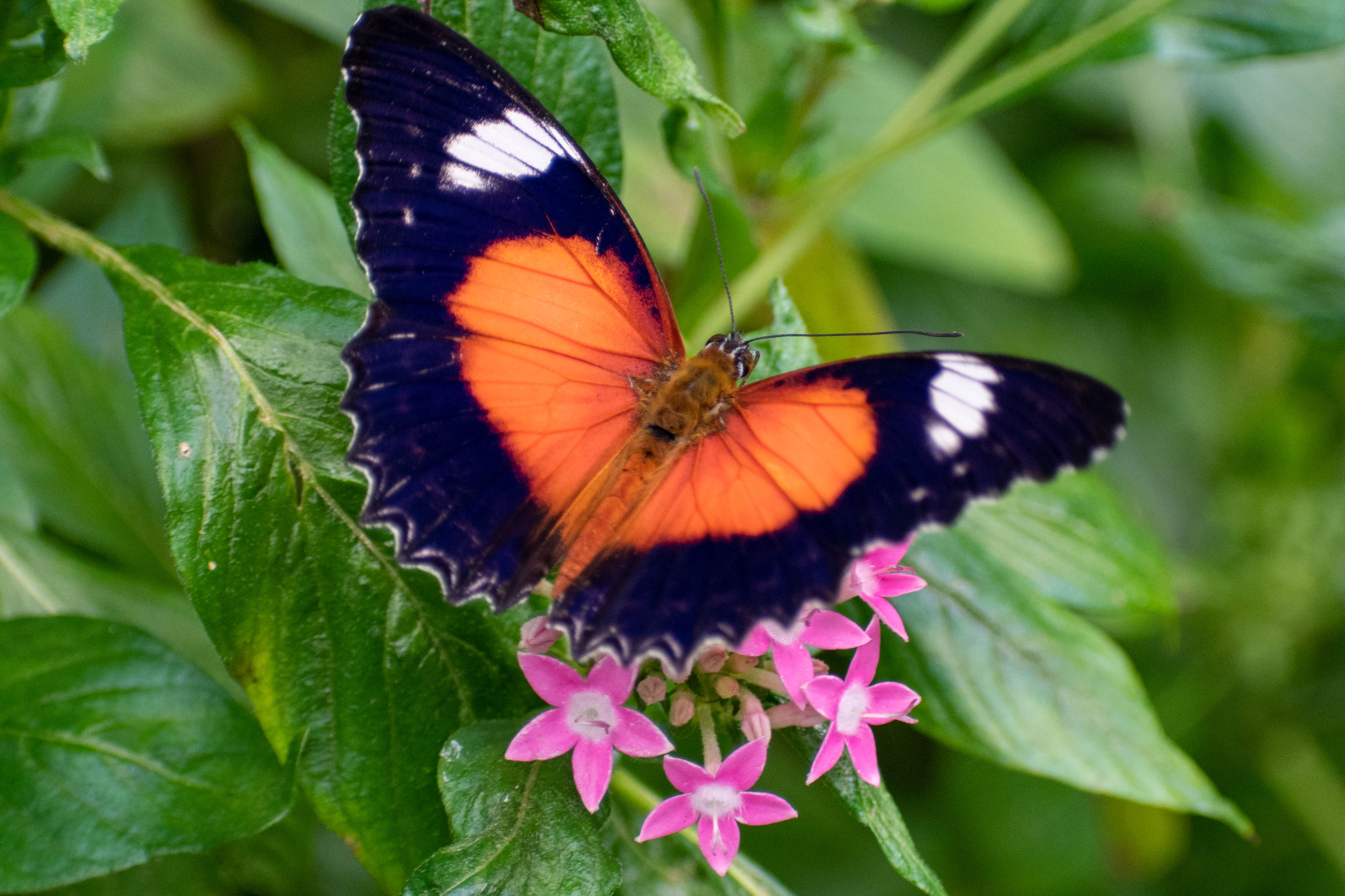 I honestly wasn’t sure what to expect, so my first emotion upon stepping into the aviary was awe. After clearing an ‘airlock-like’ pair of plastic curtains we found ourselves in a large, glass-enclosed building that was teeming with butterflies. I had been in butterfly conservatories before, the one I remember best was in the Calgary Zoo that I often went to as a child, but this building was in a completely different league. The aviary is basically a large greenhouse, with a pathway for visitors that snakes through the structure, avoiding large plants, some small ponds and having a few bridges that crossed the rivers running through the inside the building. The star attraction were the butterflies, however, and they were definitely the star of the show. There were thousands of butterflies in the space, and even though the building was large the density of butterflies made it feel small. It was impossible to miss them; within a minute of entering a butterfly had come and landed on my hat as I was taking a photo of a different butterfly. There were a number of different species, and a great mix of yellow, orange, black, blue, green and red colours could be seen fluttering through the sky and the leaves. There were a few staff members who were refilling nectar stations as we explored, and they provided us with some interesting tidbits of information as we passed by. We left the aviary for a brief period to visit the caterpillar breeding section and learn about the conservation work that they do, but overall spent almost the full hour exploring and watching these magnificent creatures fly and eat. While it wasn’t the first butterfly conservatory I’d visited, but without a doubt it was the best one.