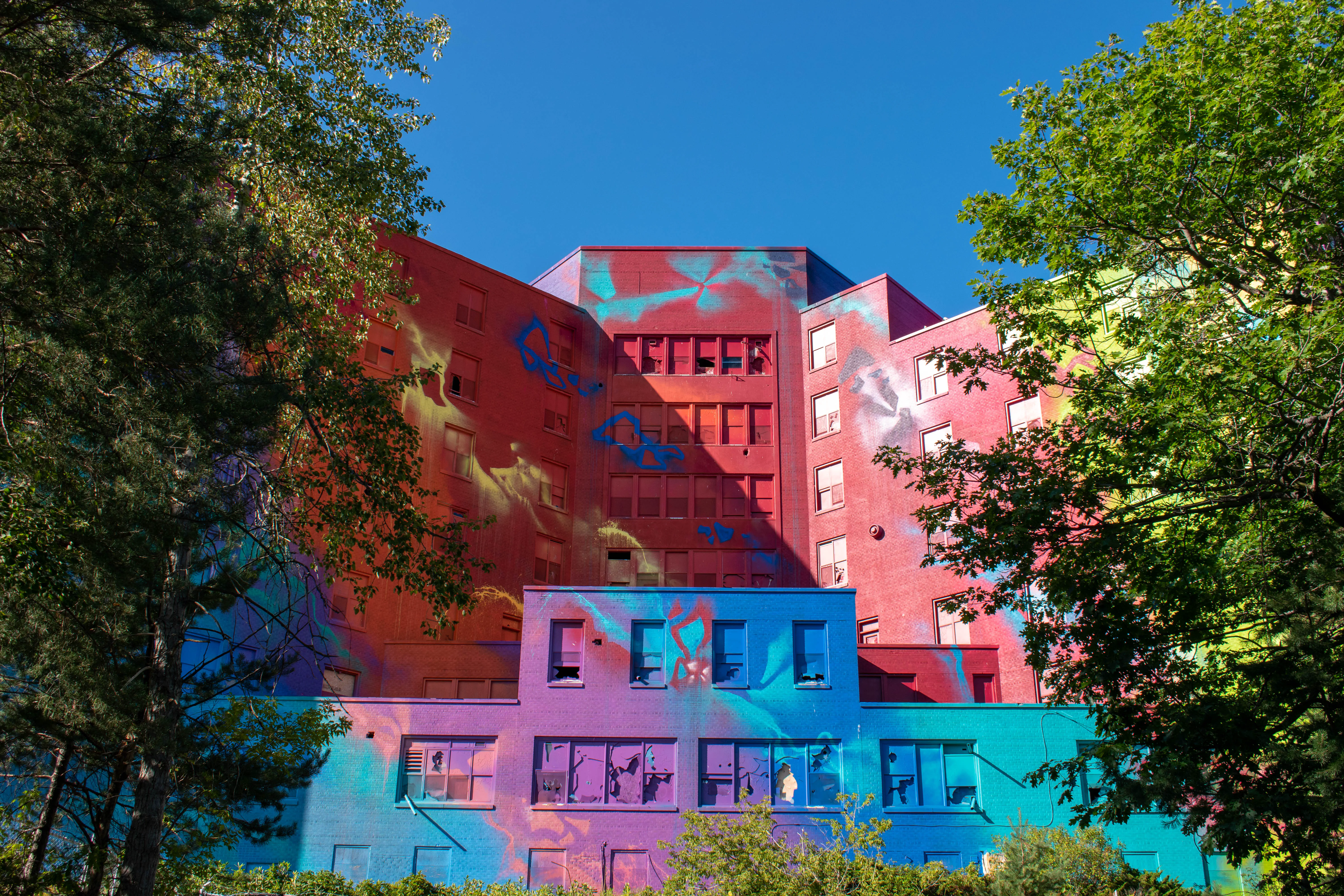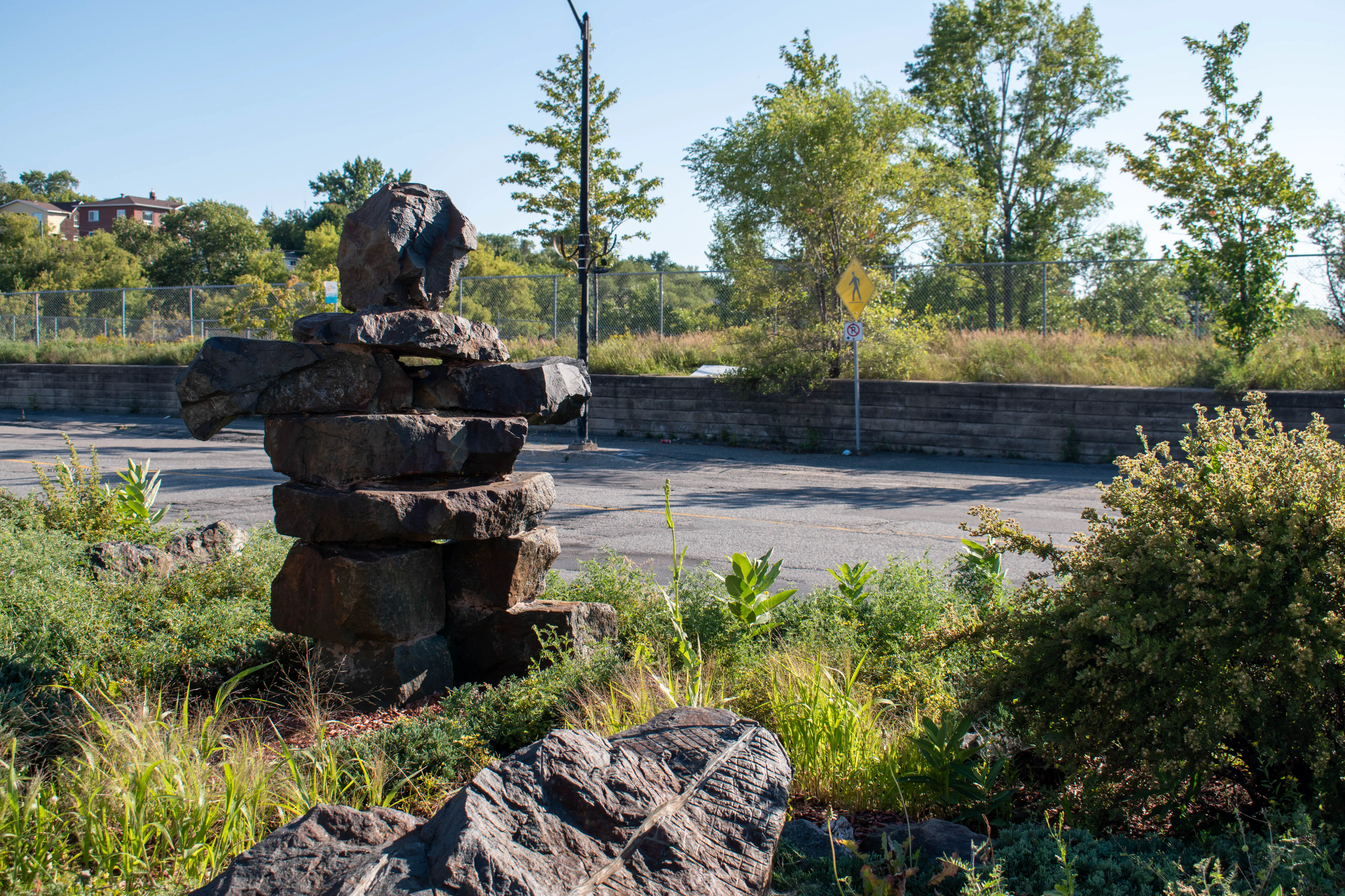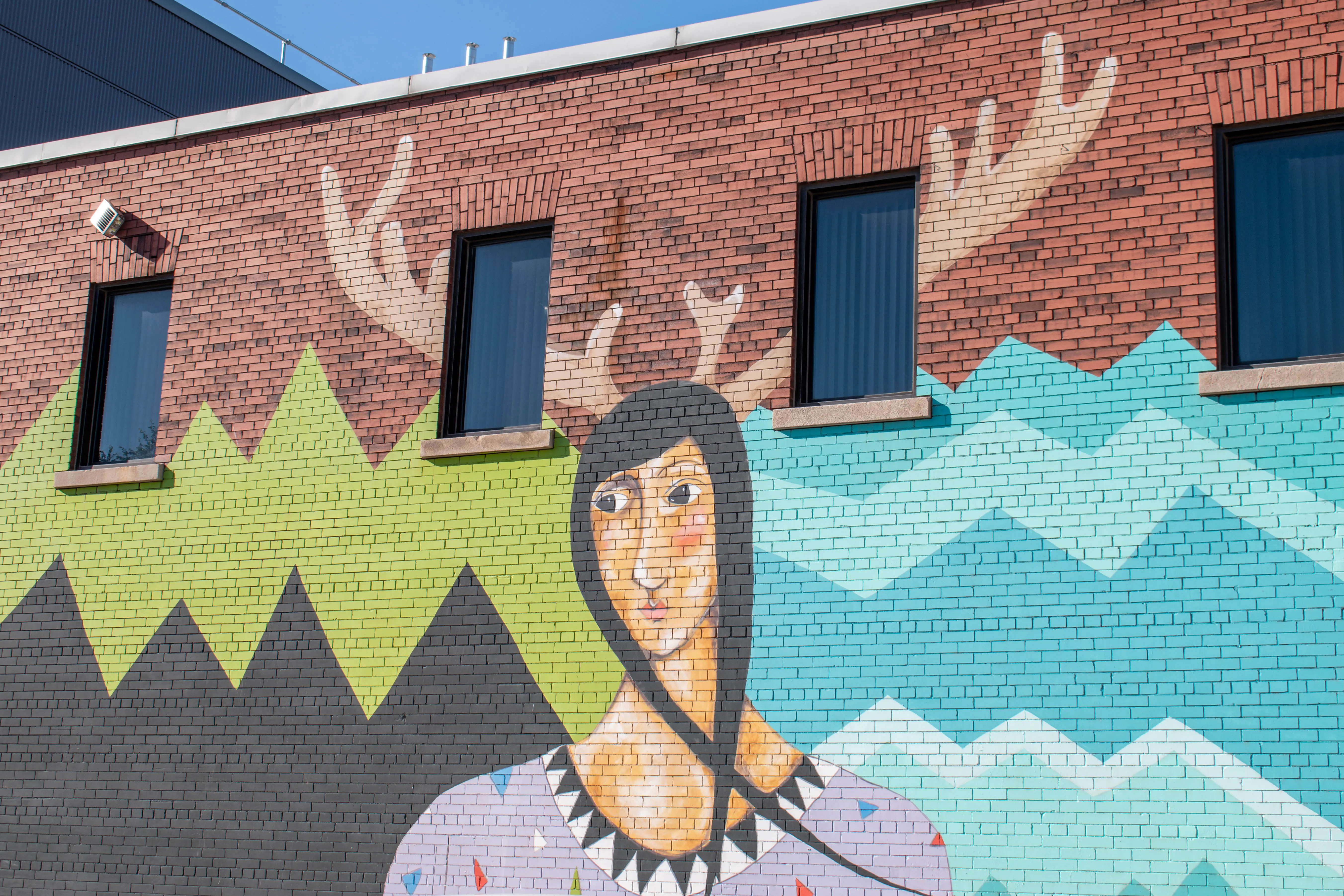 The next place in Sudbury that we visited was the site of Canada’s largest mural. The city had a graffiti artist, known as RISK, decorate the 80,000 square feet exterior of the old Sudbury hospital in 2019. The resulting multi-colour display is the largest mural in Canada. After parking we took some photos of the hospital, and then walked along the Bell Park boardwalk towards Science North and took in the sights of Hermit’s Bay. We returned to the car around 17:00 and drove downtown.