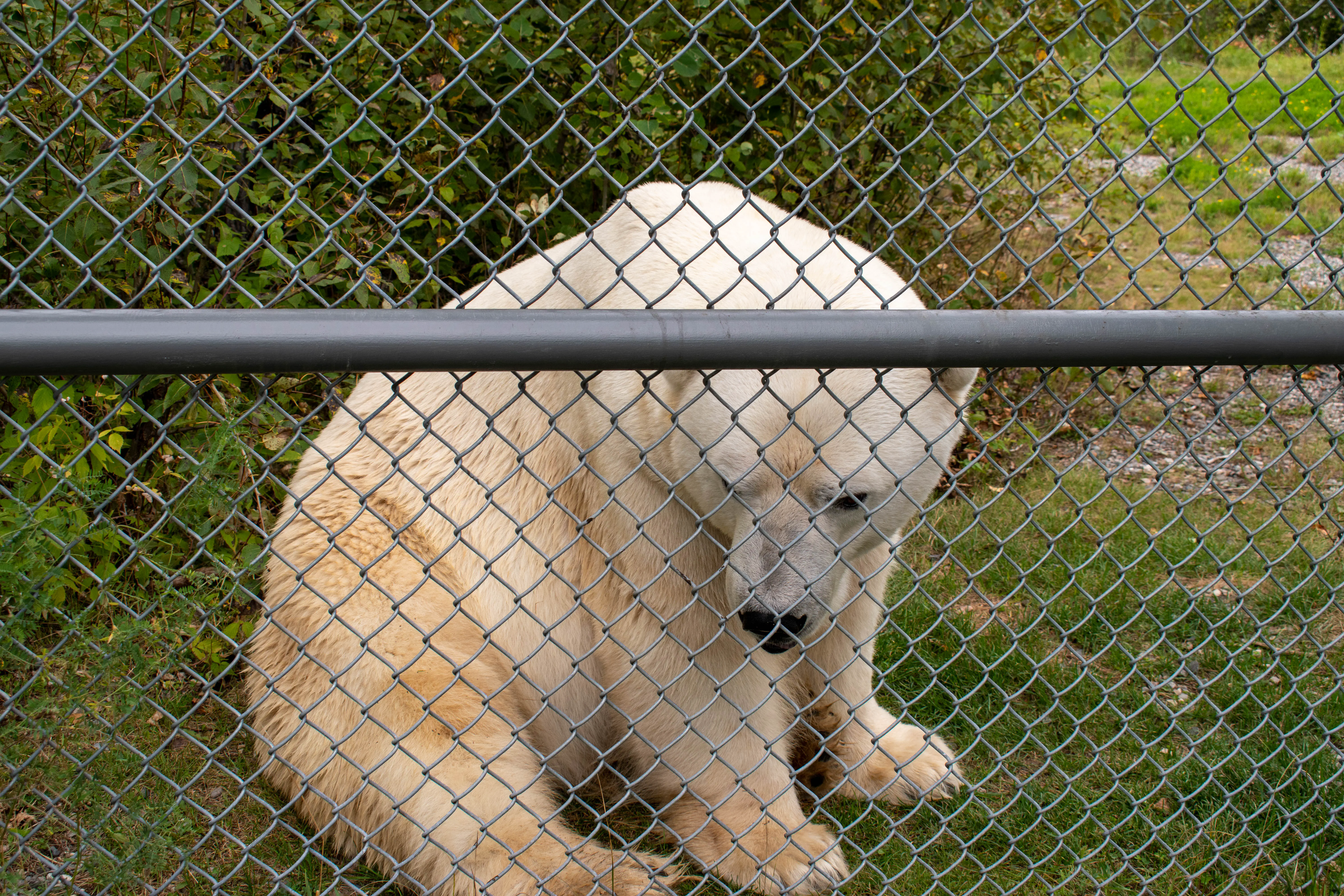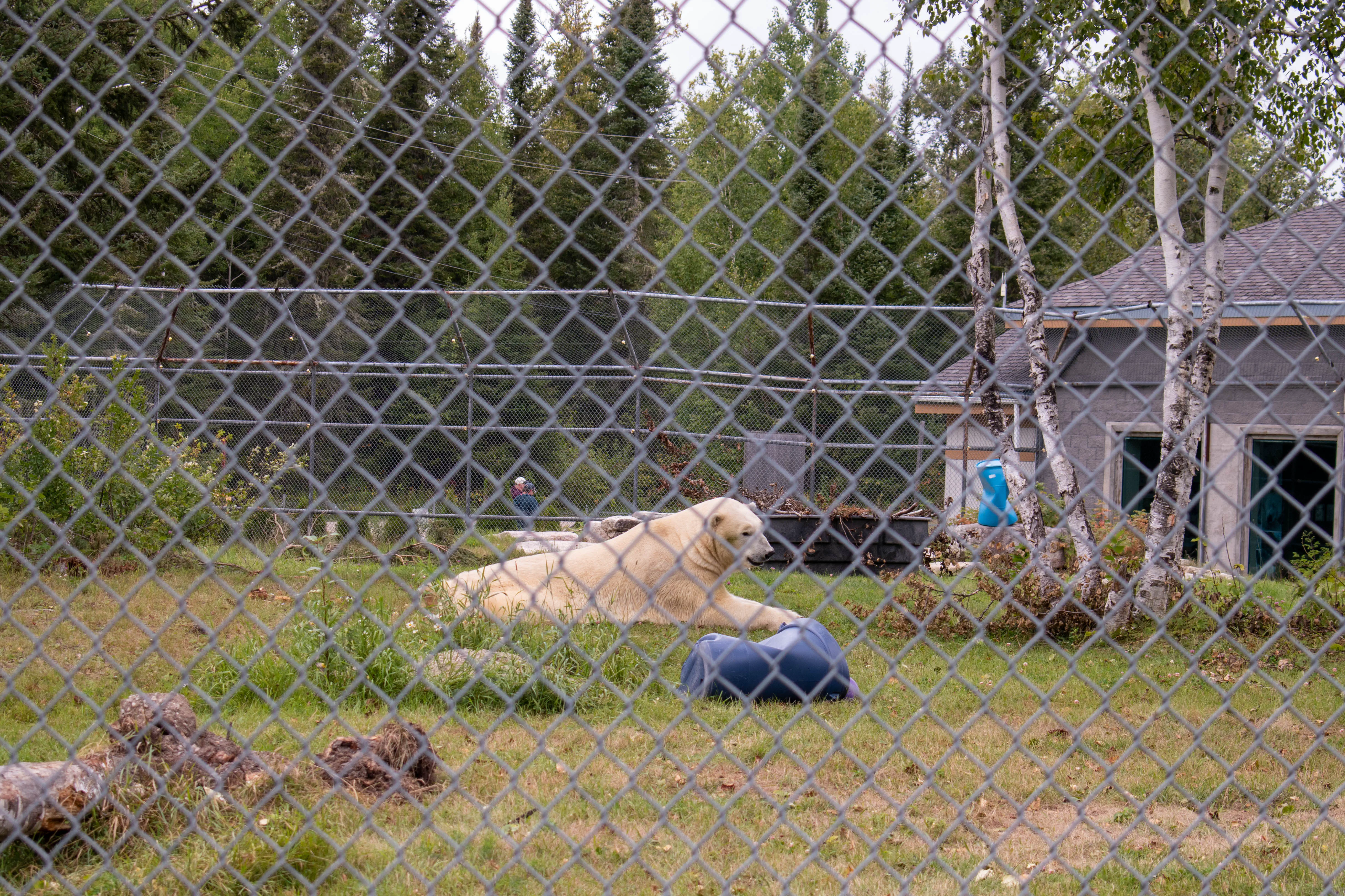 After arriving in Cochrane, we drove right to the Polar Bear Habitat. This was one of the few attractions in Cochrane we had planned to visit ahead of our trip, and so we wanted to make sure we arrived with plenty of time to explore. The polar bear habitat is a large, 24 acre site that allows the 3 resident polar bears to live in an environment quite similar to what they would experience in the wild. Once we entered the site we learned that one of the bears had wandered to the edge of its enclosure, giving people the ability to see him up close. We were quite lucky as he was still near the fence when we reached him, and we were able to see just how large he was. This enclosure was right beside a second one holding another bear, and we were able to get a pretty good view of him as well.