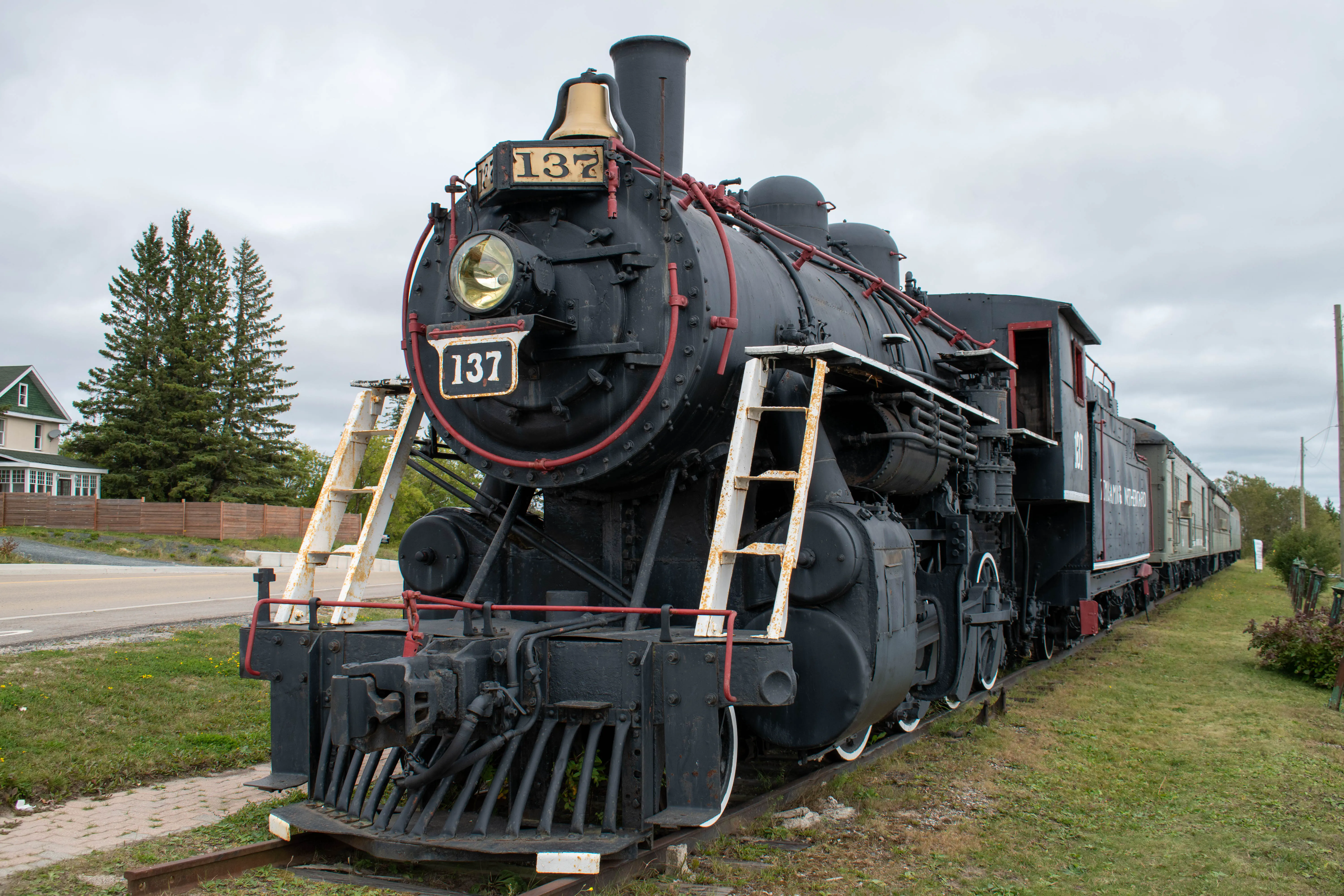 It was getting close to dinner time by the time we finished our walk, so we drove to our hotel and checked in. We had a room booked at the Westway Motel. We chose the motel as it was the only place in Cochrane that had a Tesla-compatible electric vehicle charger, and the charge was included in the room rate. We unpacked the car and got it charging, then started walking to a restaurant for dinner. We had originally planned on eating at the 49th Parallel Kitchen & Bar, however when we arrived shortly after 18:00 we learned that they were fully booked for the evening, and it wasn’t expected there would be any space. We walked back to a different restaurant we had passed on the walk, J R Bar-B-Q Ranch, and were able to get a table there. The meal was pretty good - we both had BBQ ribs and a beer. The restaurant wasn’t terribly busy so the service was quite fast. While we were eating we discussed our plans for the next couple of days, chatted about what we’d seen thus far, and just about life in general. Once we finished dinner we went for another walk around the Ontario Northland station area, and watched a switcher shunting some cars around. Once it started to get dark out we walked back to the hotel, where we watched a bit of TV and then called it a night.