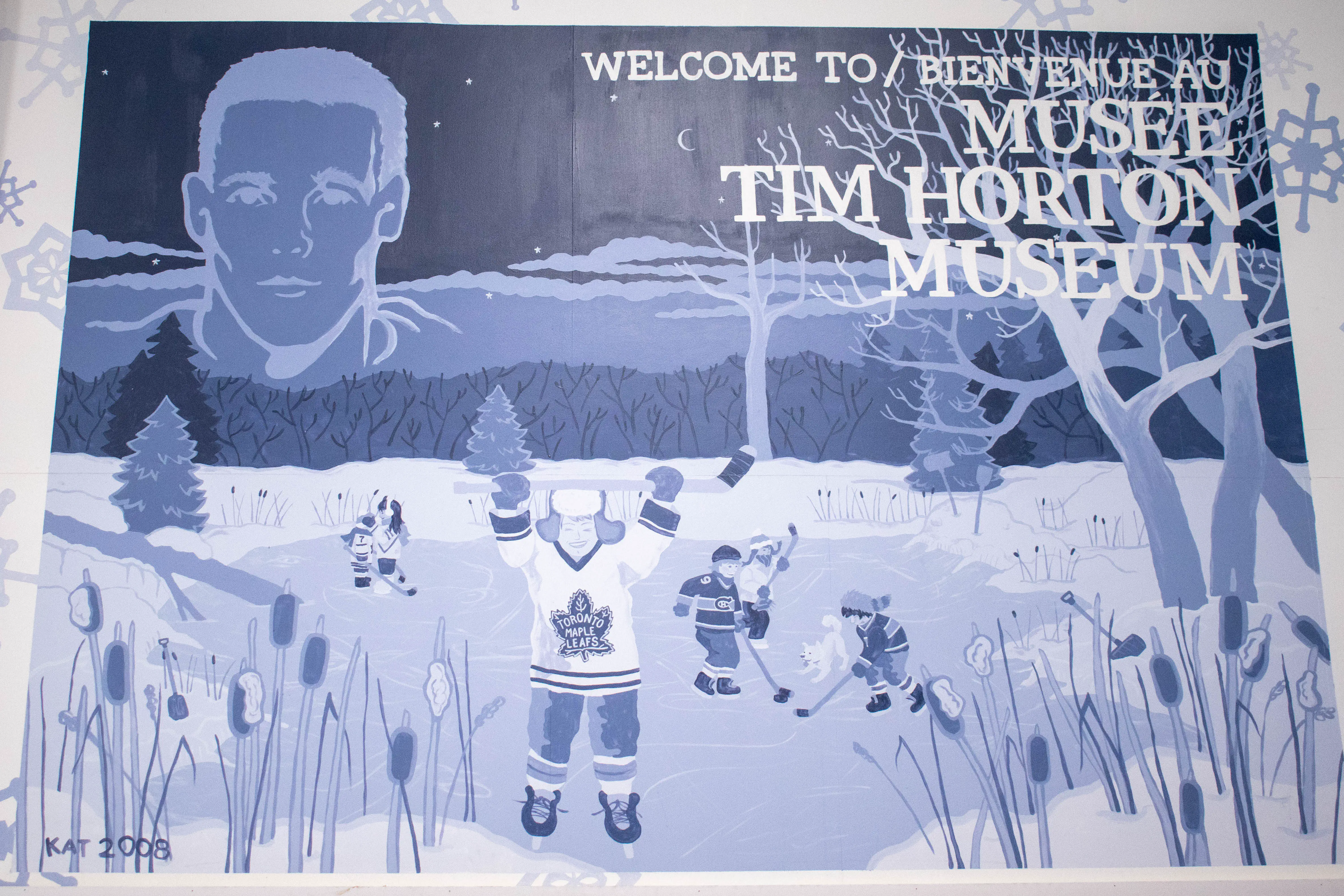 We left the polar bear habitat after about an hour, and went to our next stop - the Cochrane train station. We explored the station and the yard a bit, then continued on to our next destination - the Tim Horton museum. Tim Horton, founder of the eponymous coffee chain, grew up in Cochrane, and the town has a small museum dedicated to his careers (both hockey and refreshments) in the local hockey arena. We had to do a quick COVID temperature check in order to enter the arena, and then were able to walk through the small exhibit and take a few photos. It was about as grand as I expected for a small town hockey rink museum, but it was still neat to see. We only spent about 15 minutes here before continuing on.