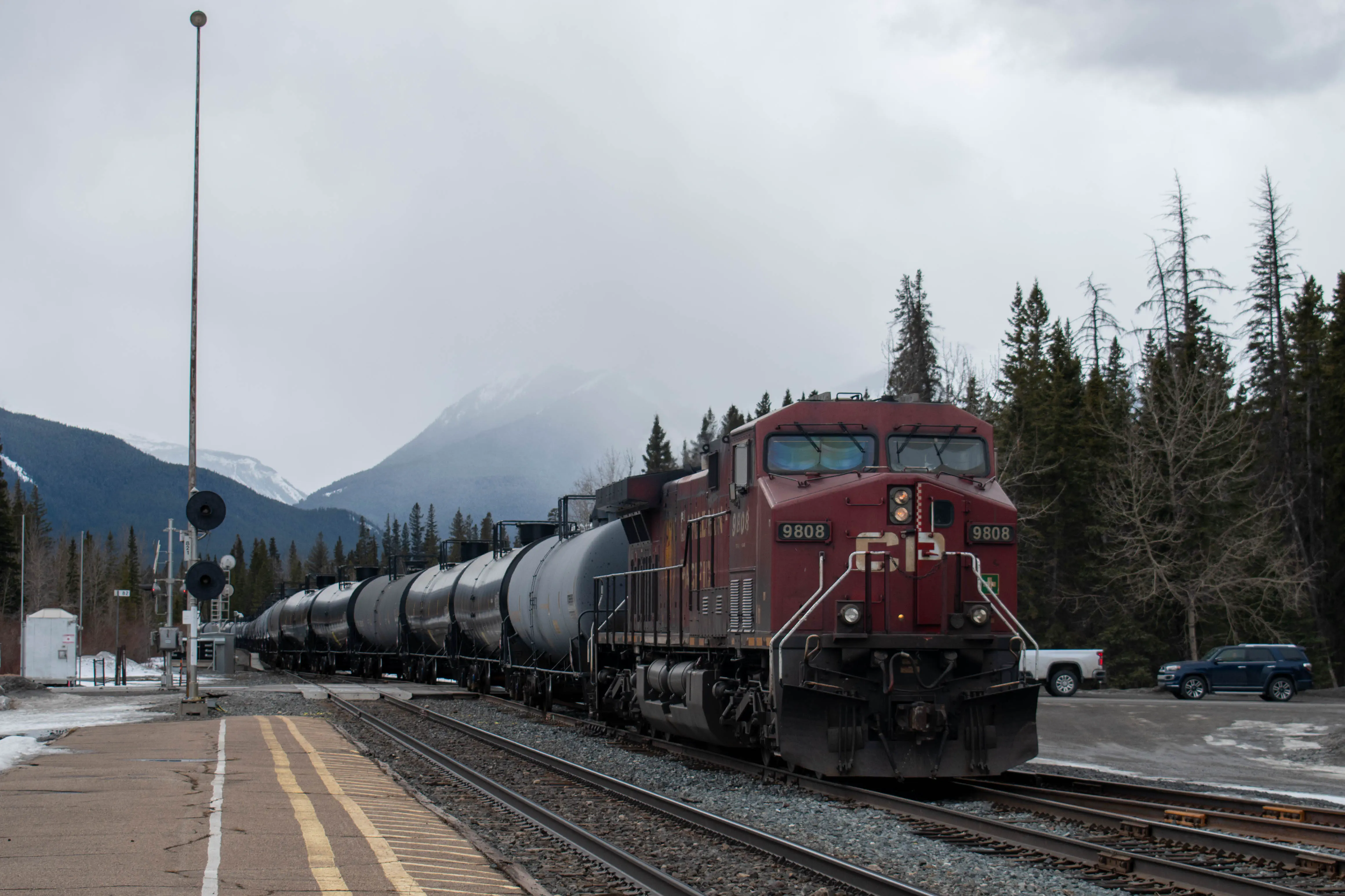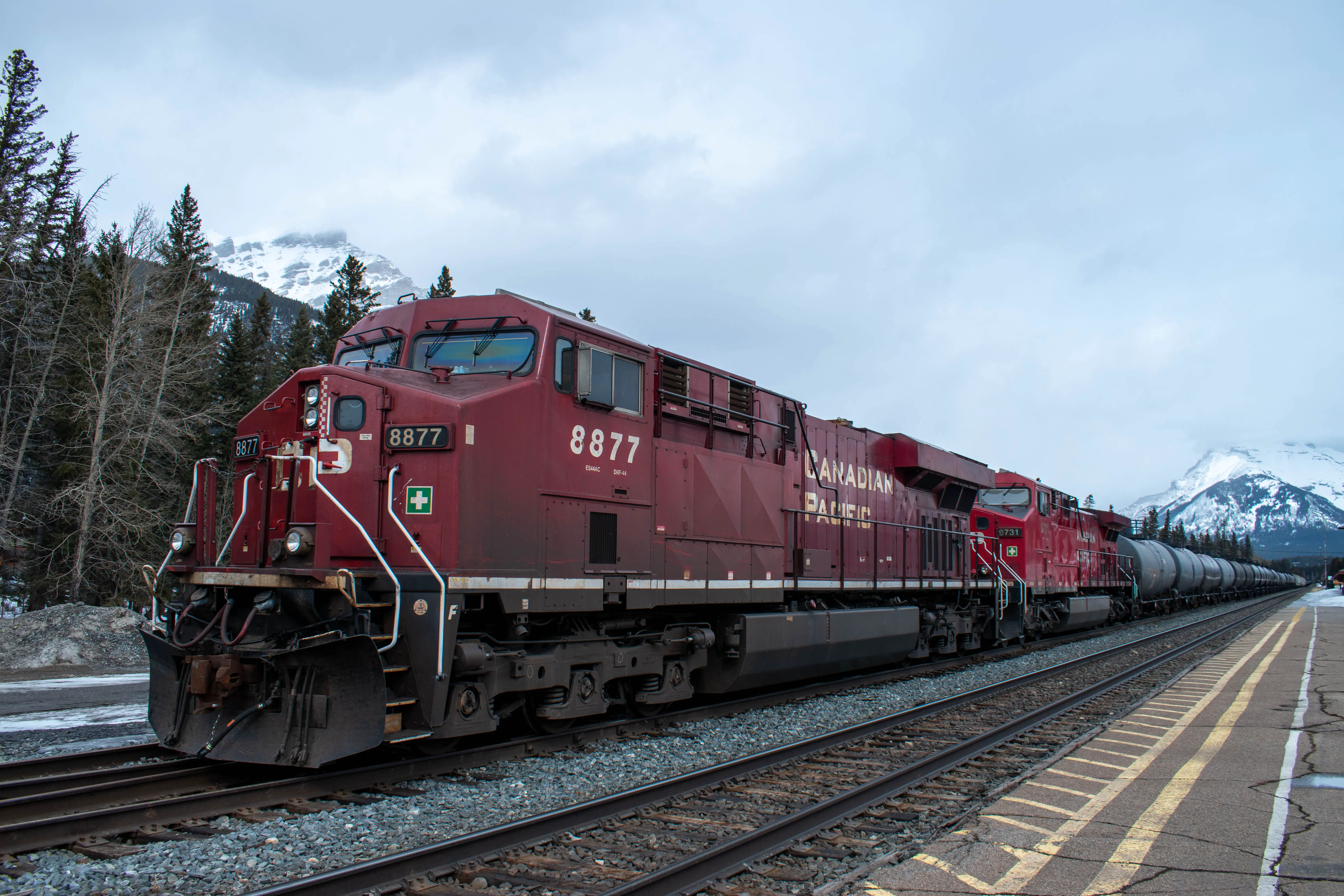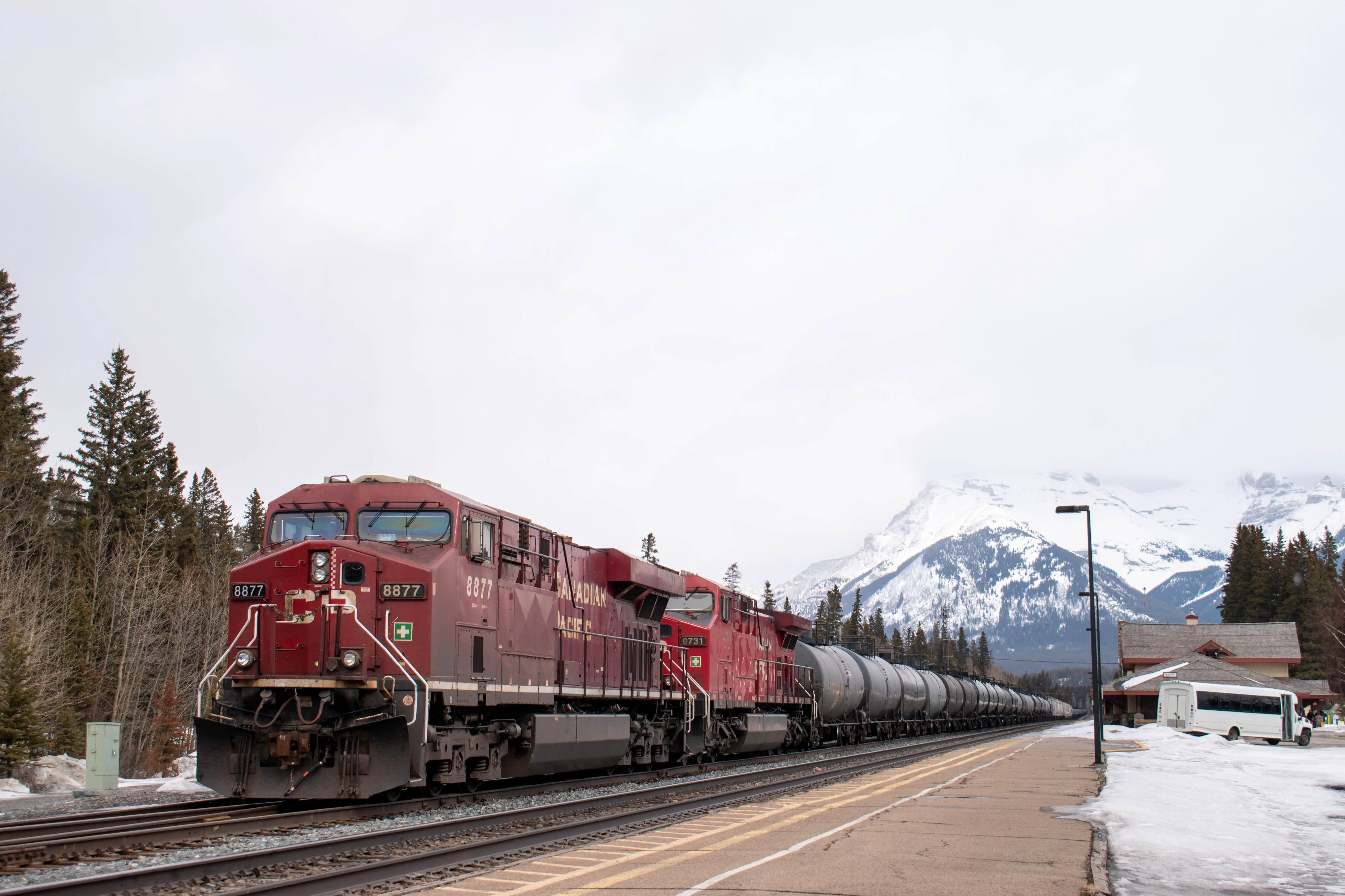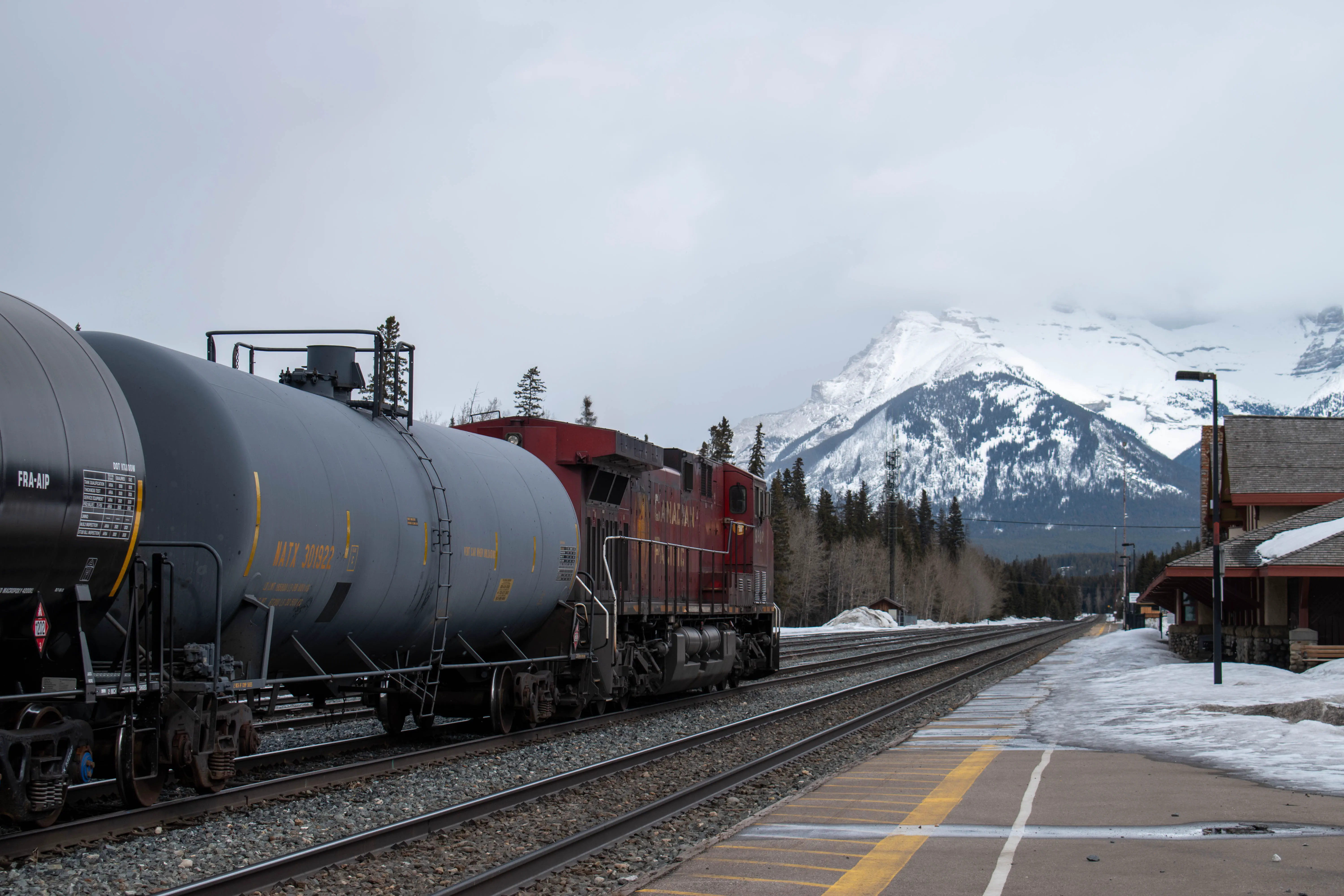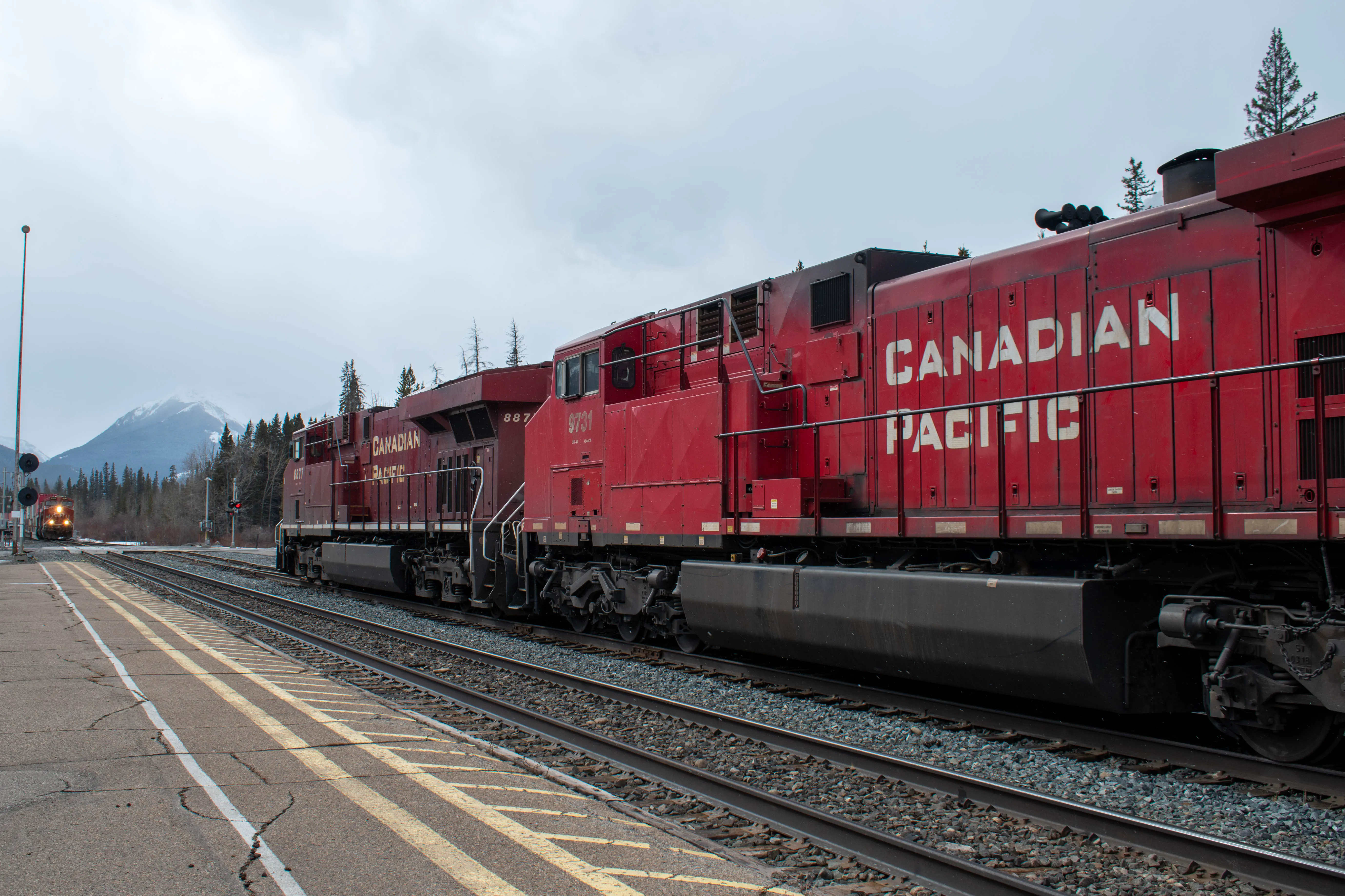 The Chateau Lake Louise was built by the Canadian Pacific Railway company was a destination for tourists to visit in the Rockies, and it was originally only reachable on the train. The station in Lake Louise is no longer used for passenger service, and has been converted into a restaurant. The log building is quite unique across the Canadian Pacific system; built in 1910 it is unlike any other station I’ve visited. There are still many trains which pass by this station on a daily basis.