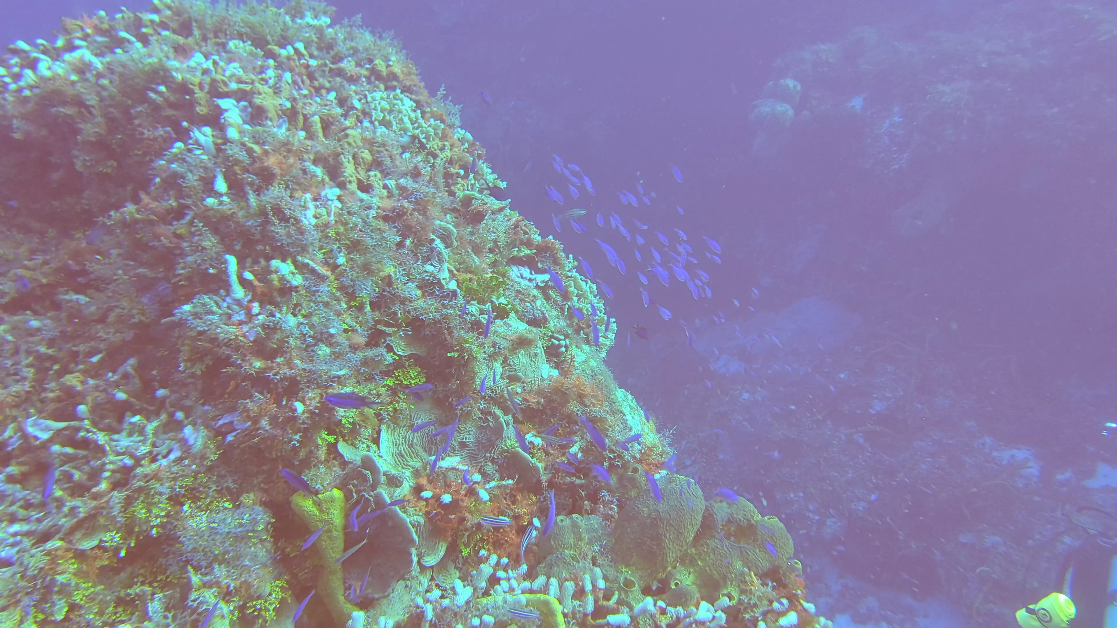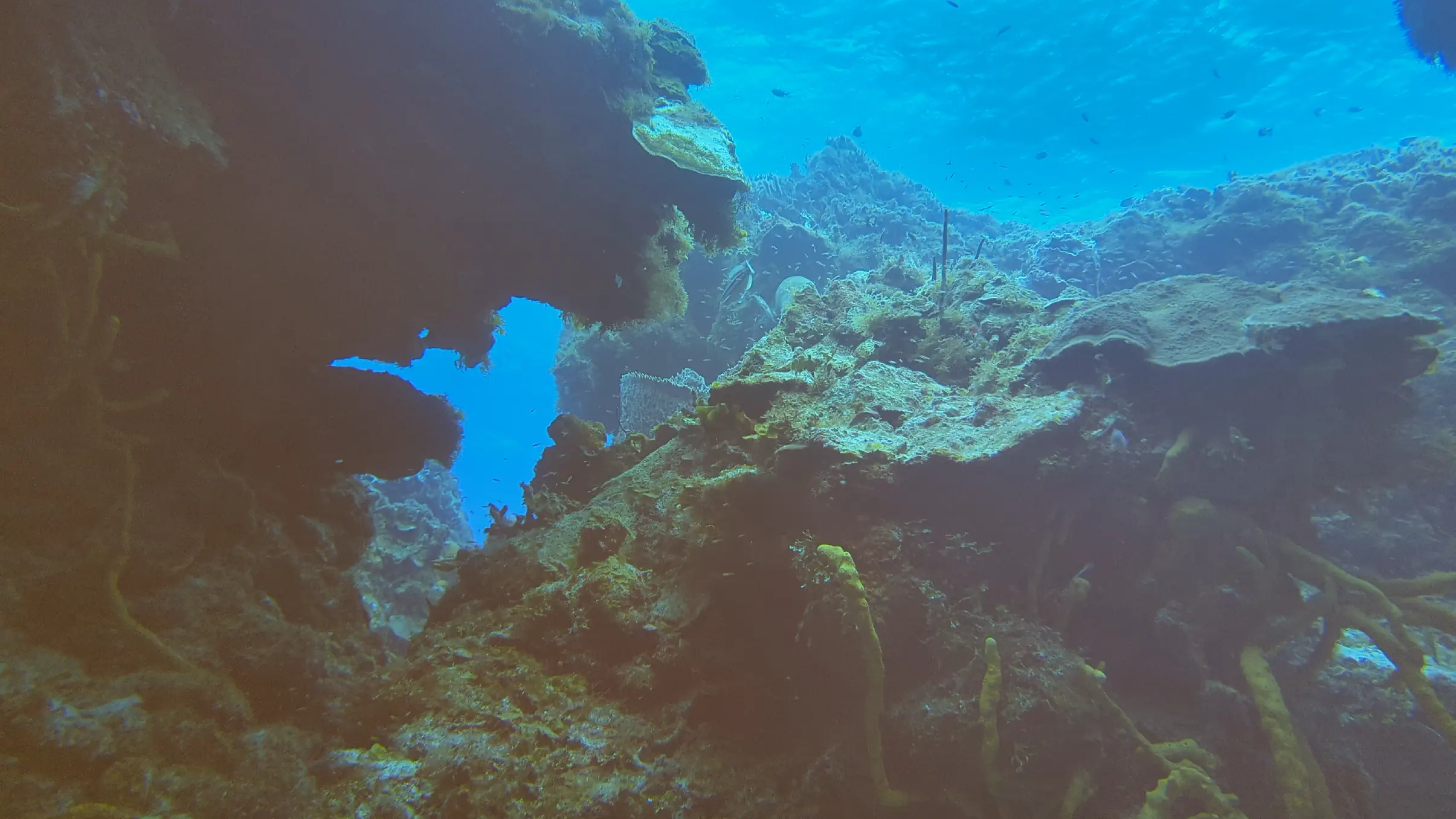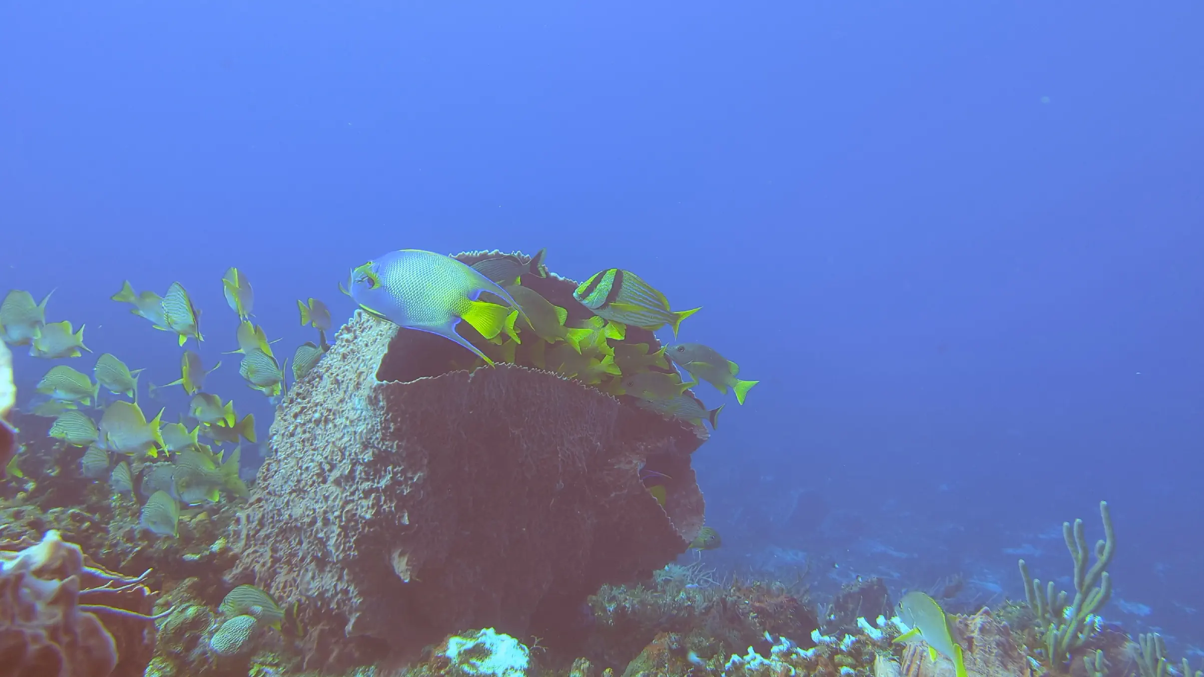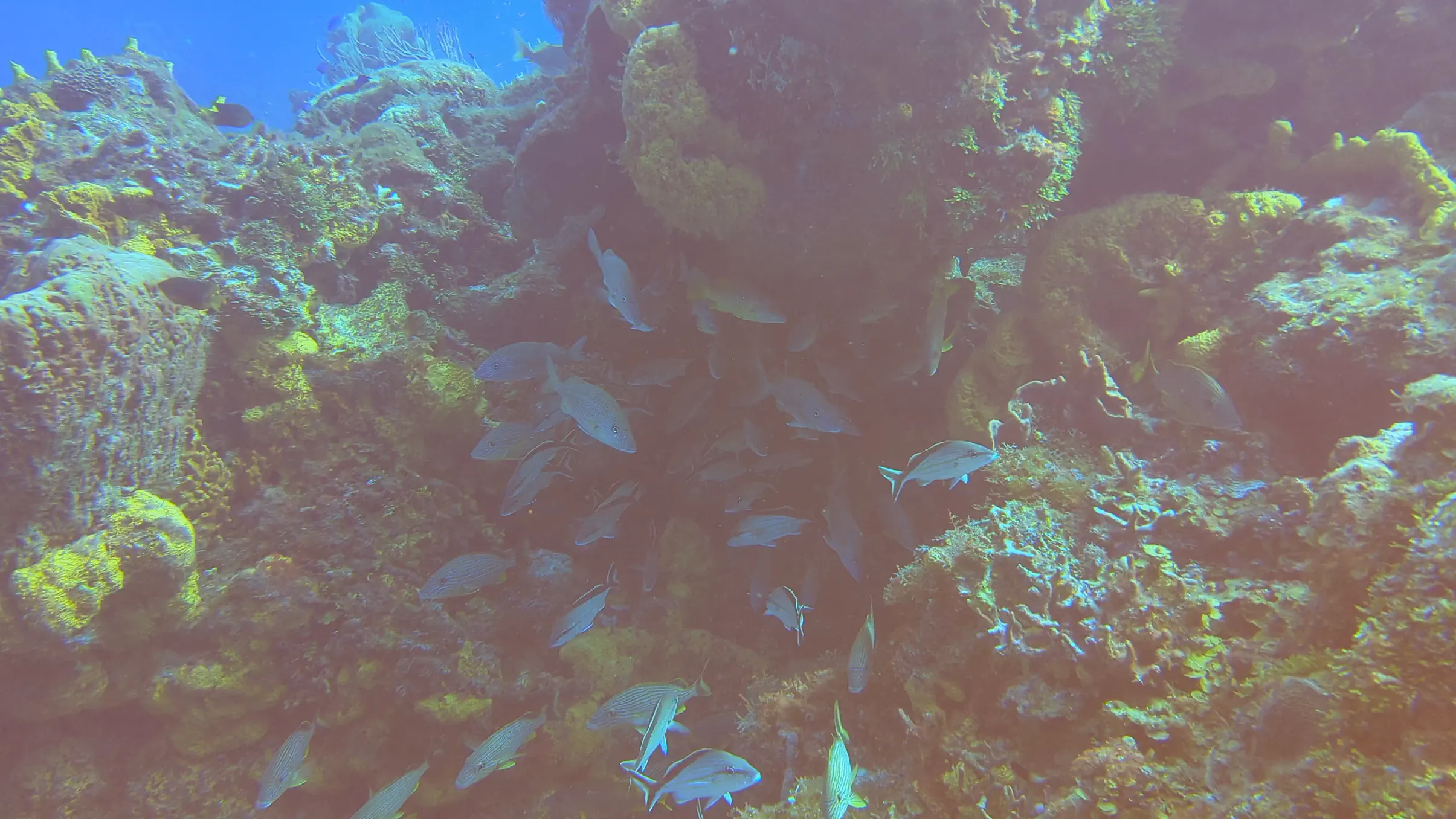 One of the perks of vacationing in Cozumel is that Air Canada has a direct flight from Toronto, making it an easy destination to reach. We landed in Cozumel in the late afternoon on the Sunday, and reached the hotel in time for a relaxing dinner. The Monday we dove in the afternoon; however on the Tuesday, Wednesday, Thursday and Friday our dives were all in the morning. The ScubaTony boat picked us up from the hotel beach right at 8 AM, and the dive sites were no more than a 15-20 minute boat ride from our hotel. This gave us enough time to get our equipment on and to conduct the dive briefing and still be in the water by 8:30 on most mornings. This was earlier than many of the other dive companies, which meant we rarely saw other divers while were underwater.