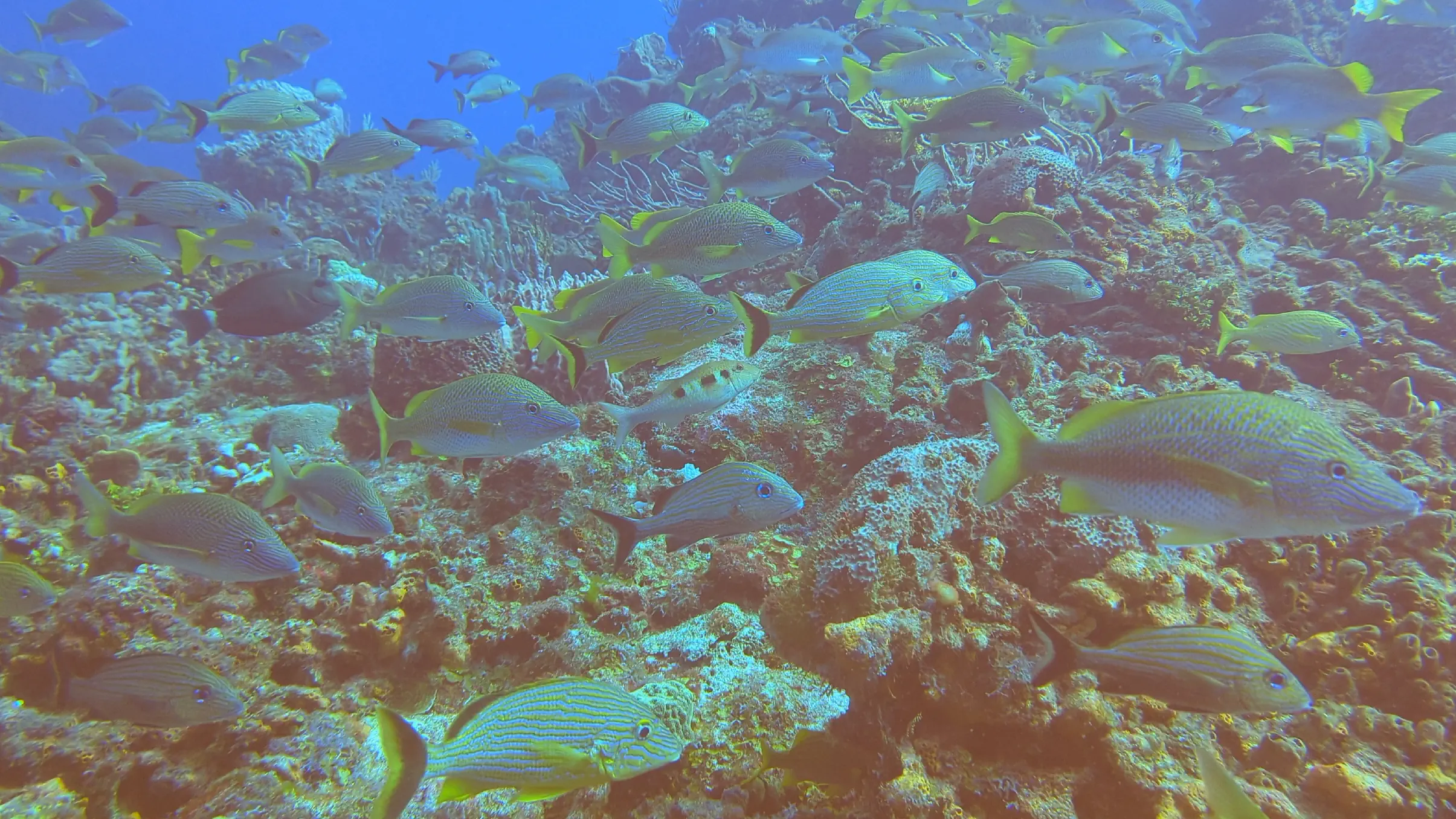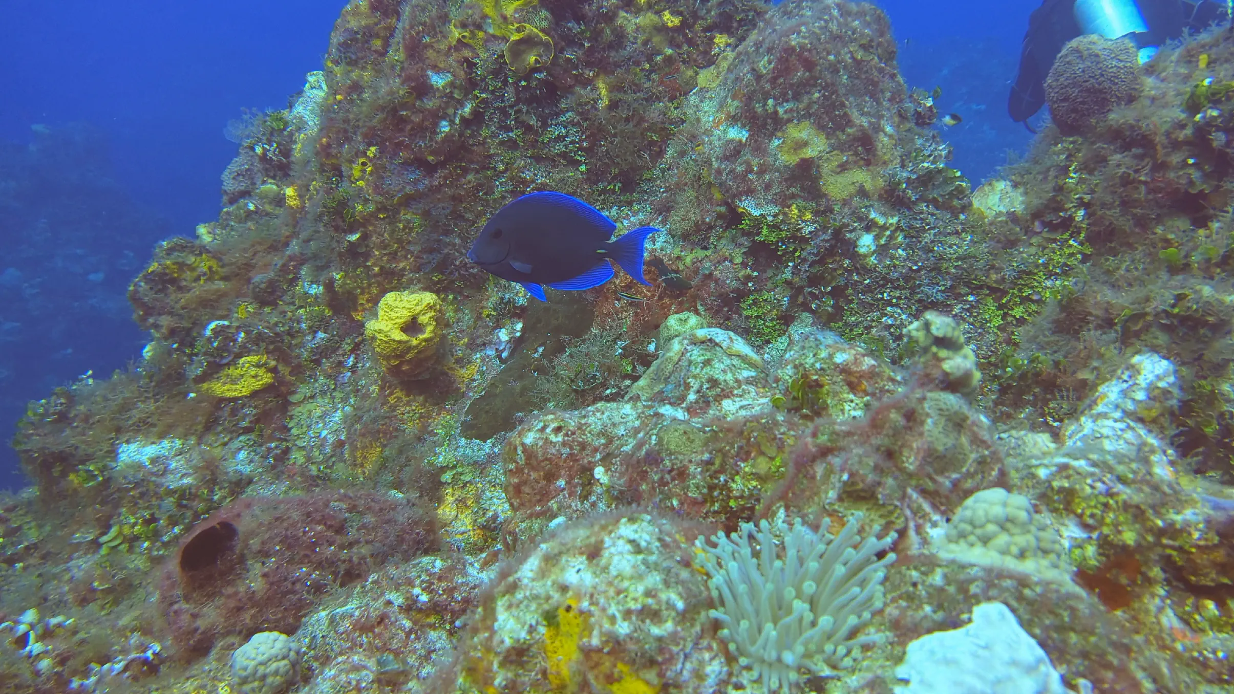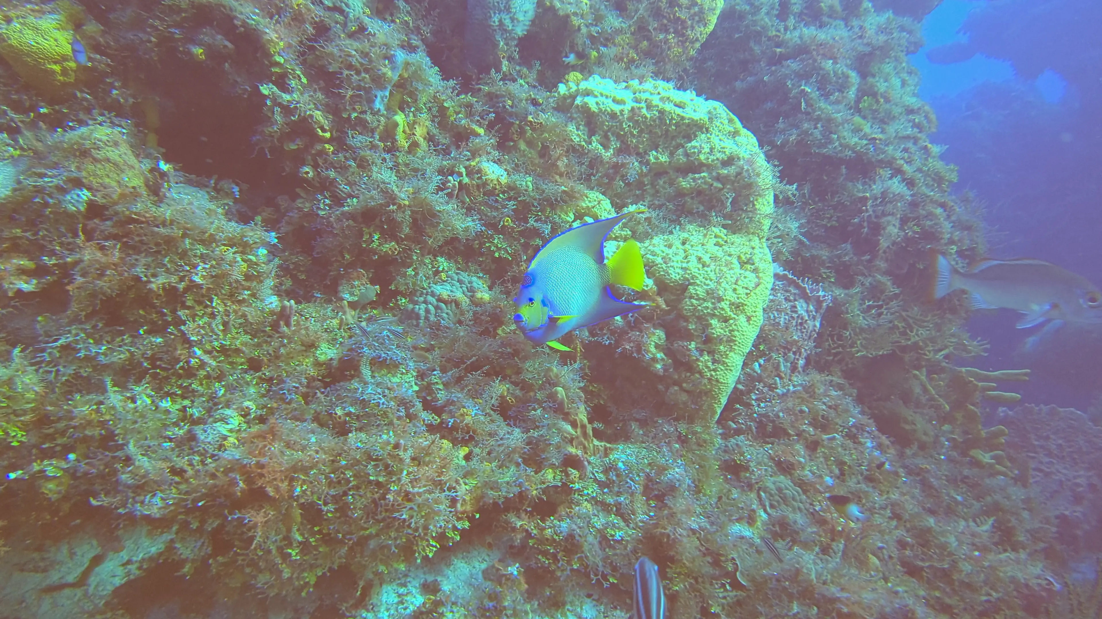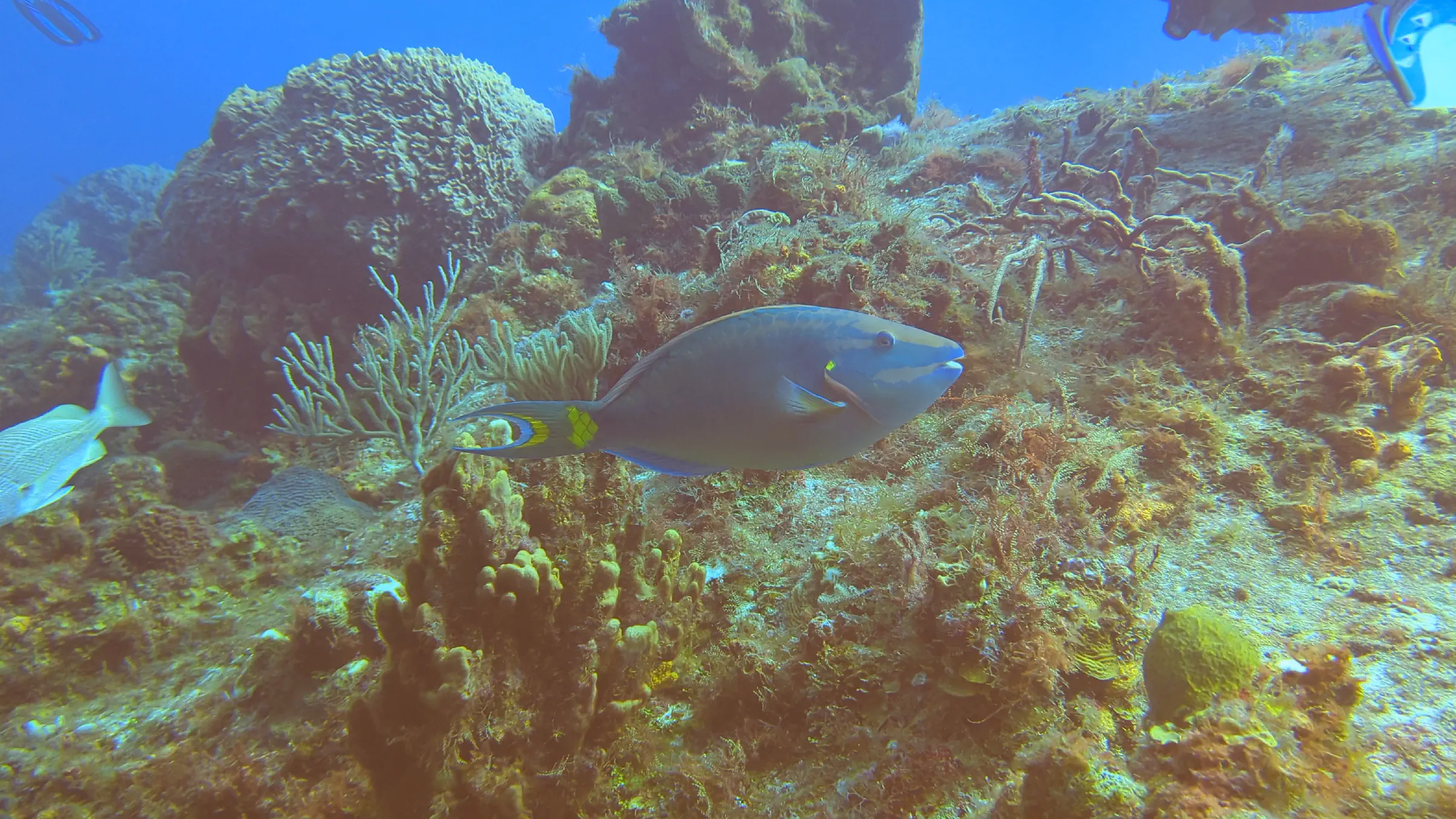 One of the perks of vacationing in Cozumel is that Air Canada has a direct flight from Toronto, making it an easy destination to reach. We landed in Cozumel in the late afternoon on the Sunday, and reached the hotel in time for a relaxing dinner. The Monday we dove in the afternoon; however on the Tuesday, Wednesday, Thursday and Friday our dives were all in the morning. The ScubaTony boat picked us up from the hotel beach right at 8 AM, and the dive sites were no more than a 15-20 minute boat ride from our hotel. This gave us enough time to get our equipment on and to conduct the dive briefing and still be in the water by 8:30 on most mornings. This was earlier than many of the other dive companies, which meant we rarely saw other divers while were underwater.