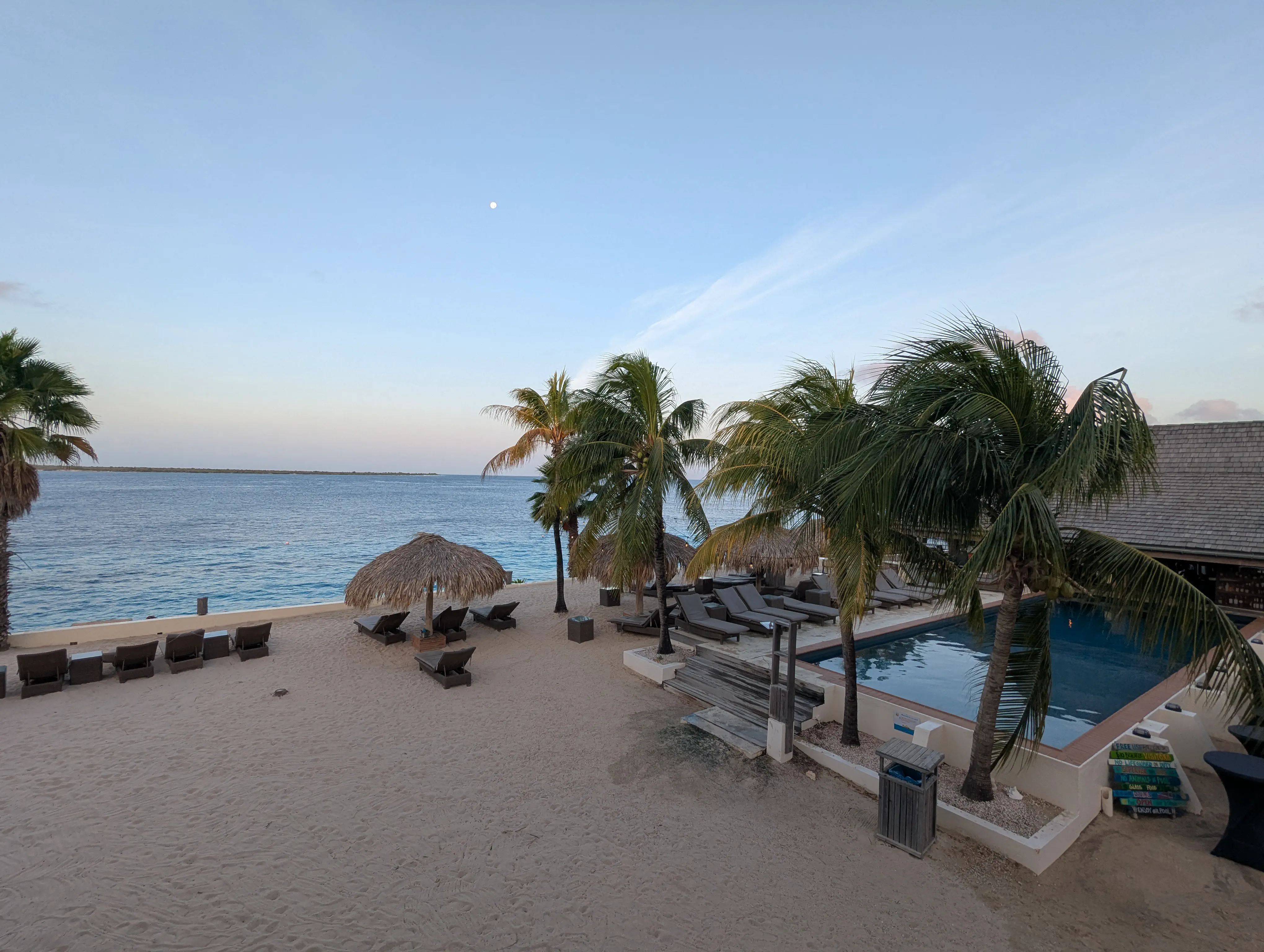 There was a one-a-week direct flight from Toronto Pearson to the Flamingo International Airport in Kralendijk, Bonaire, which made it relatively easy for us to get to the island. My parents’ trip started the evening before us on a redeye Westjet flight from Calgary to Toronto, and we met them in Toronto Pearson Terminal 3 as the sun was rising the morning of February 3. Boarding the flight down to Bonaire was uneventful, and we pushed back from the gate on time. We had a quick deicing stop before departing on the 5 1/2 hour flight down. I kept myself occupied on the flight down reading the fifth book in the Wheel of Time series, The Fires of Heaven. I also watched the last couple of episodes of the Apple TV show ‘Murderbot’. The flight was smooth, and we arrived to a beautiful warm afternoon in Bonaire.
