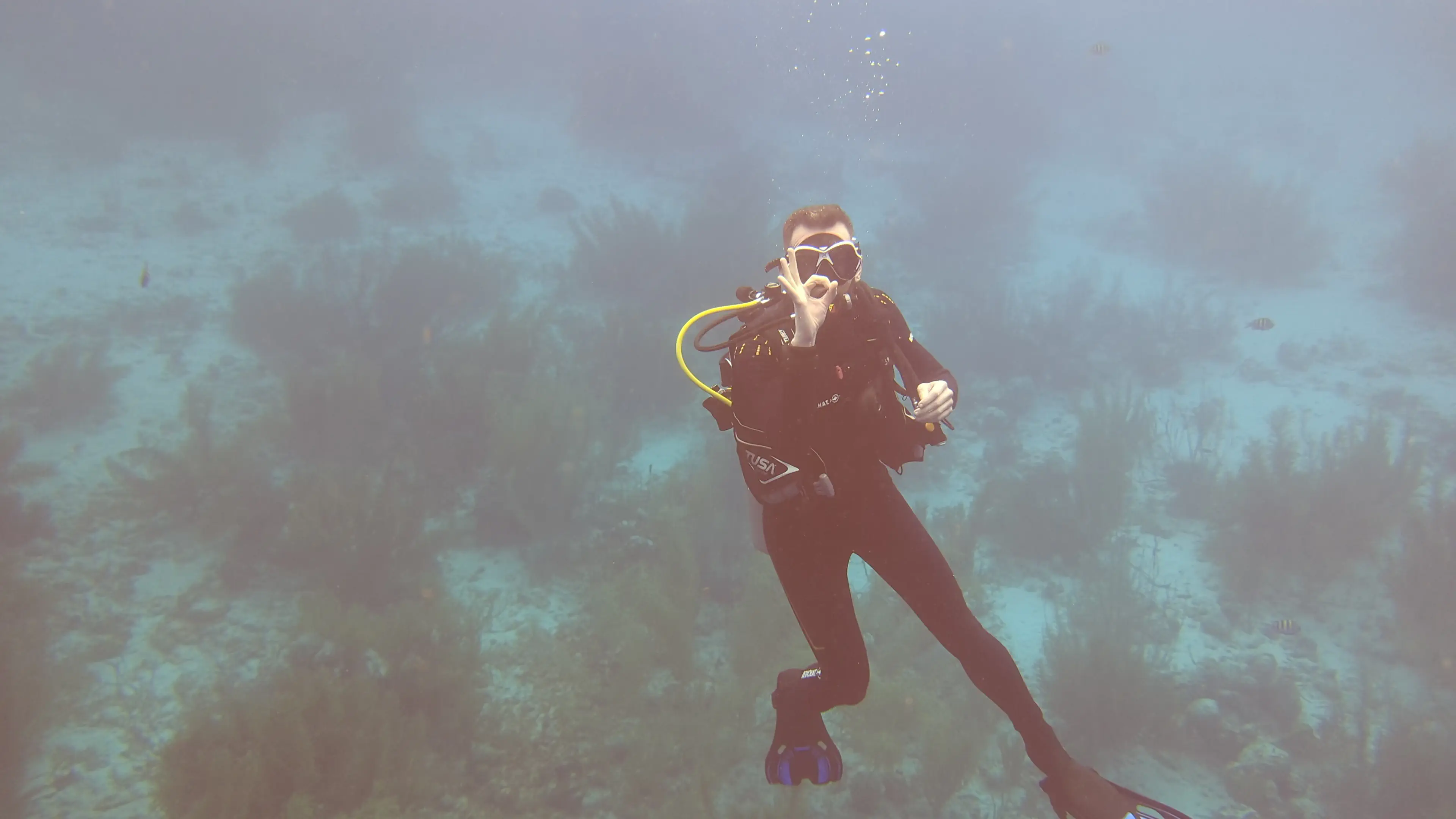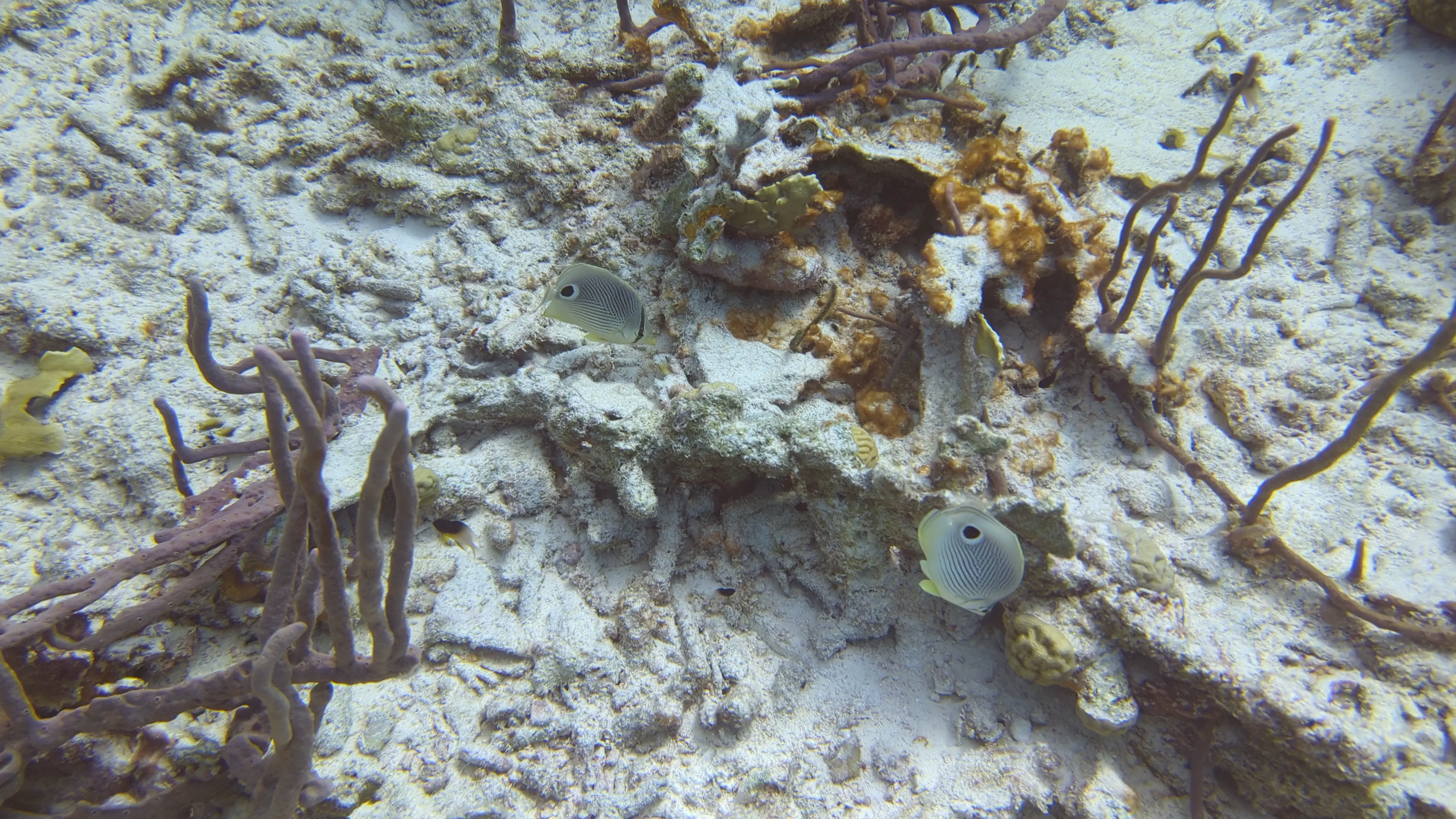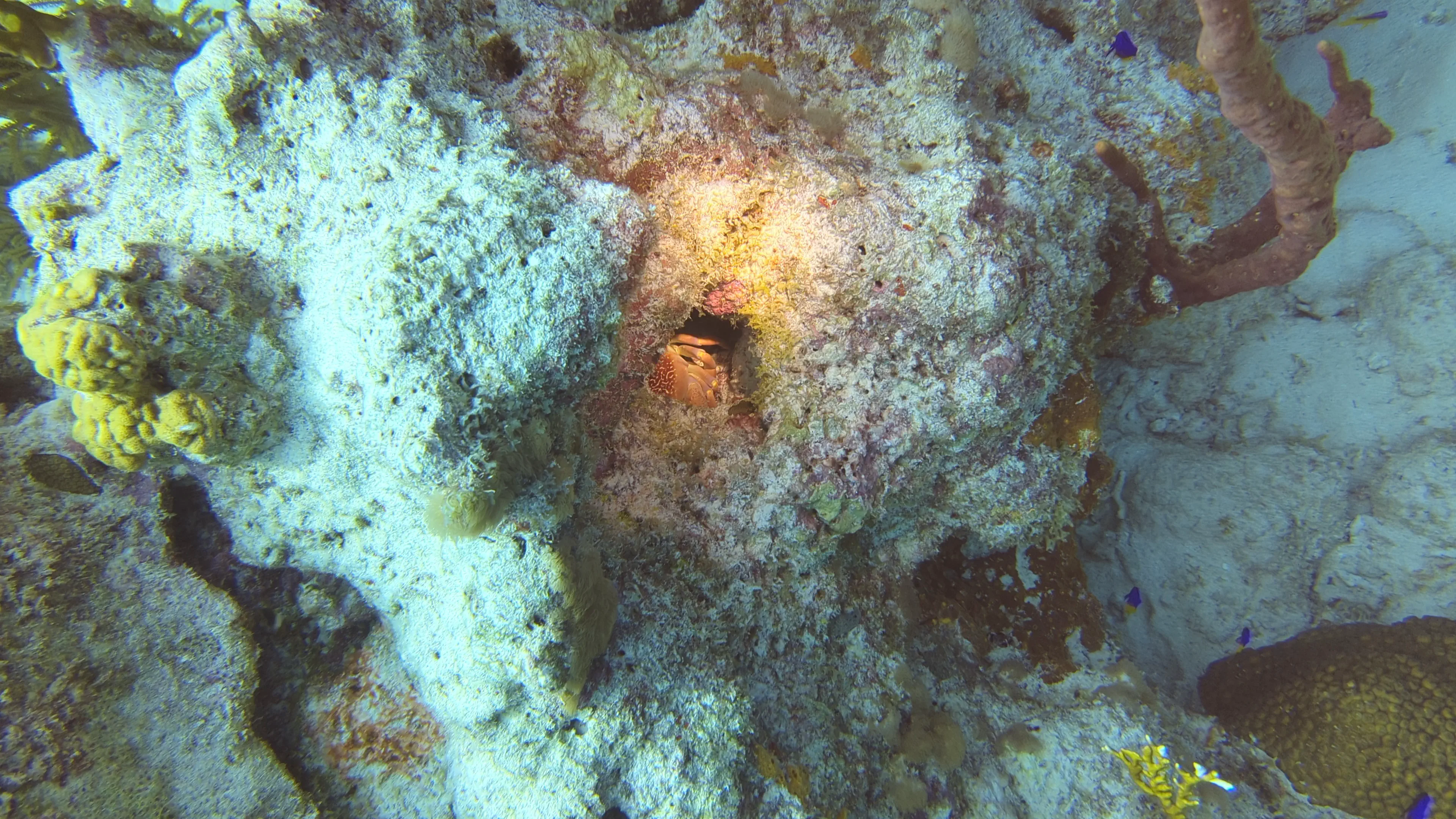 The Coral Buddy took us to Klein Bonaire, a small island to the west of Bonaire (Klein means ‘small’ in Dutch). The first dive site we visited was named Monte’s Divi, and the second was named Mi Dushi. Both dives went well; on both dives we reached the maximum time underwater specified in the dive briefings (60 minutes) before we reached low air, which is always something happy with. I had my phone in my underwater camera case all ready go to on the first dive, but after I was in the water I realized I had left the wrist strap in the case. The dive took place on a sloped reef which went much deeper than our maximum depth, so to avoid accidentally dropping the case and losing it I returned it to the boat captain.