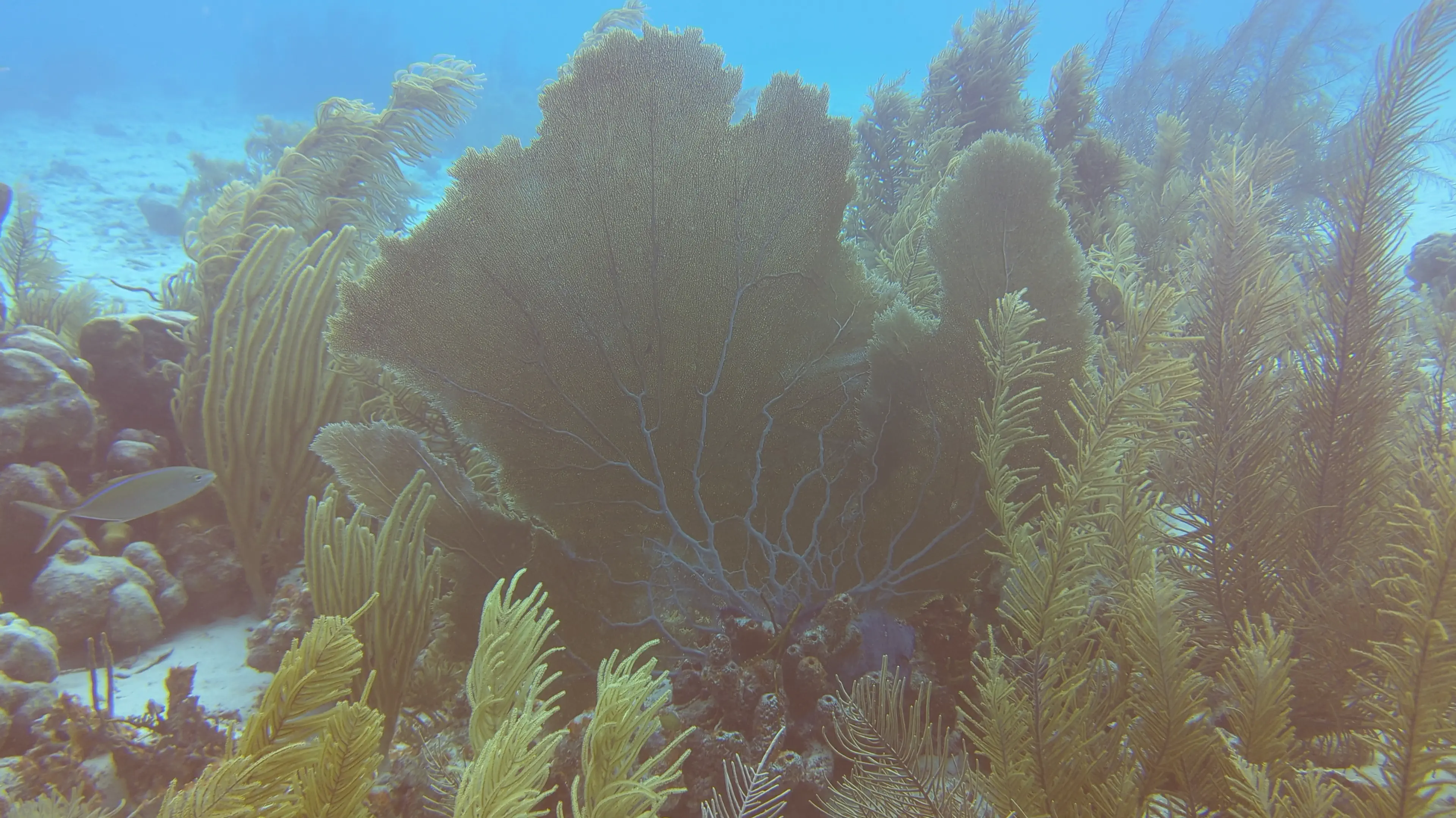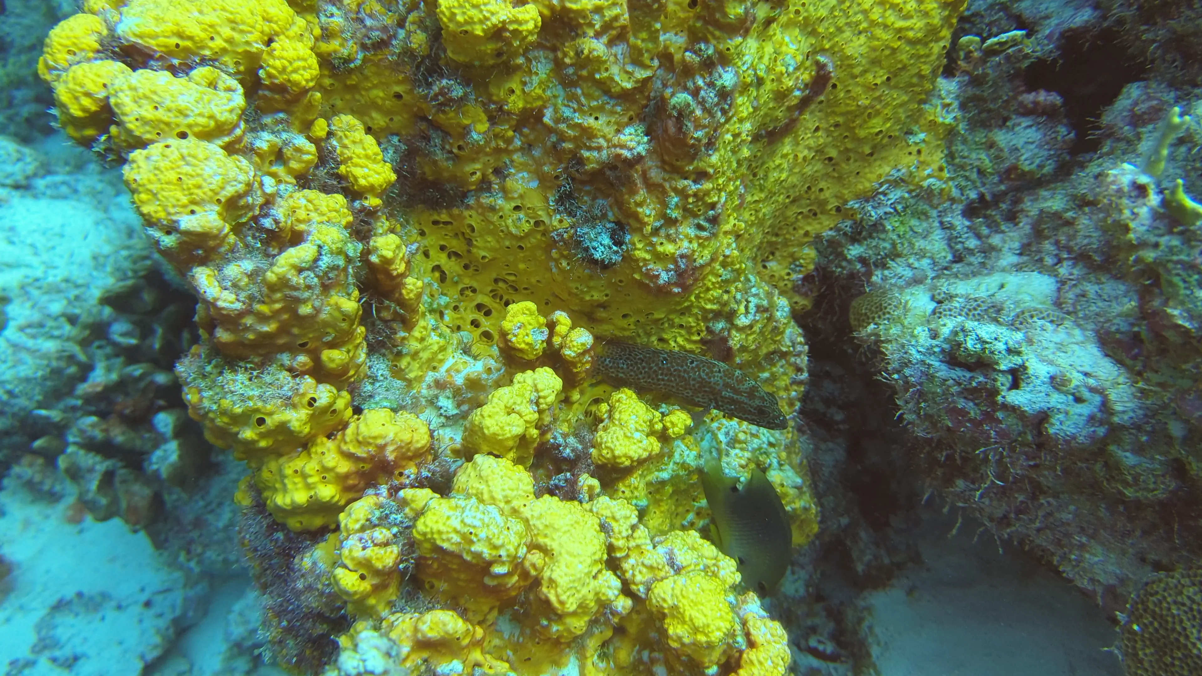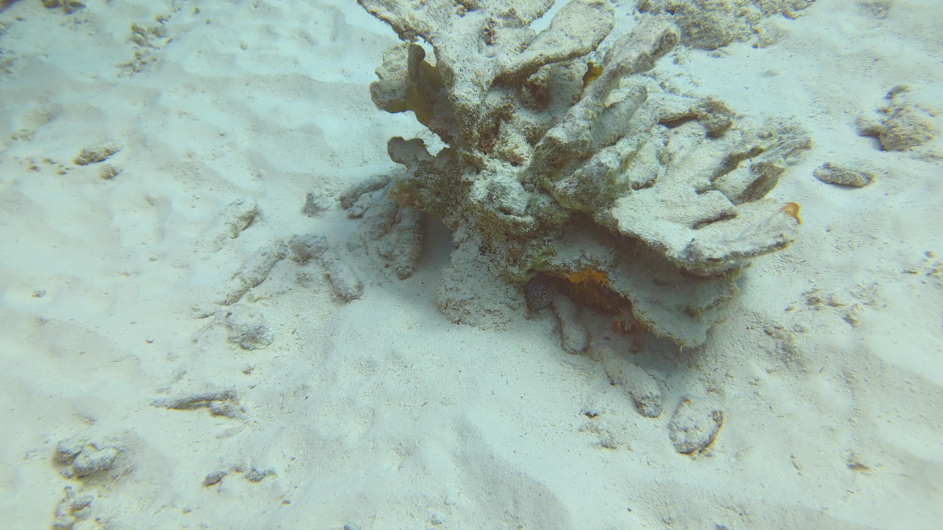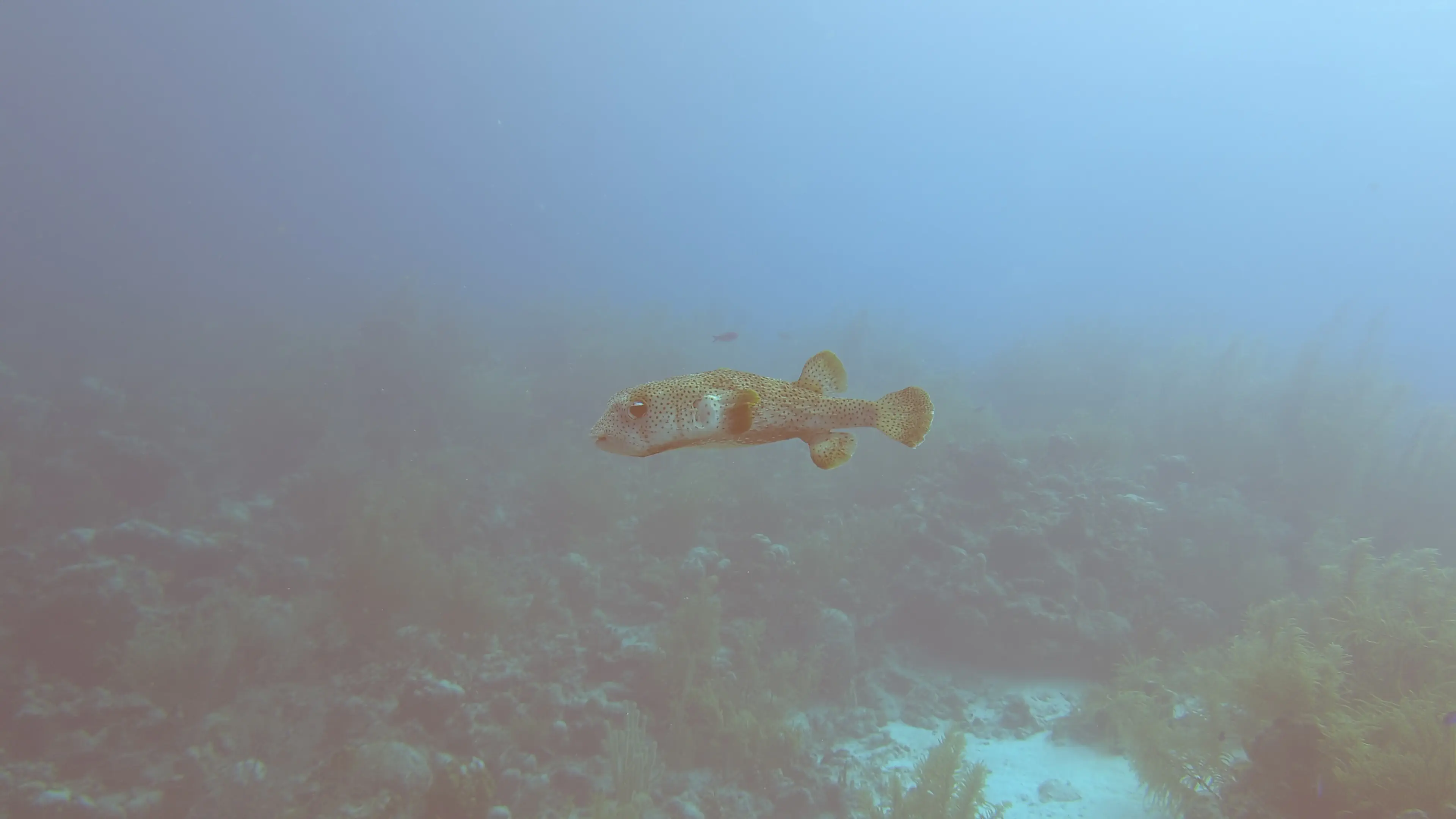 On our first dive some notable things I saw included a barracuda, a couple of eels, and a cleaning shrimp. The dive profile was pretty straightforward - we dove along the wall for the first half, came up onto the reef and let the current drift us back to the boat for the second half. There were a number of fan and soft corals. During the surface interval between dives I made sure the wrist strap was attached, so I was able to take it with me on the second dive without any issues - the photos from this dive are below. On the second dive I saw a couple of barracuda near the surface, and early on a large porcupinefish swam past me. Other notable animals included two different types of eels, and there was also a crab. There were many fish at this dive site as well.