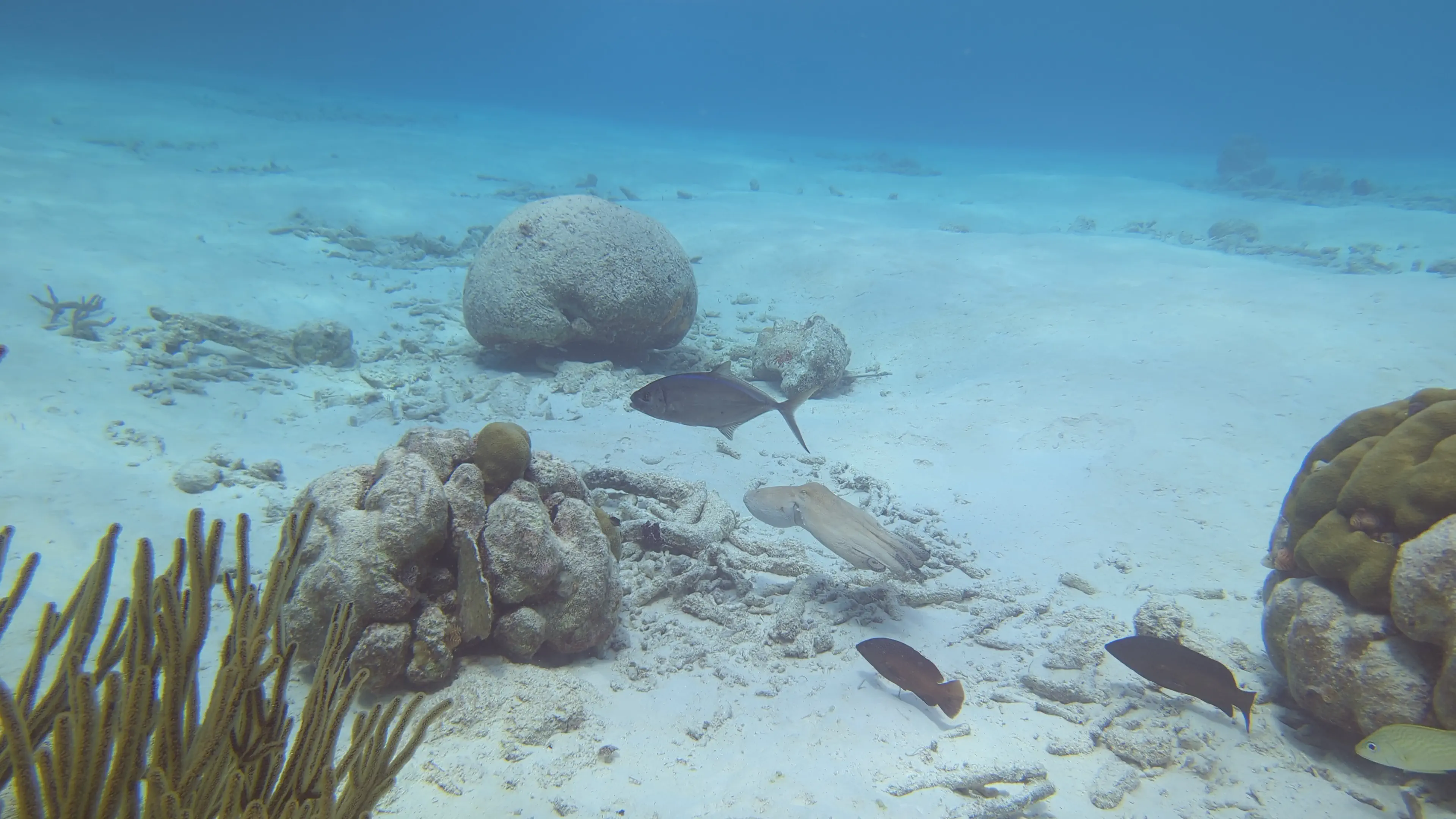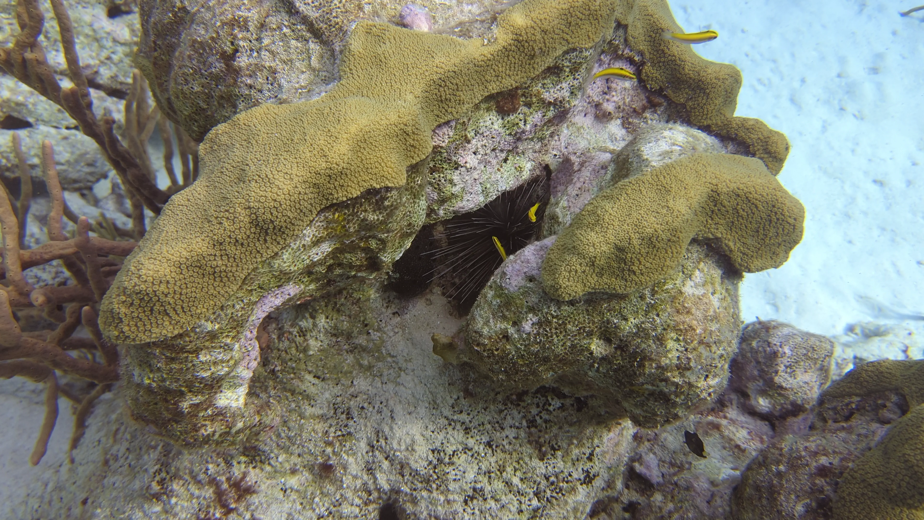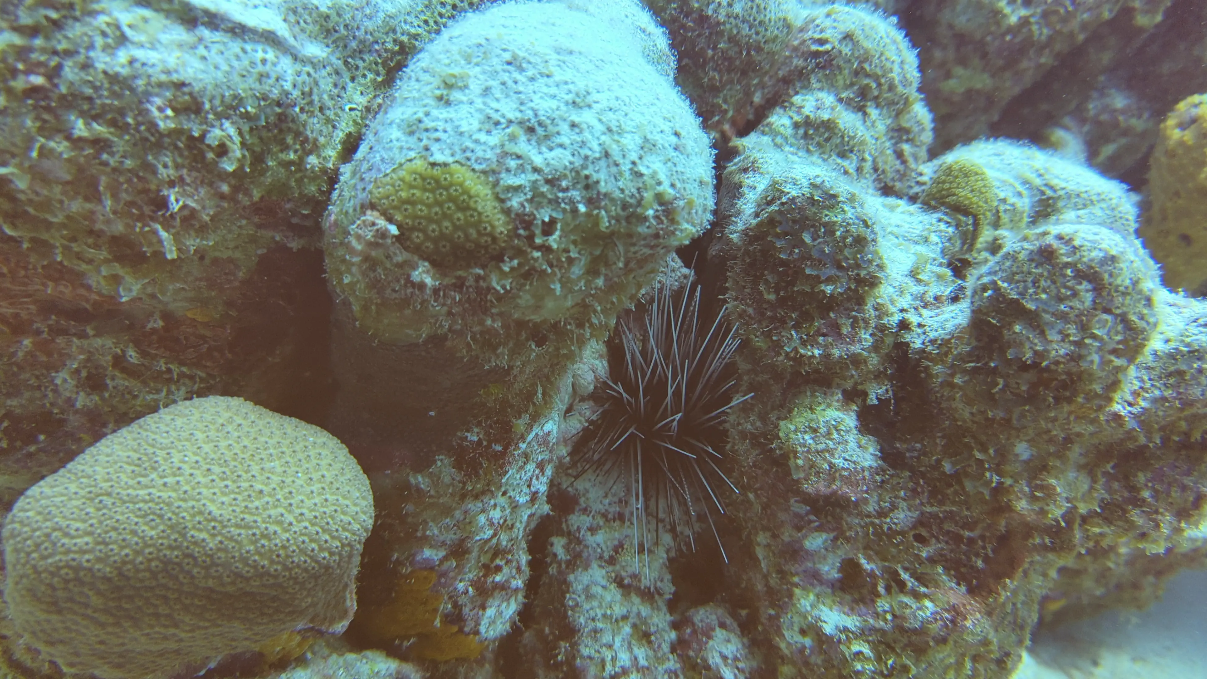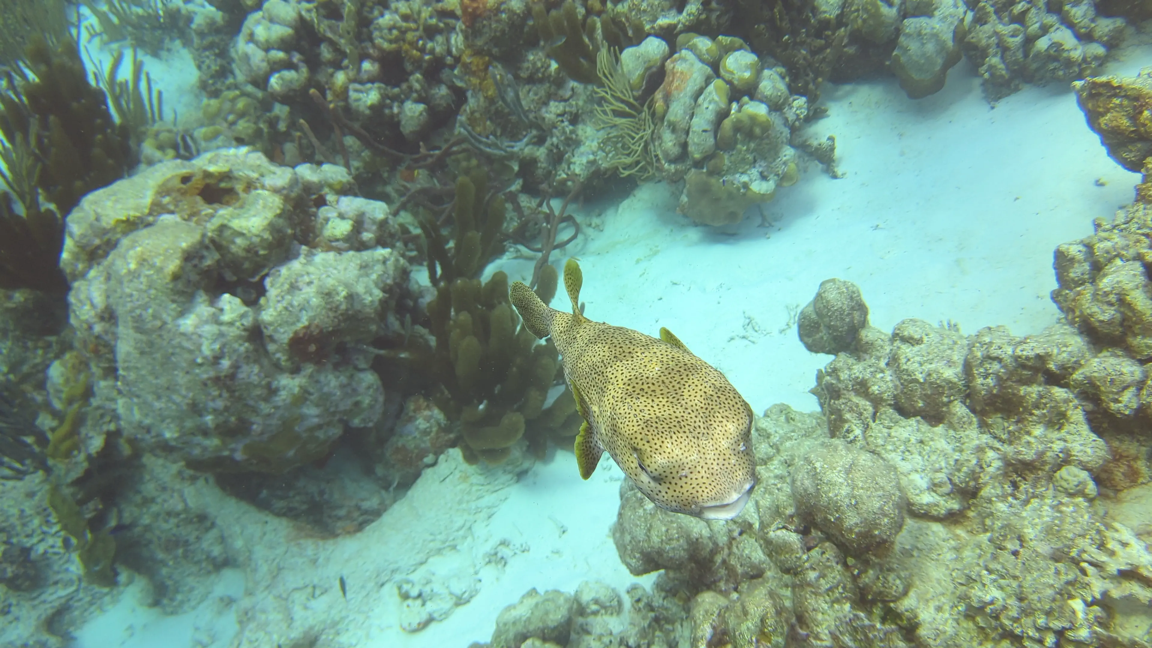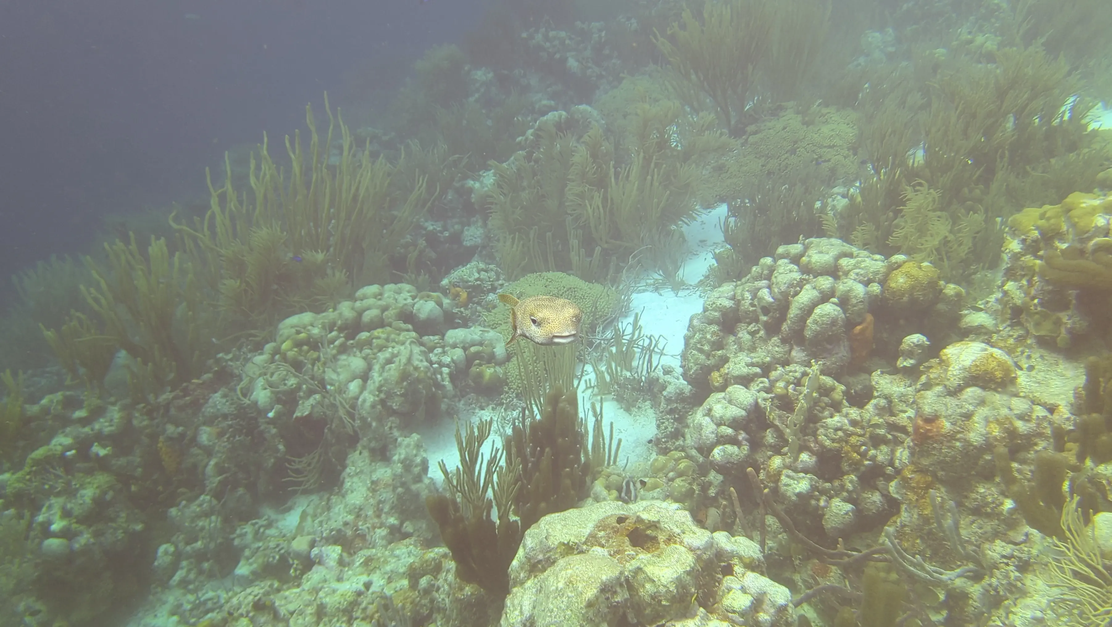 The second dive took place at the dive site named Ebo’s Special, however as we were starting the dive I saw air bubbles coming from my camera case so I quickly handed it back to the captain and did this dive without a camera. It was a nice dive - at the end we swam through a shallow channel between the coast of Klein Bonaire and a ridge of finger coral which was a neat experience. In this channel I saw a large lionfish, which I made sure to give wide berth. I saw another urchin, and more porcupinefish, however there was definitely less interesting wildlife to see on this dive as compared to others we had done.
