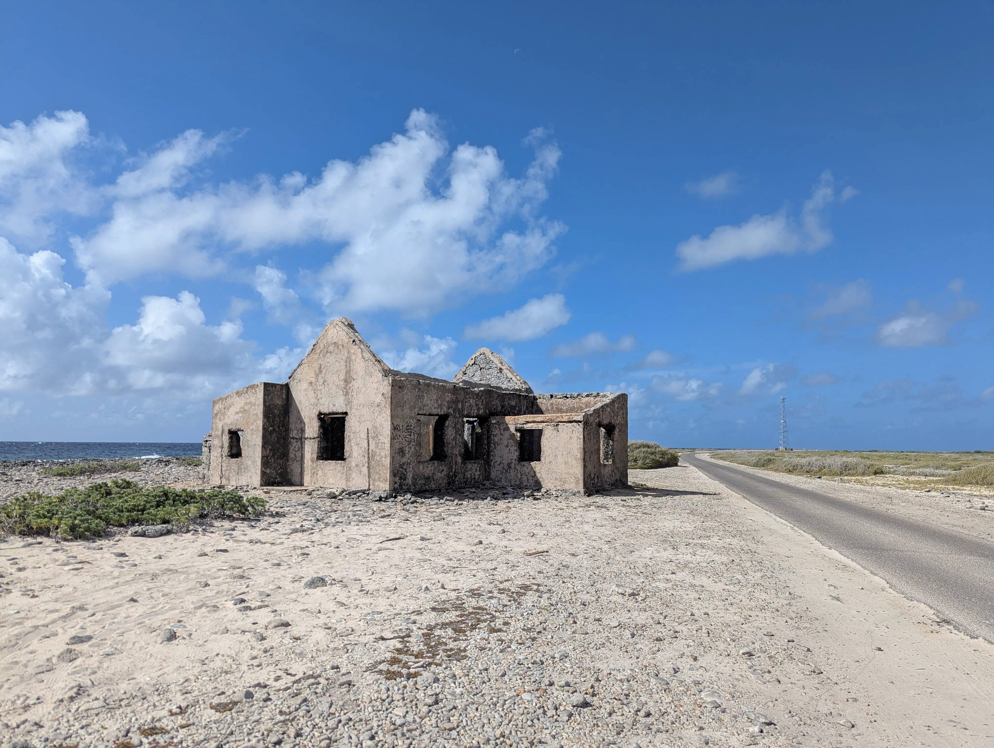 It was a short drive before we reached Sorobon, a small peninsula which extends up into the south part of Lac Bay. It is home to the only other community of any note on the island. There was a beach at the end of the peninsula, and after parking we walked to the beach to enjoy the views. There was a lookout tower on one side of the beach, which gave fantastic views of the entire bay. The area is home to a mangrove forest which is home to a number of different species of birds, however we only saw a handful of birds while we were there. We saw a number of people kitesurfing, kiteboarding and windsurfing in the bay, the wind was a lot stronger here than we had seen on the western side of the island so it made sense there were a number of companies offering the opportunity to experience these wind-based sports. The beach at Sorobon was actual sand, which was noteworthy given the vast majority of the beaches we’d seen to this point were just coral. We spent about 20 minutes enjoying the area before we returned to the truck and continued south.