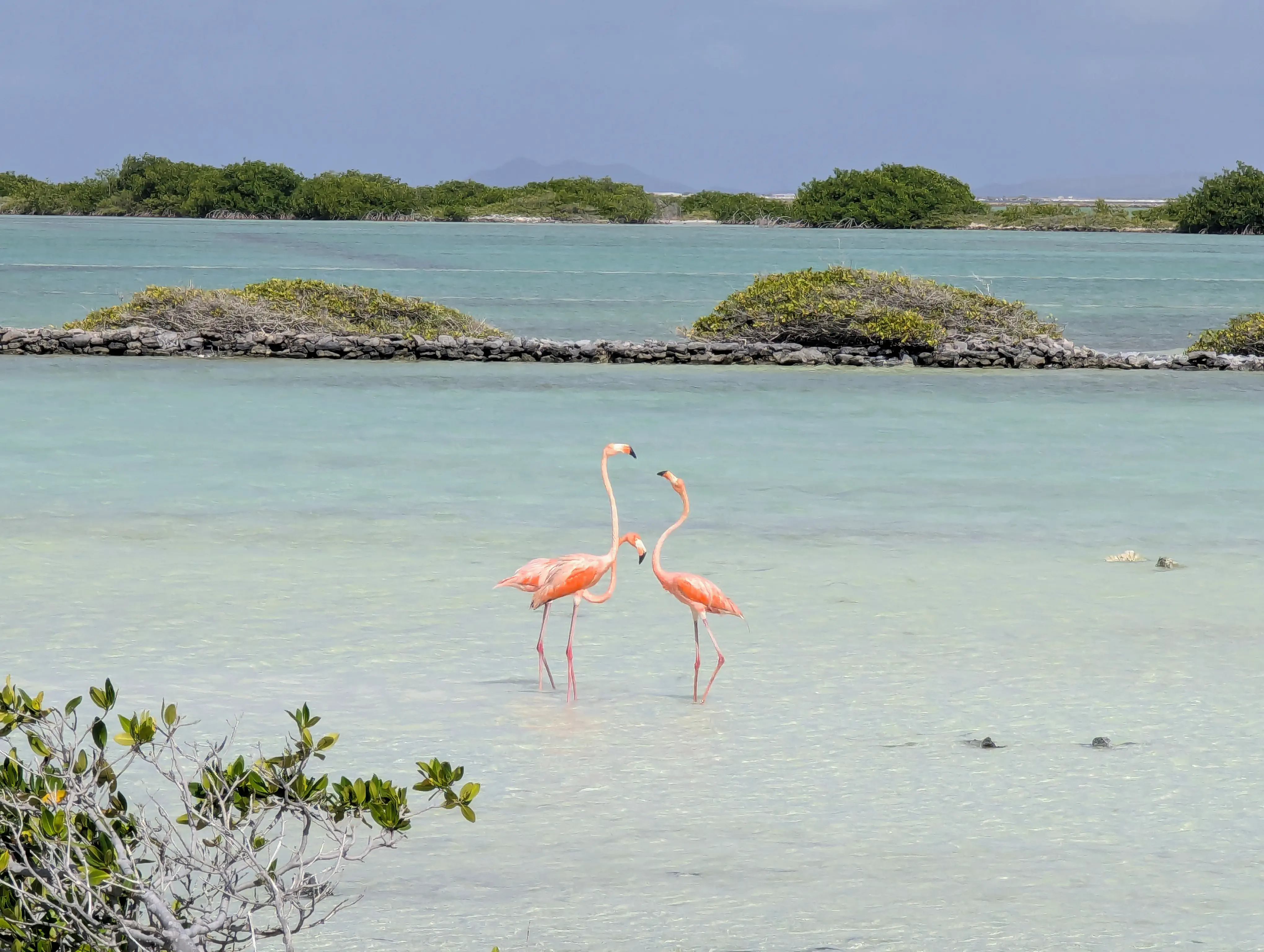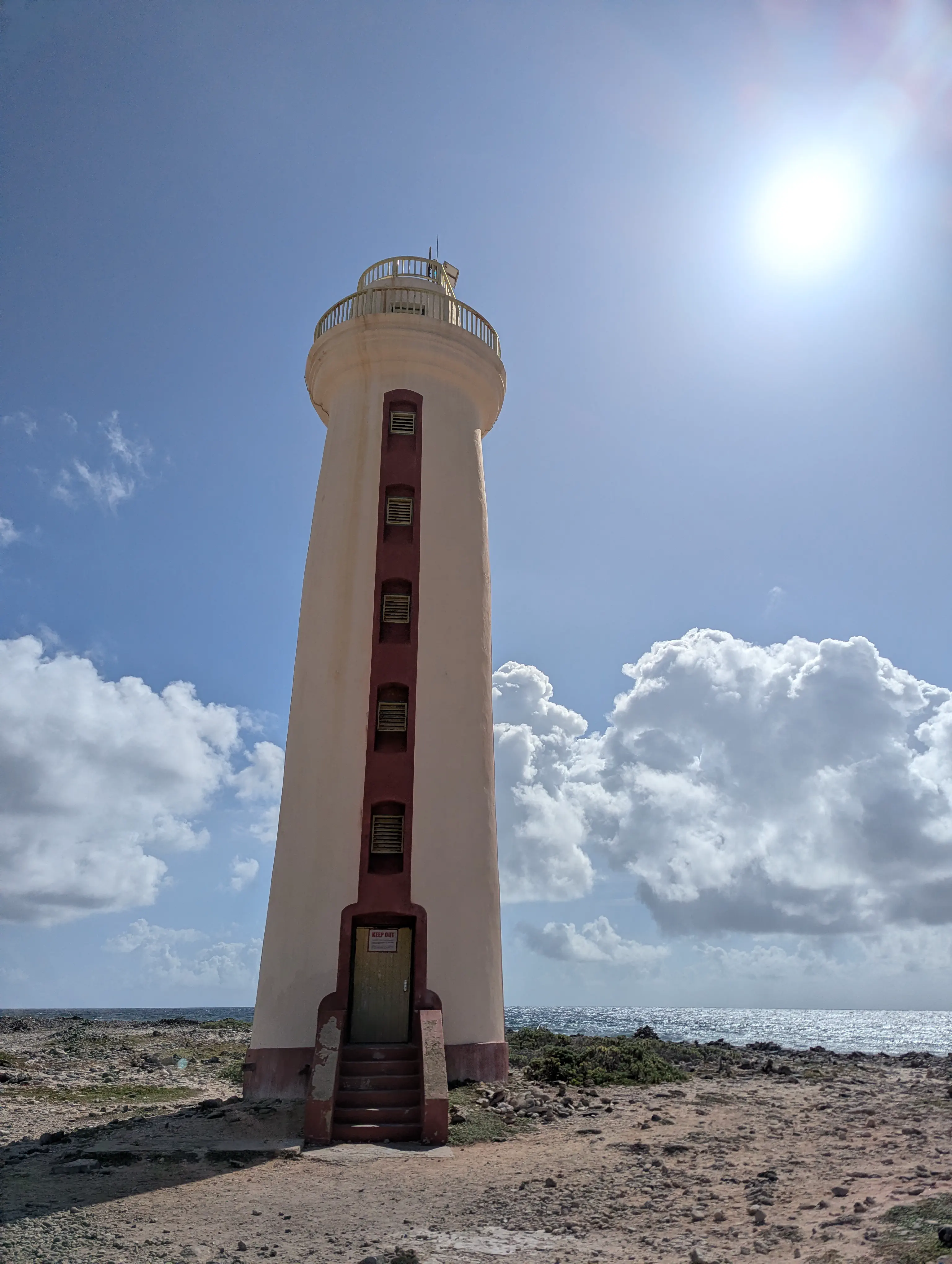 It was a bit less than 8 km to drive from Sorobon to the Willemstoren lighthouse on the southern coast of the island, but given the state of the road and the times we stopped for photos it took us about half an hour. We stopped to take photos of the oldest lighthouse on the island, which was constructed in 1837. You can’t go into the lighthouse, so it’s mostly an opportunity to take a look at the building and the ocean. Just past the lighthouse inland of the road there is a small lake which flamingos hang out in, so we walked up a bit to get a few photos of the flamingos. I took a quick video of the flamingos, they were doing a fun little ‘running’ motion with their legs.